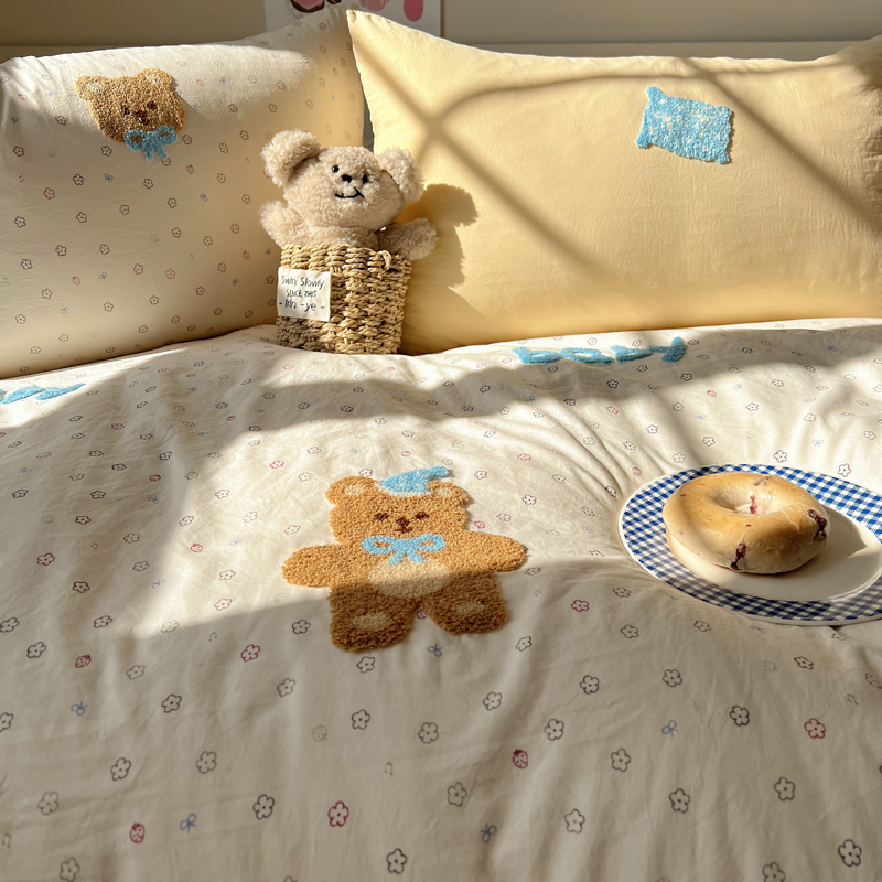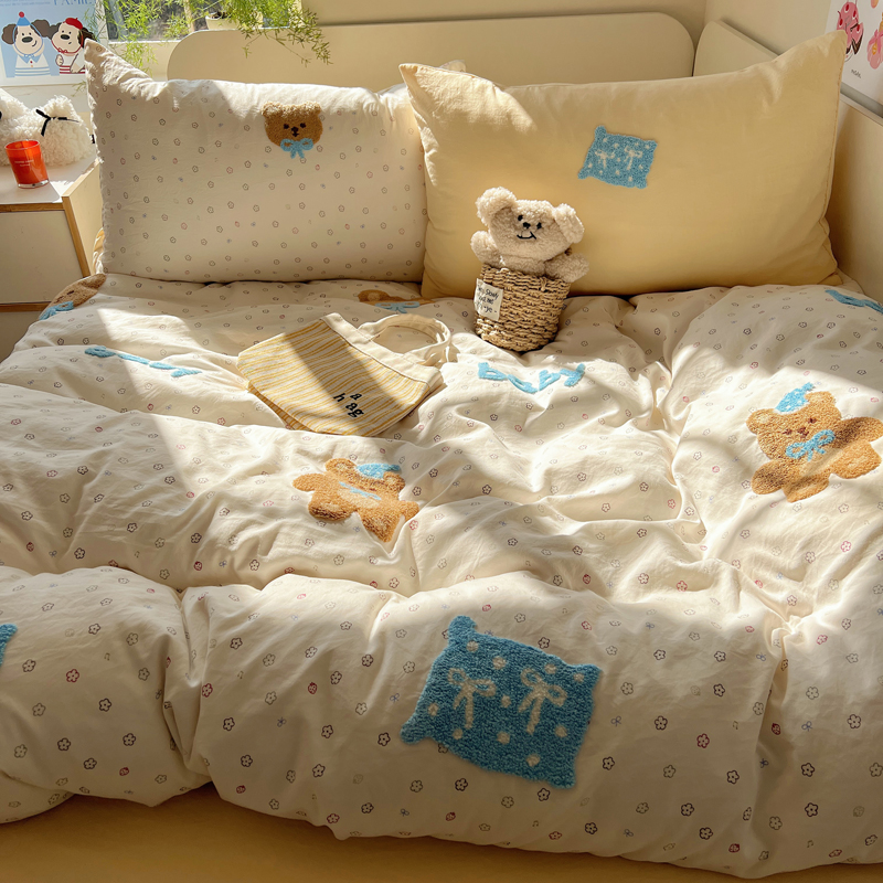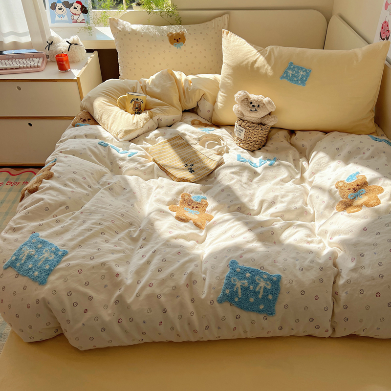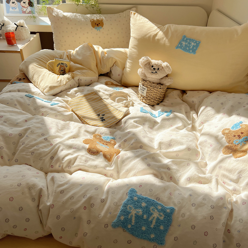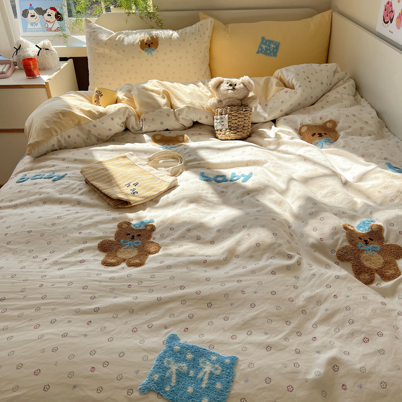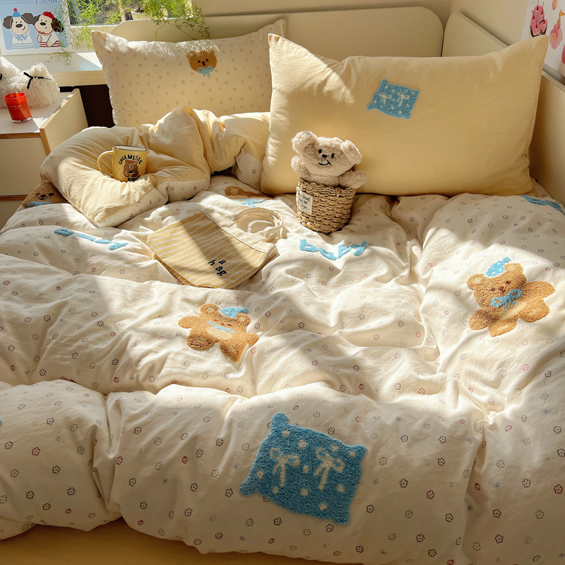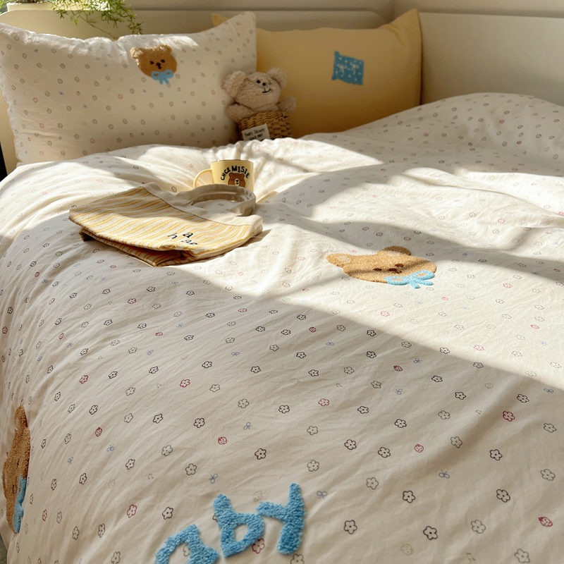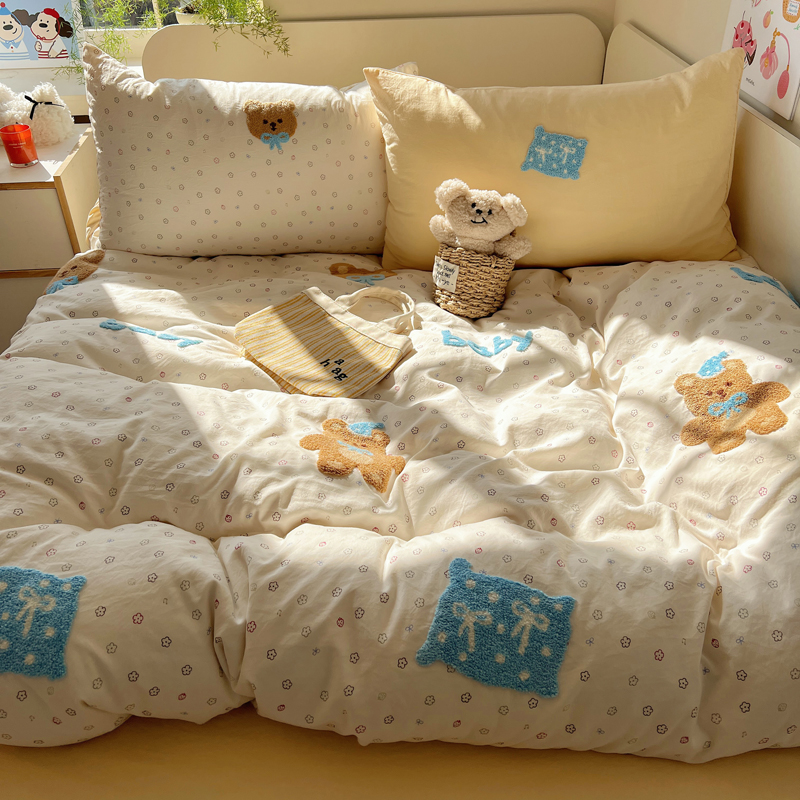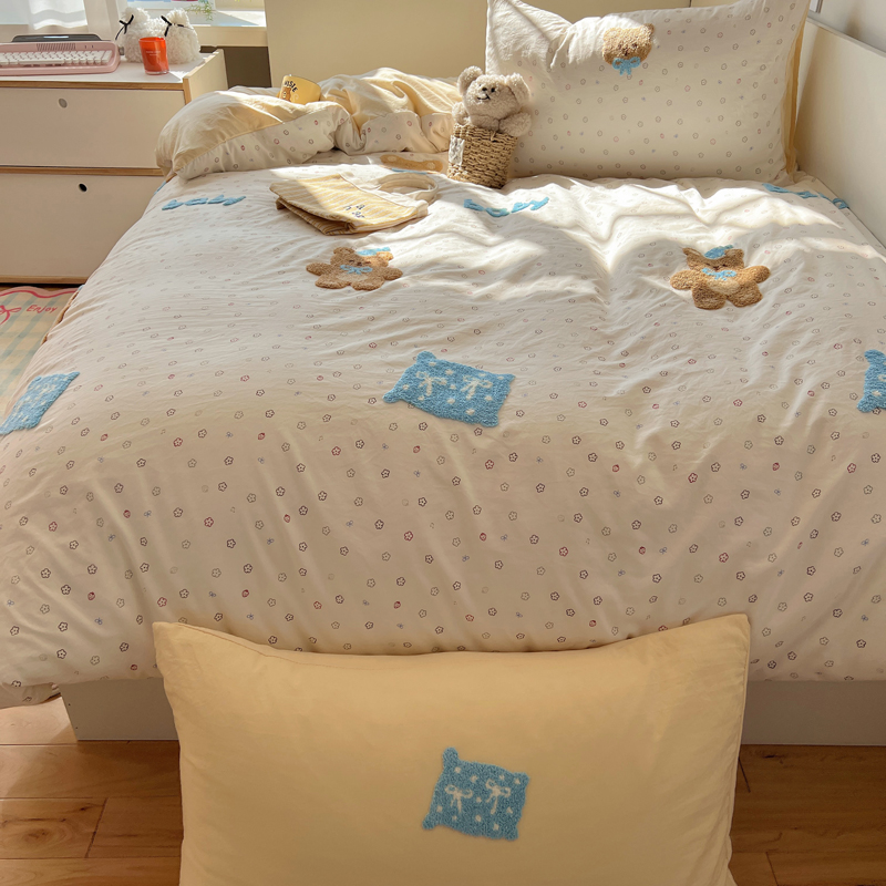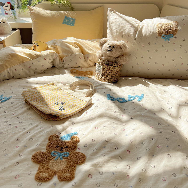 商品名称:顾里家纺 2025新款ins韩系童趣毛巾绣云朵棉四件套 宝贝熊