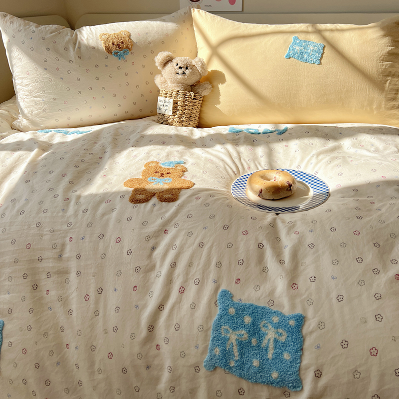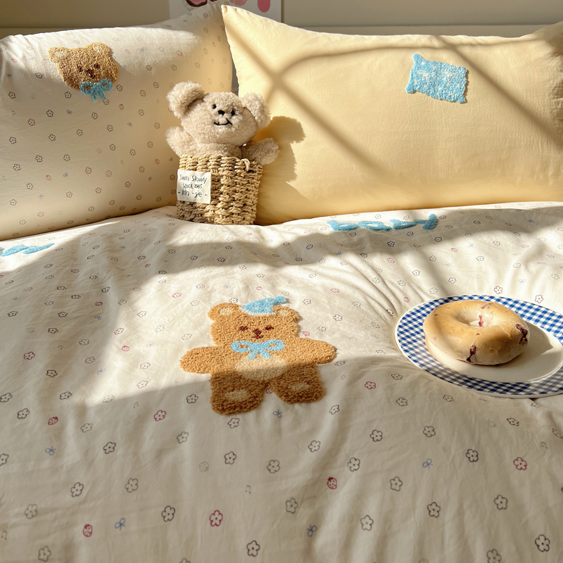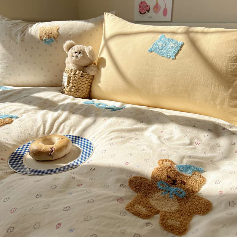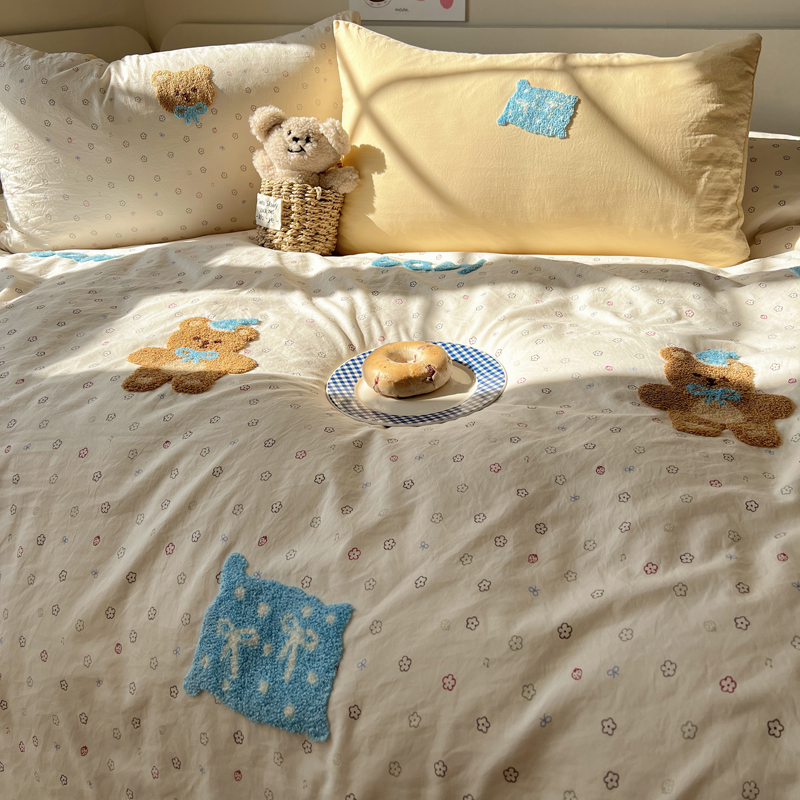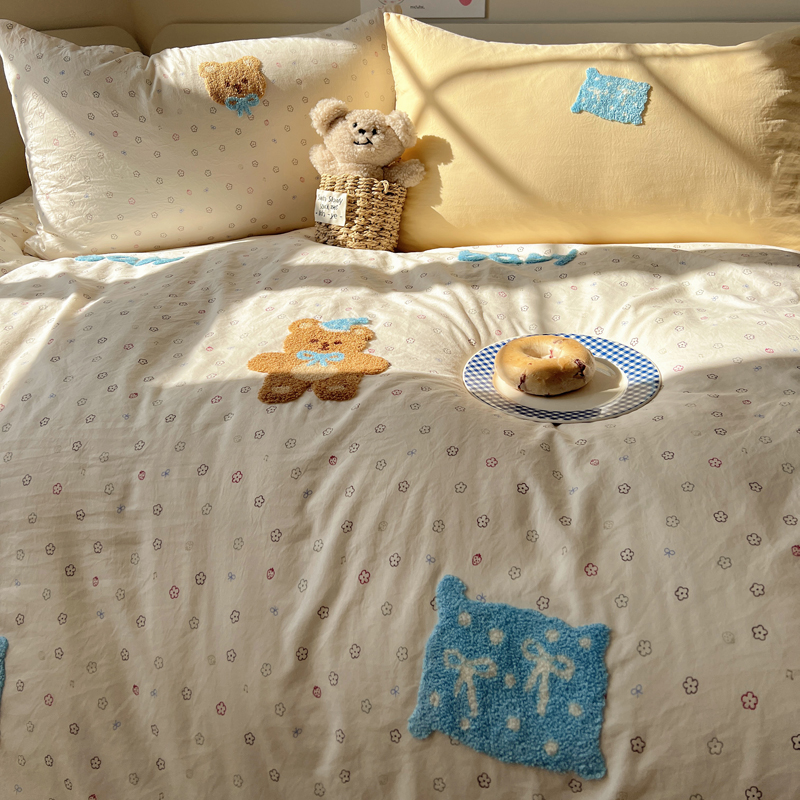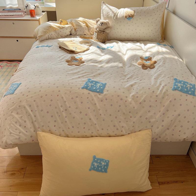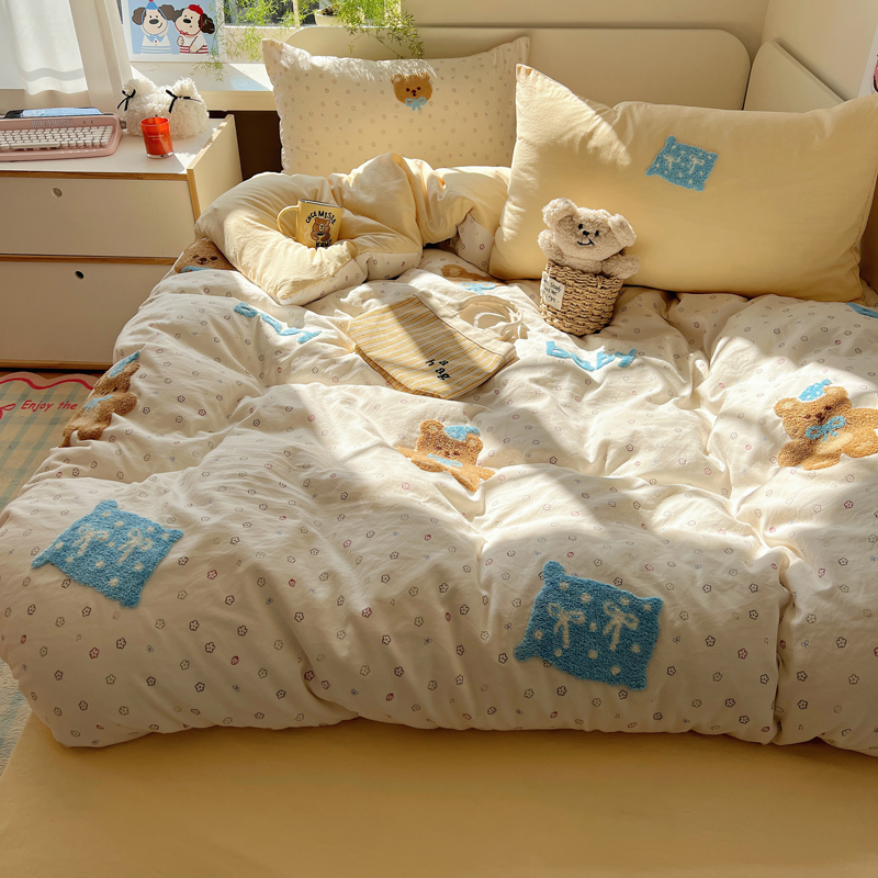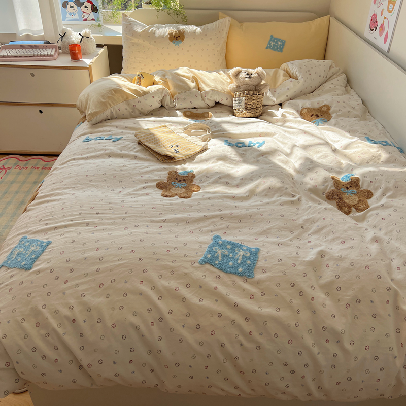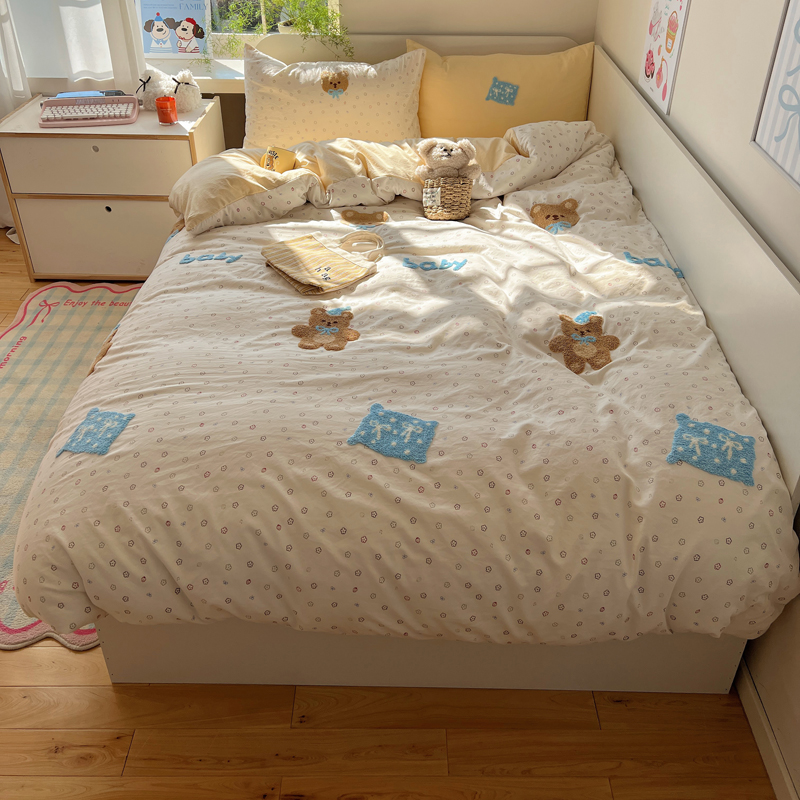 商品名称:顾里家纺 2025新款ins韩系童趣毛巾绣云朵棉四件套 宝贝熊