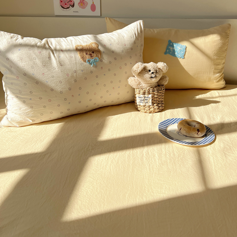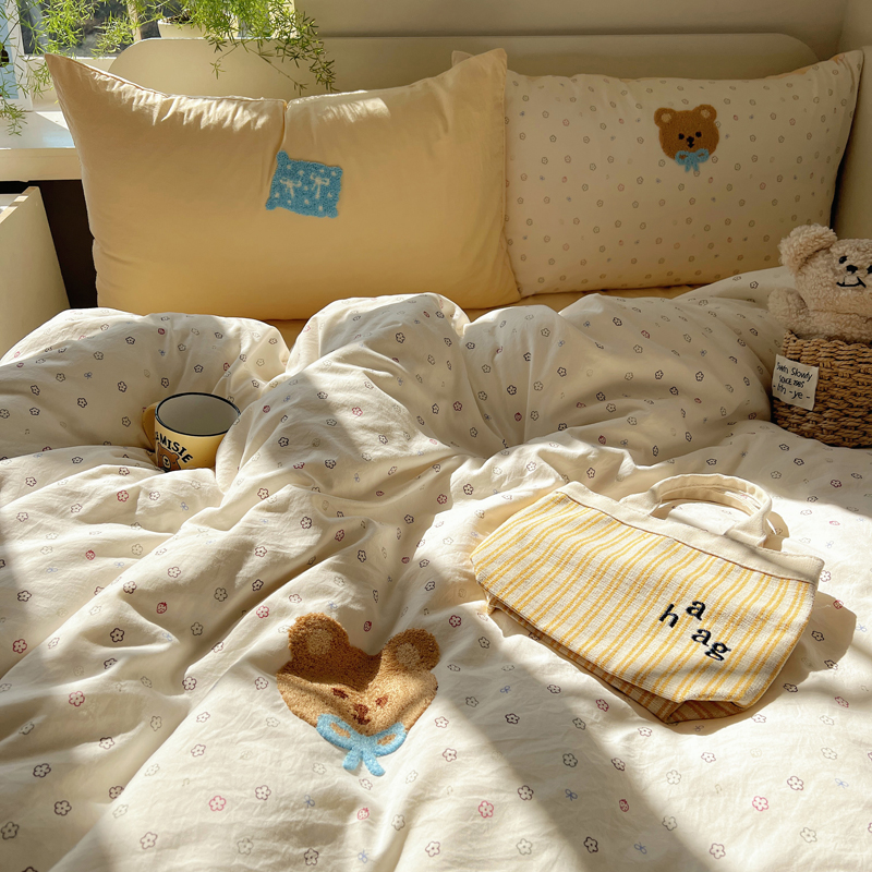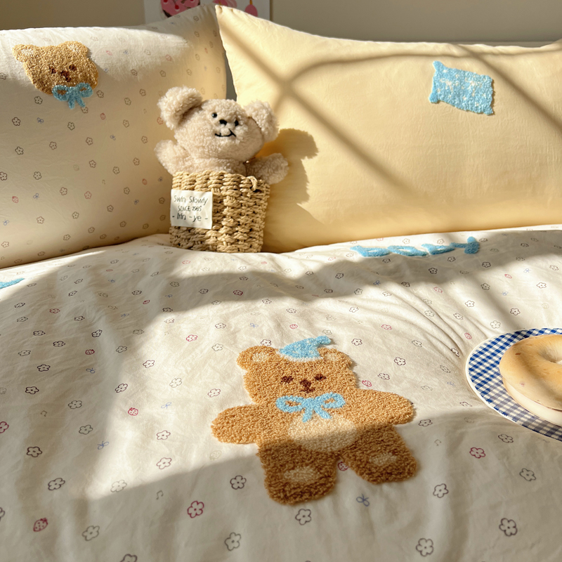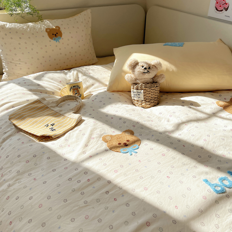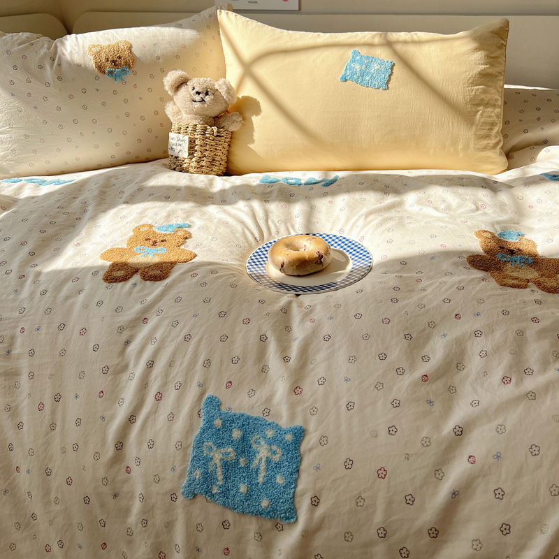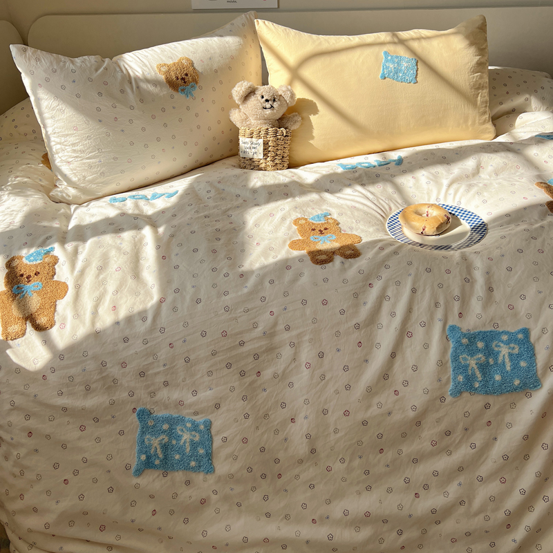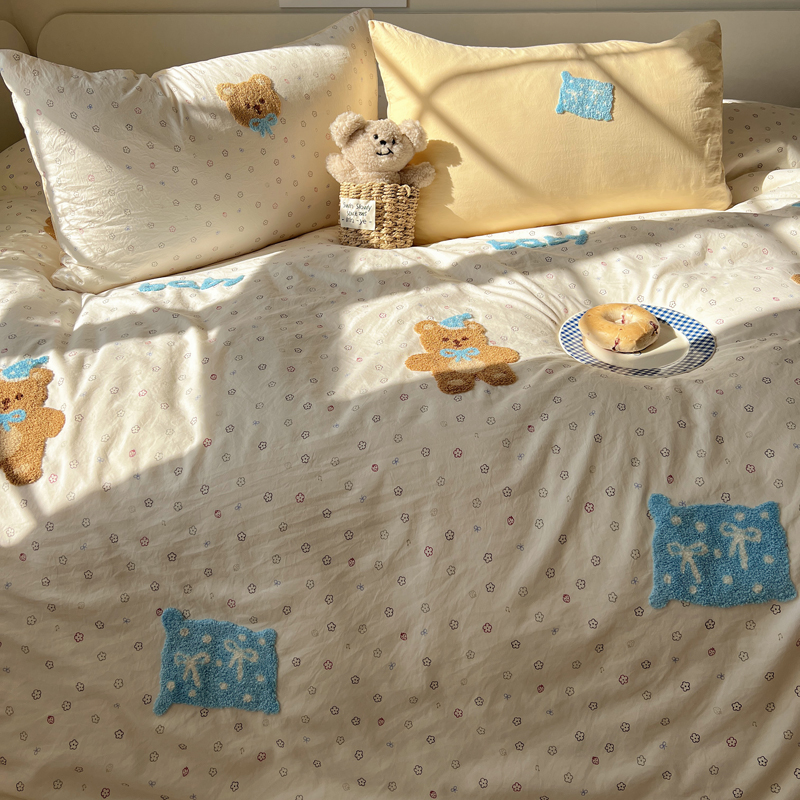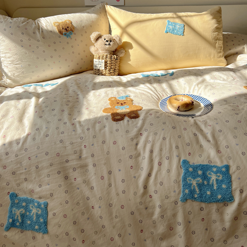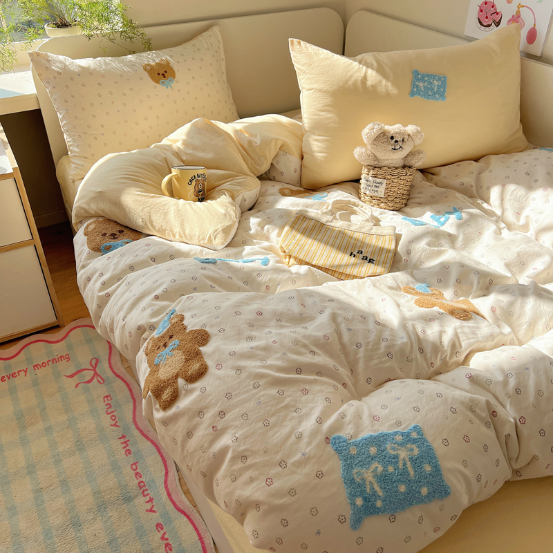 商品名称:顾里家纺 2025新款ins韩系童趣毛巾绣云朵棉四件套 宝贝熊