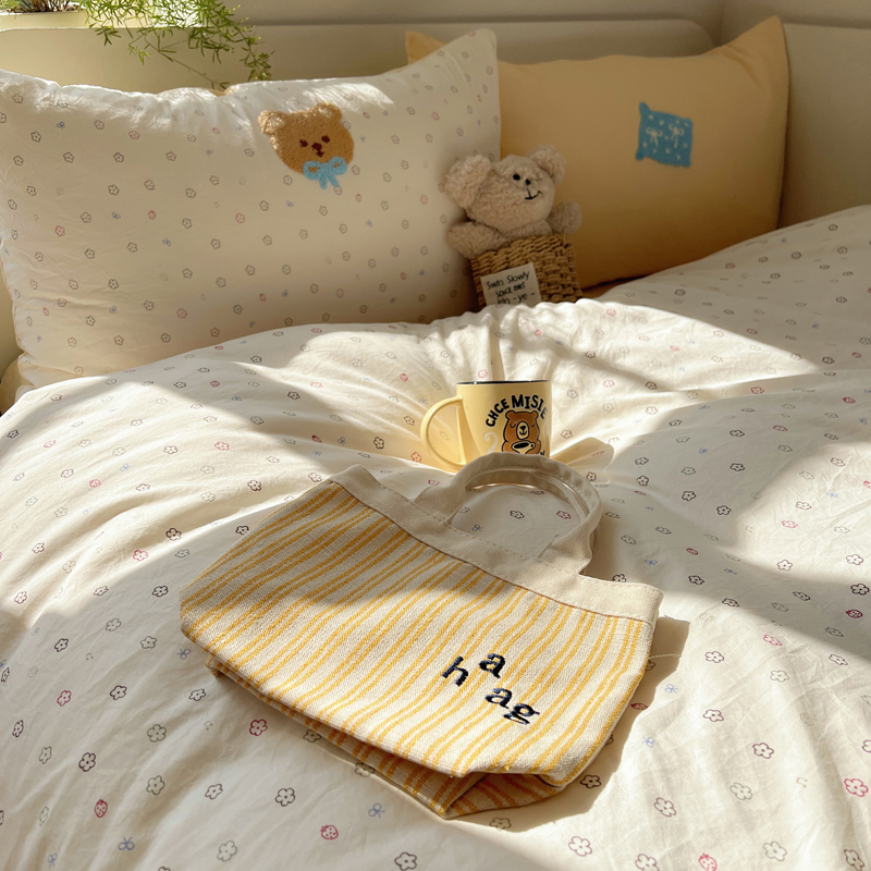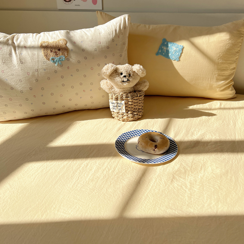 顾里家纺 2025新款ins韩系童趣毛巾绣云朵棉四件套 宝贝熊