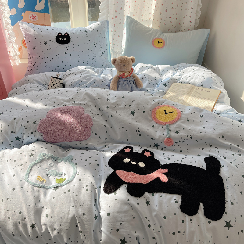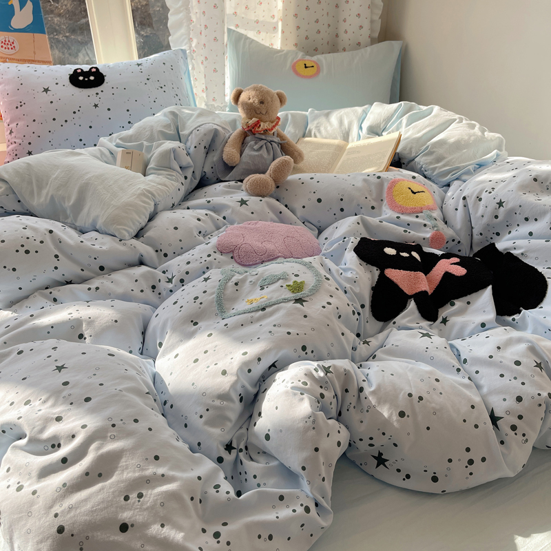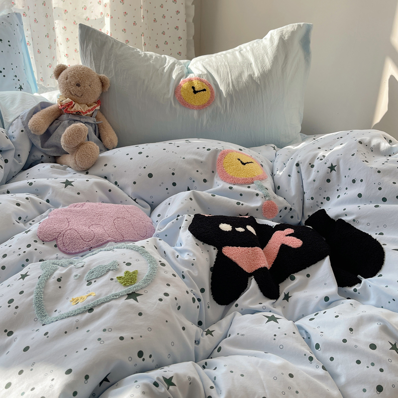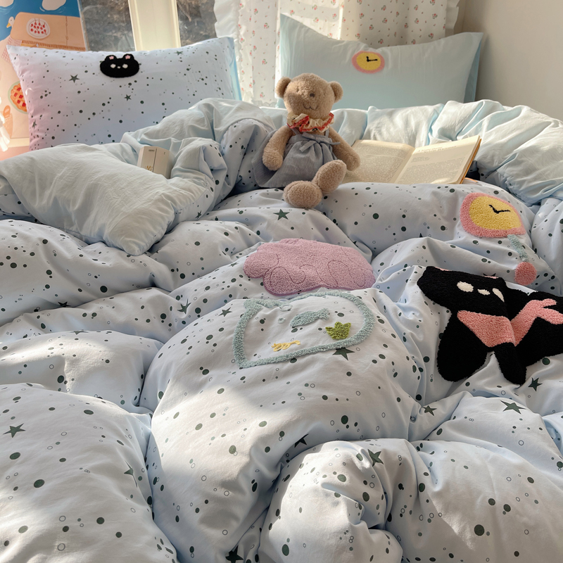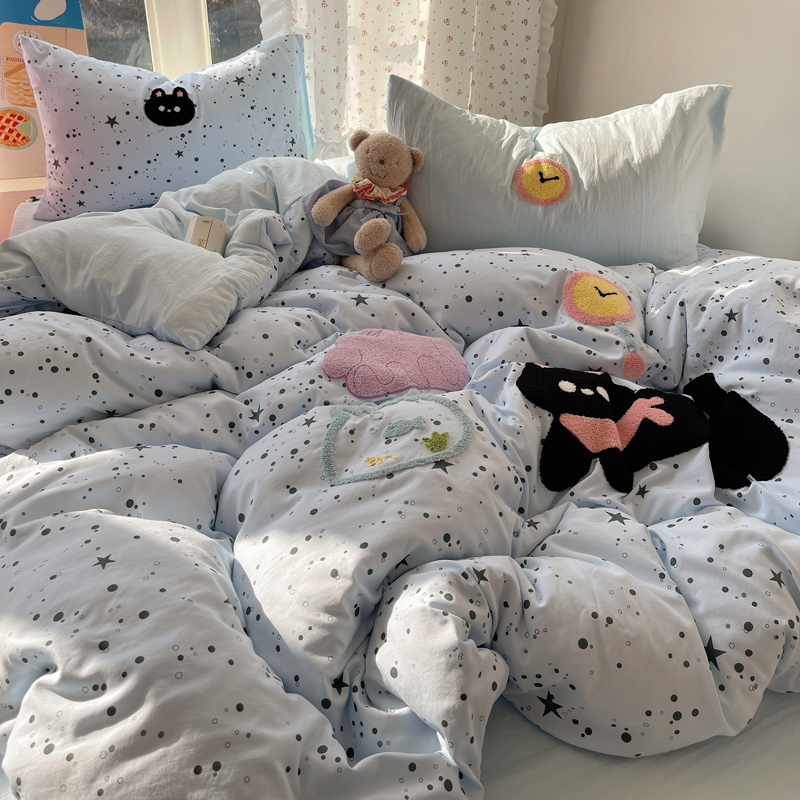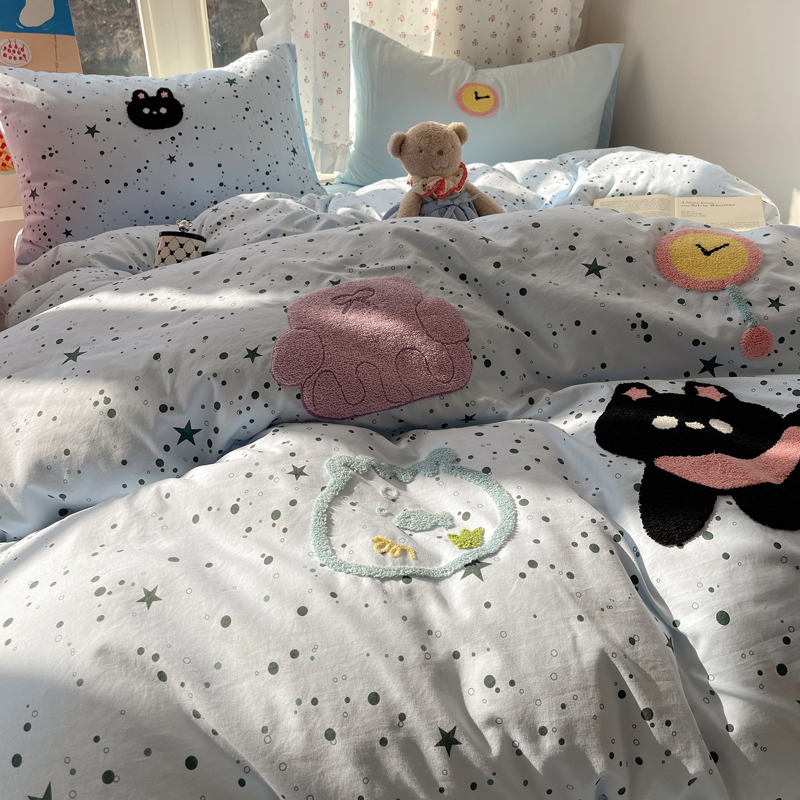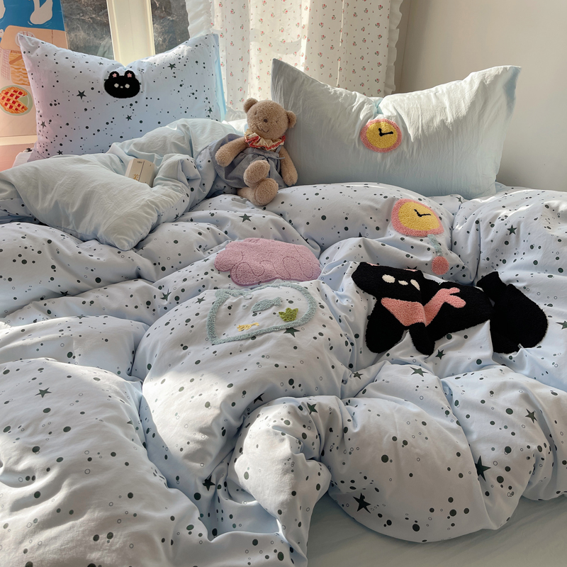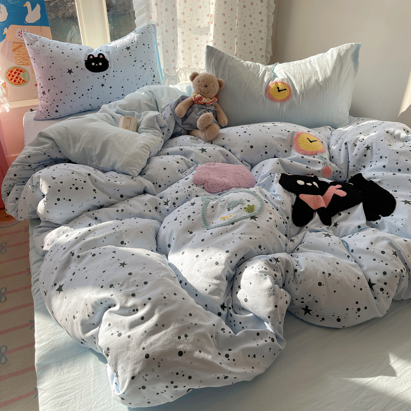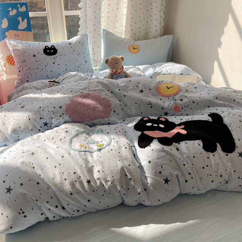 商品名称:顾里家纺 2025新款ins韩系童趣毛巾绣云朵棉四件套 泼墨黑猫