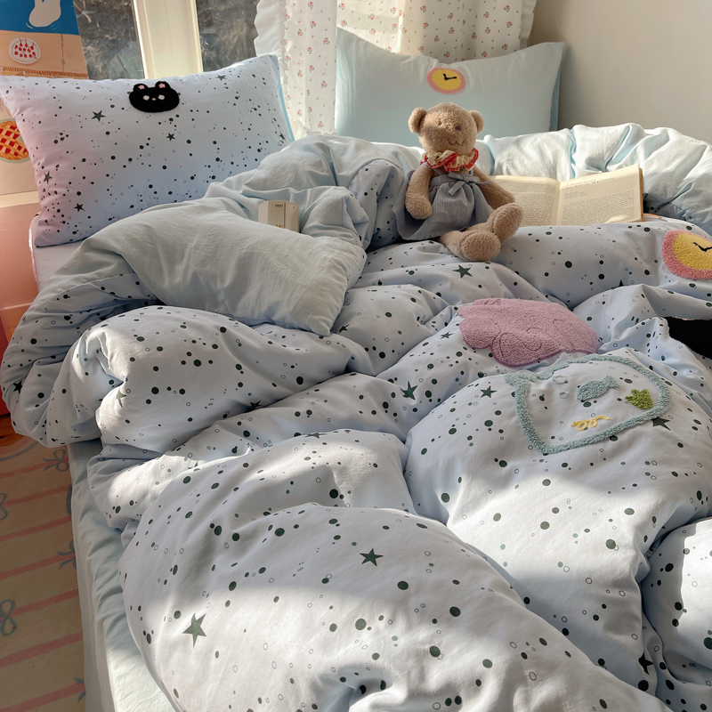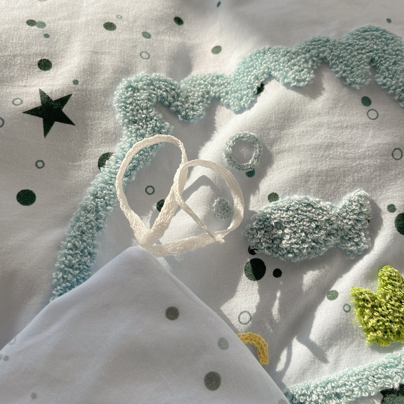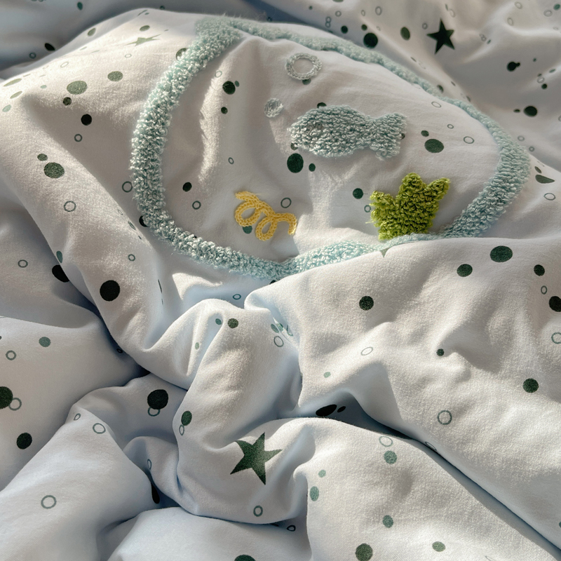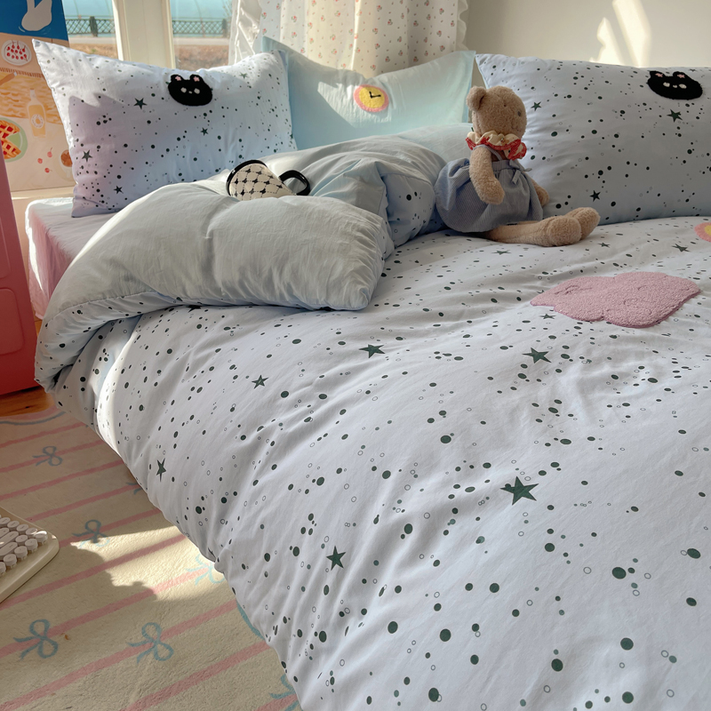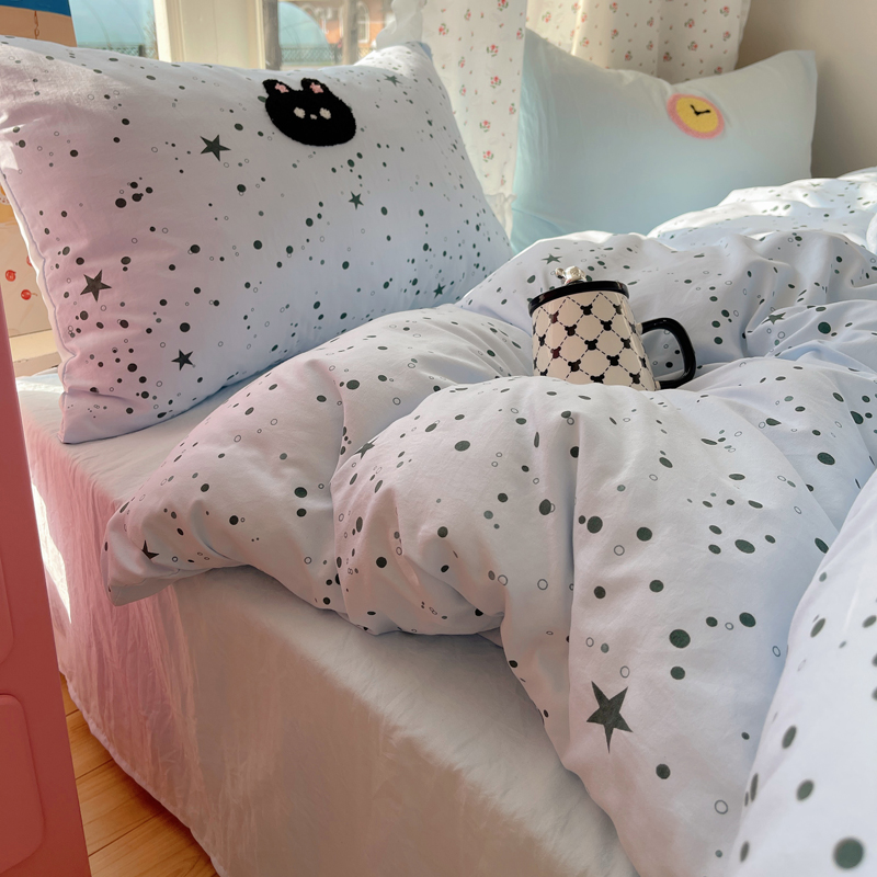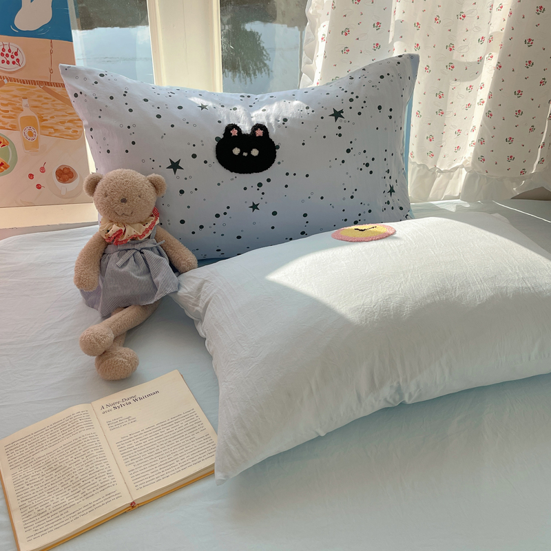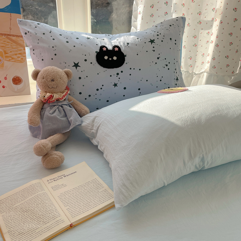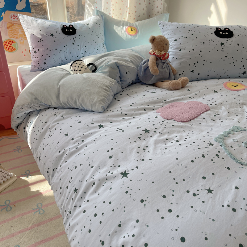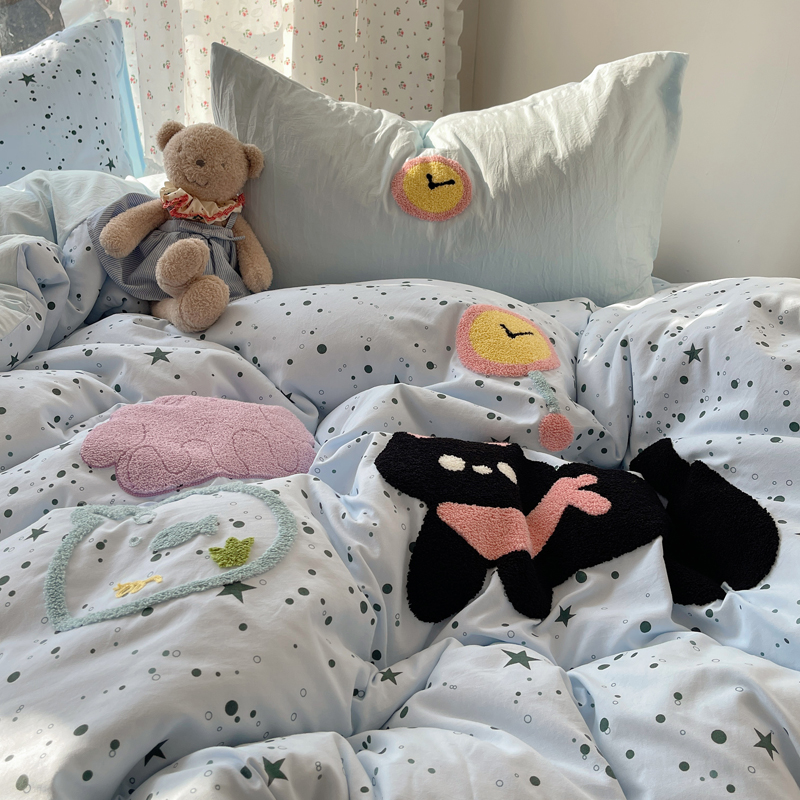 商品名称:顾里家纺 2025新款ins韩系童趣毛巾绣云朵棉四件套 泼墨黑猫