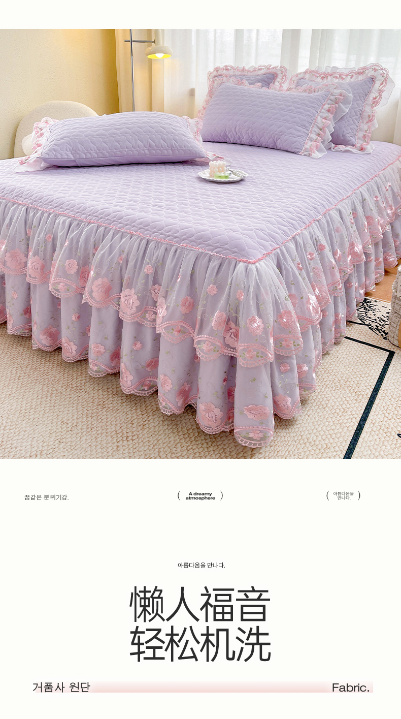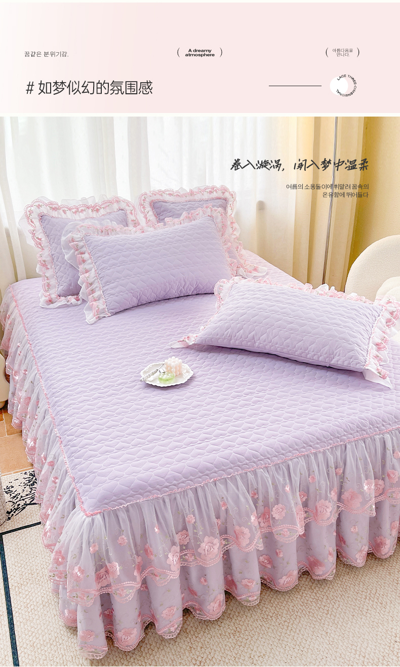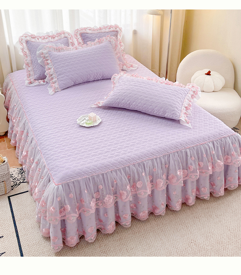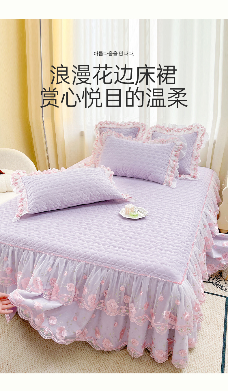 商品名称:(总)罗艺轩 2025新款A类珍珠棉花边床裙三件套-梦幻花园
