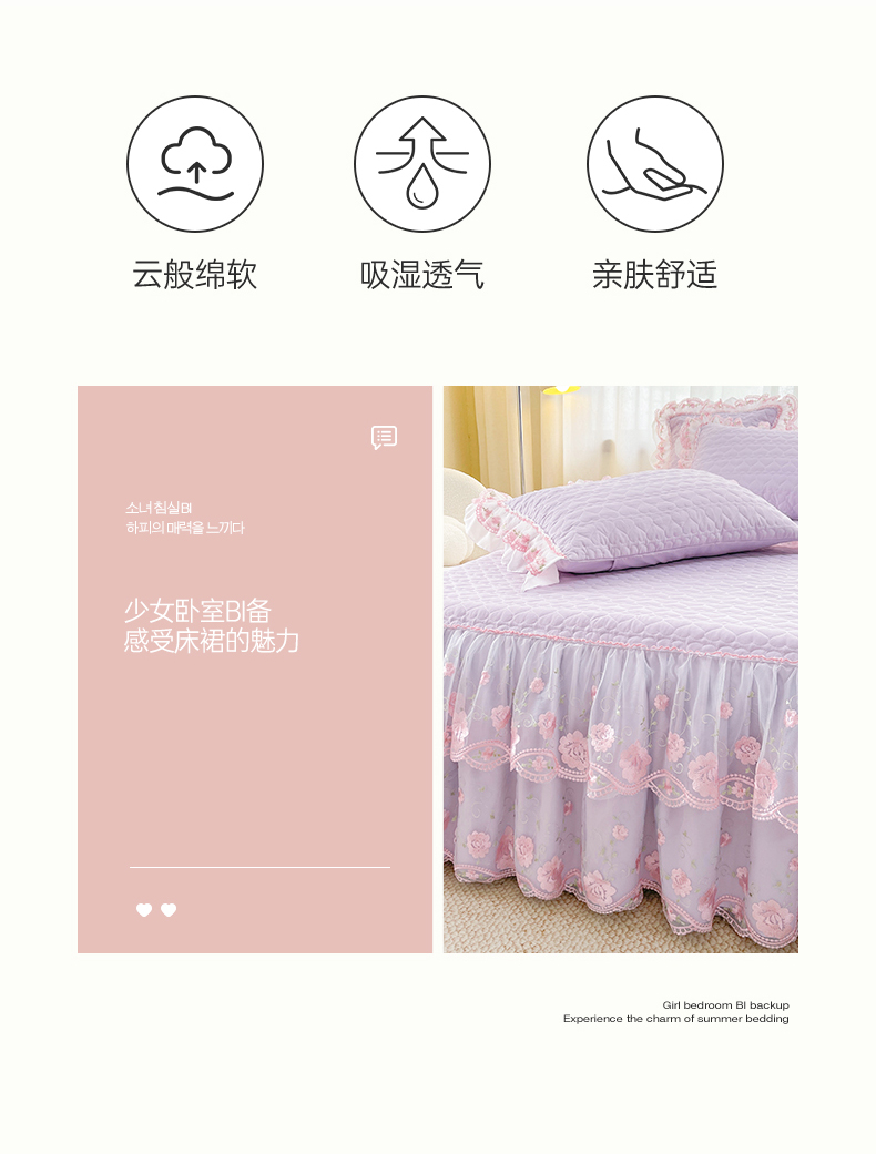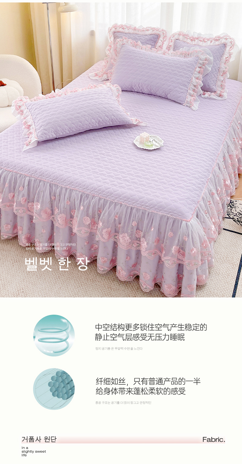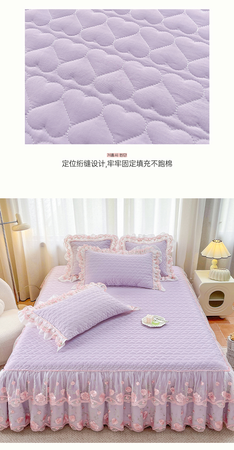 商品名称:(总)罗艺轩 2025新款A类珍珠棉花边床裙三件套-梦幻花园