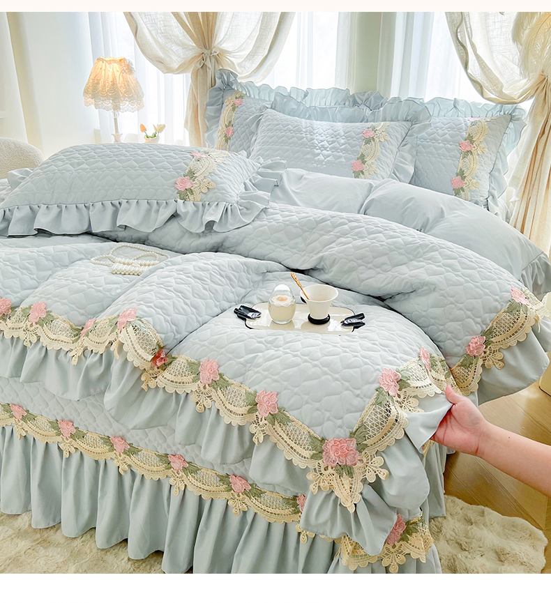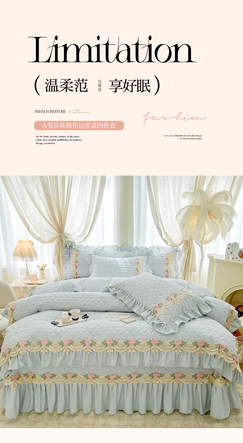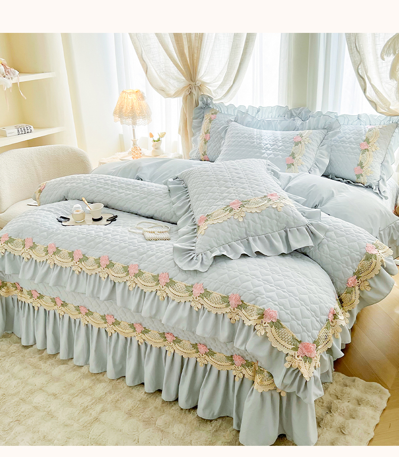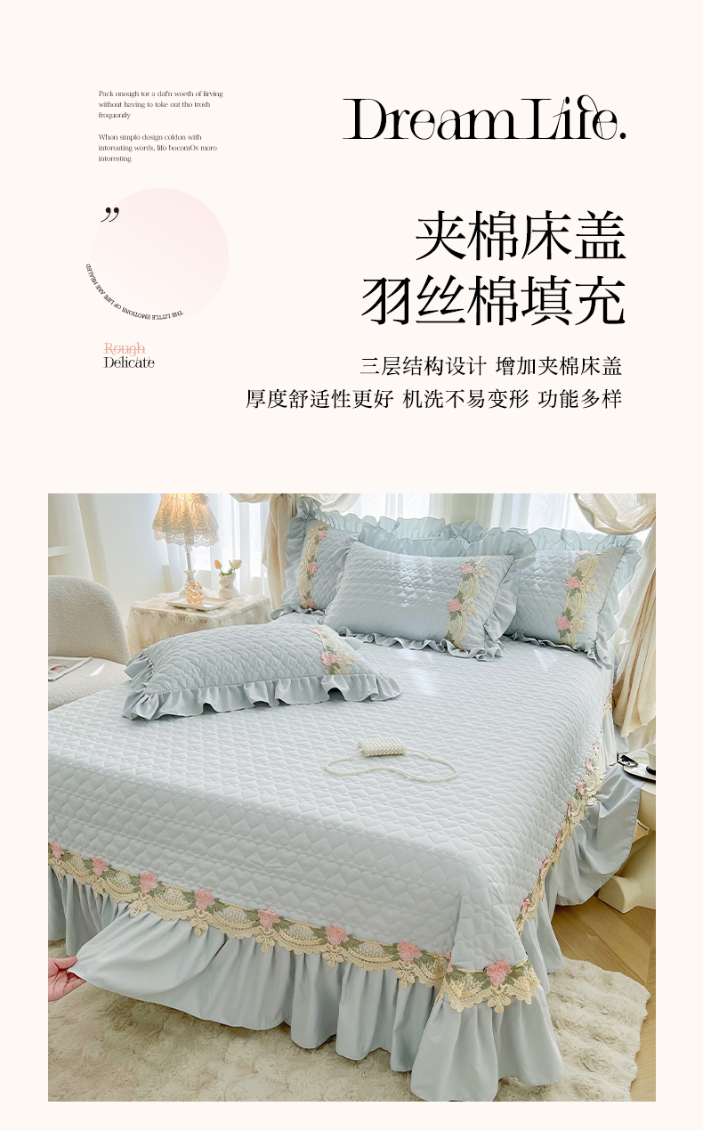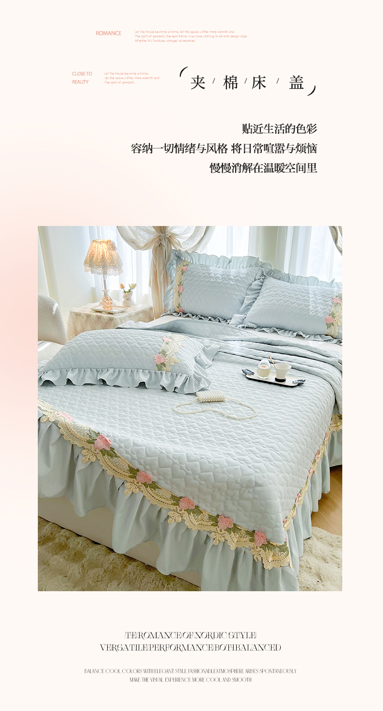 当前位置: 91家纺网 > 商品网购 > 床品套件 > 四件套 > 化纤普通四件套 > 罗艺轩 2025新款A类珍珠棉全夹棉床盖款四件套-玫瑰之恋 玫瑰之恋-蓝灰色