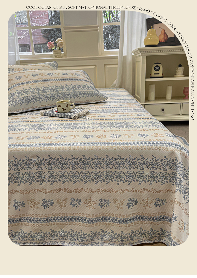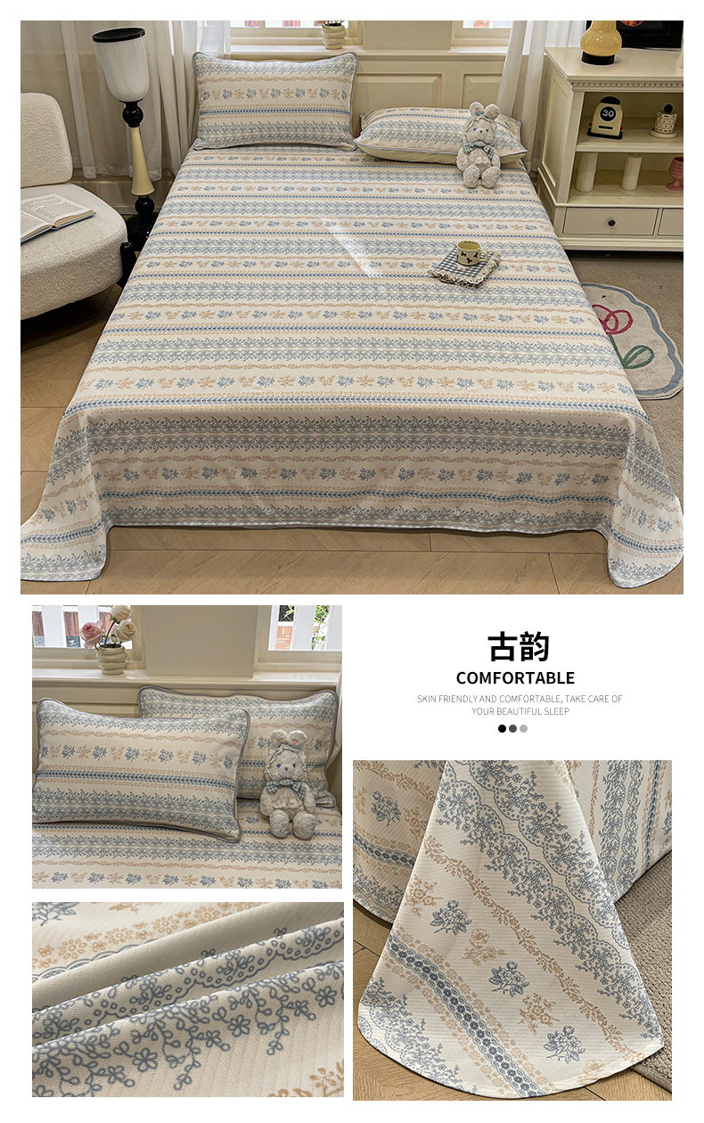 星座家纺 2025新款斜纹提花凉感丝凉席床单款三件套 古韵