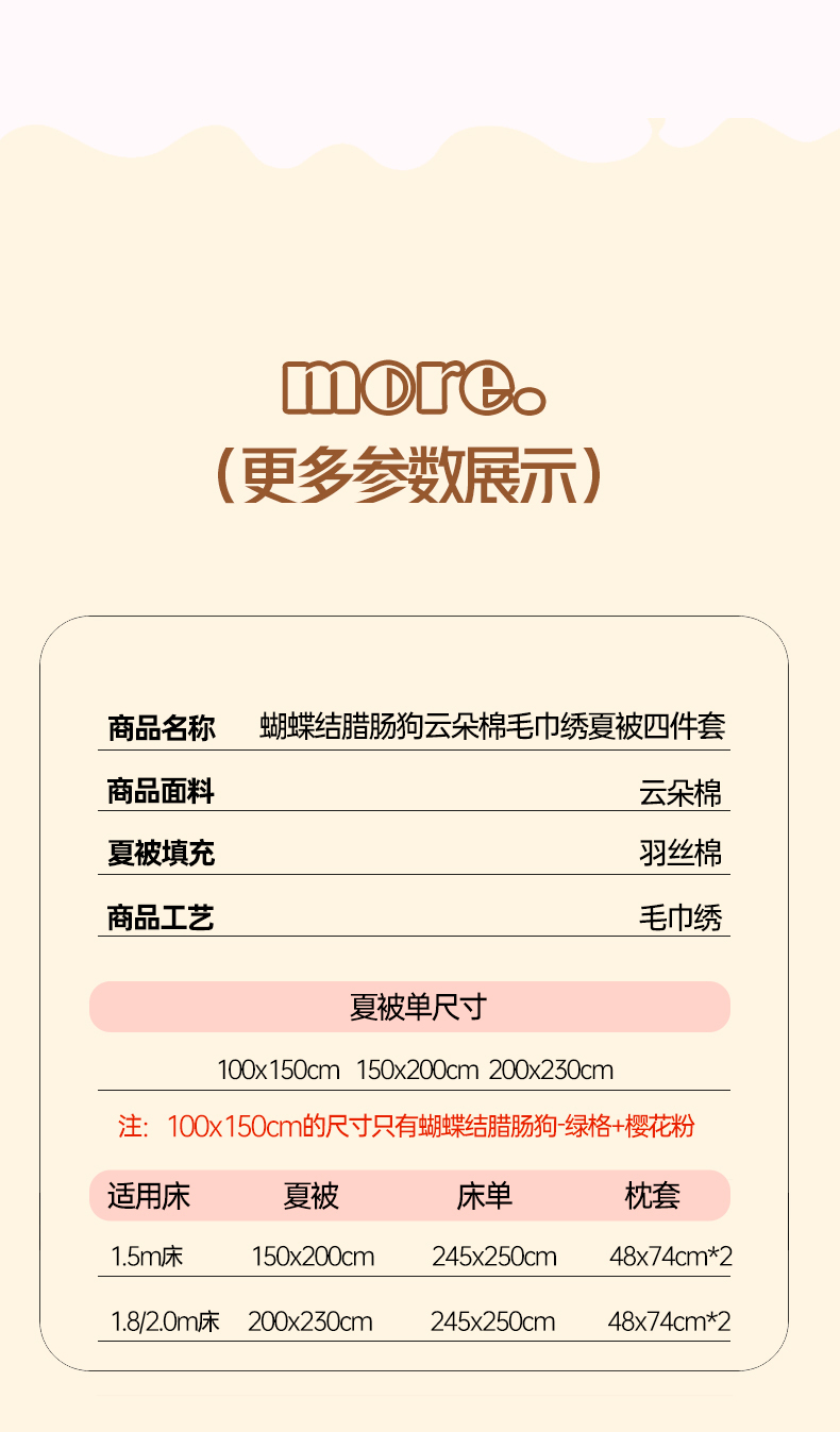 150*200cm夏被四件套 | ¥70.00 |