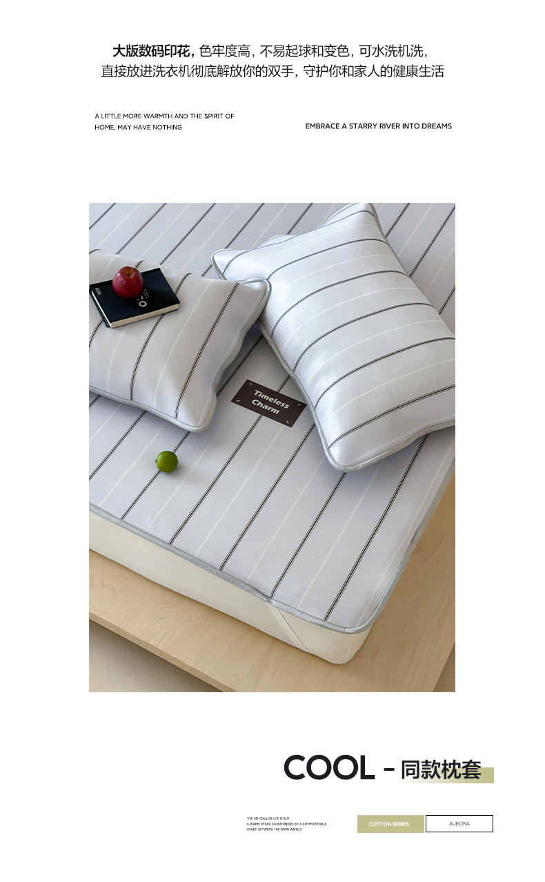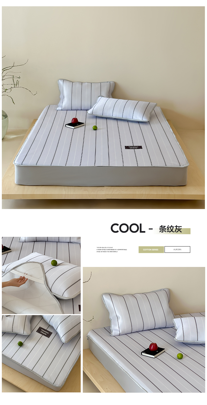 当前位置: 91家纺网 > 商品网购 > 床上用品 > 凉席 > 冰丝席 > 如一2025A类休闲无印风数码印花冰丝凉感席 条纹灰-床笠