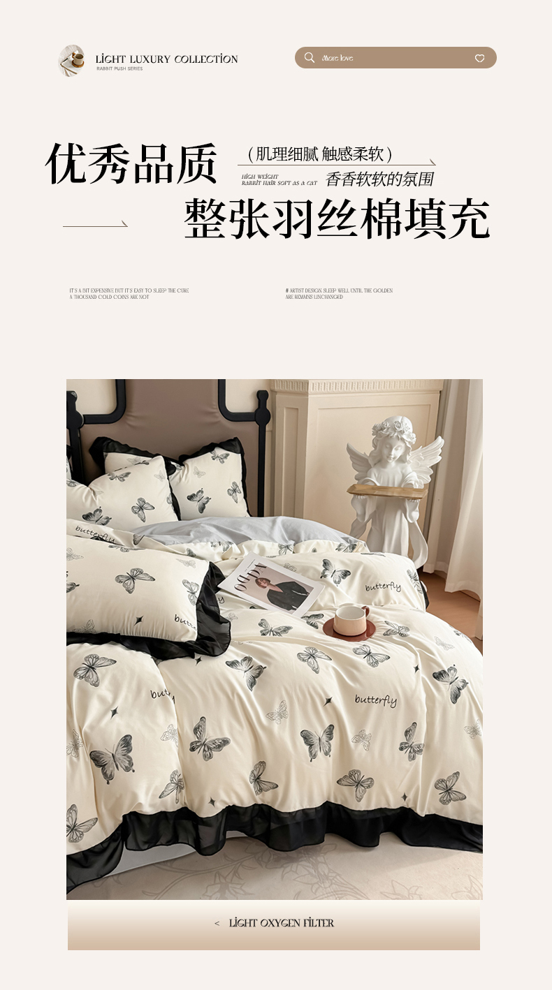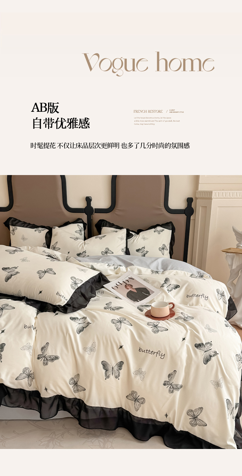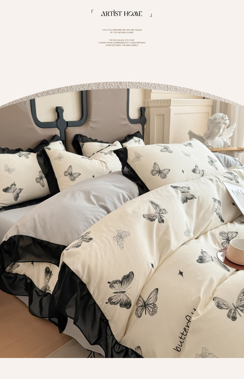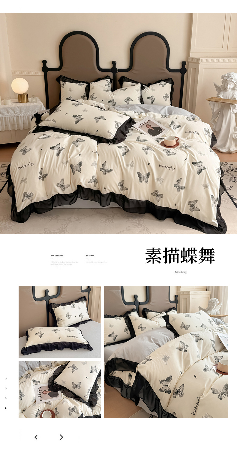 商品名称:橘子家 2025新款云柔棉四件套 素描蝶舞