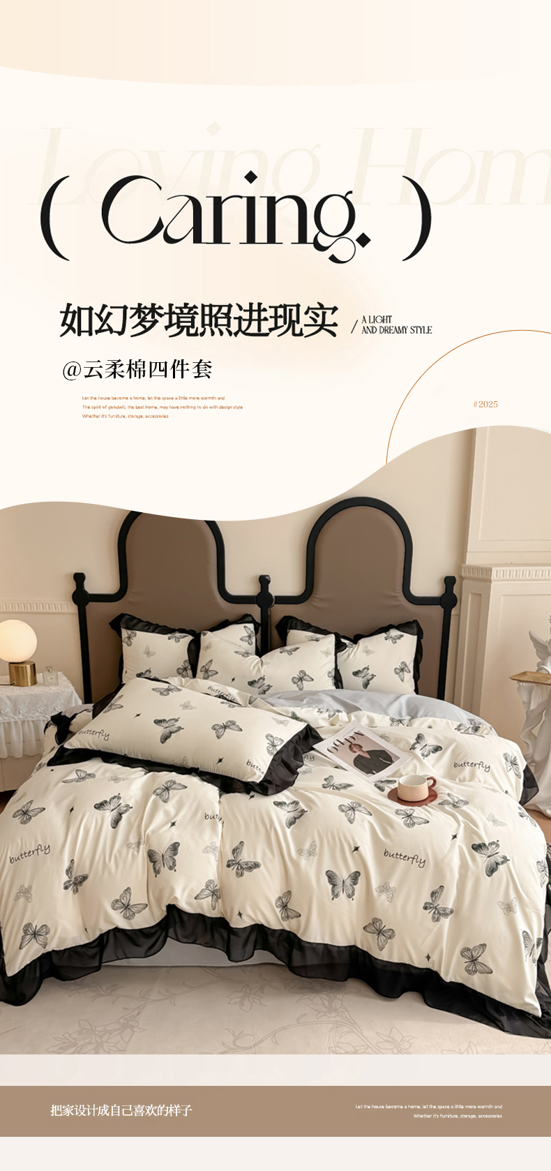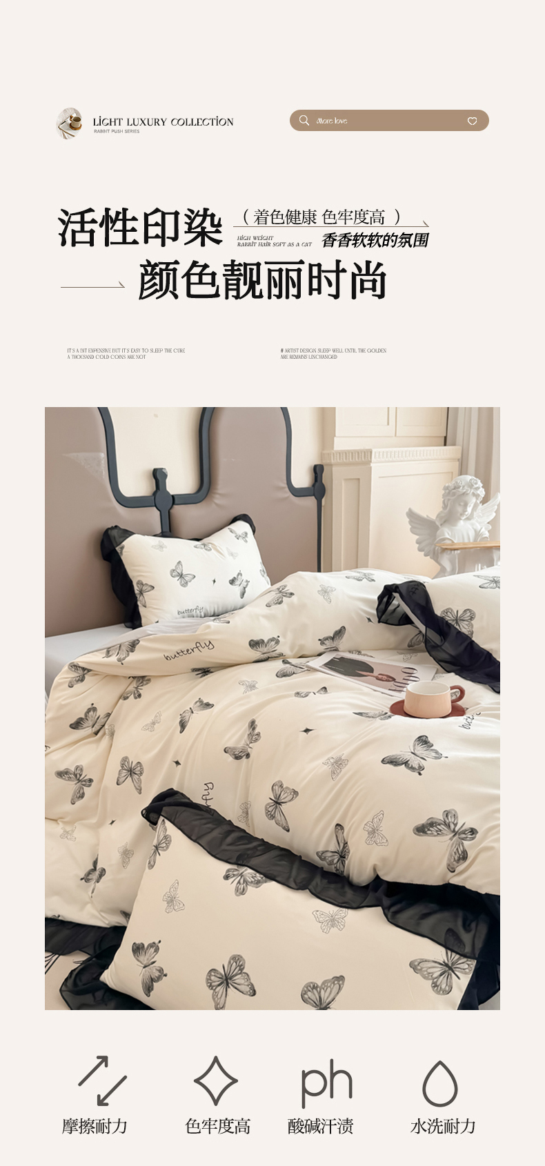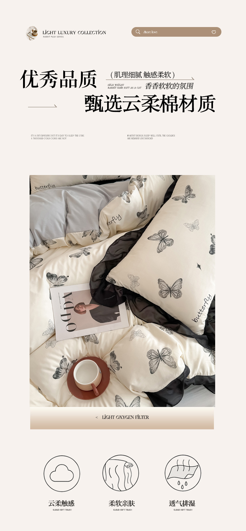 商品名称:橘子家 2025新款云柔棉四件套 素描蝶舞