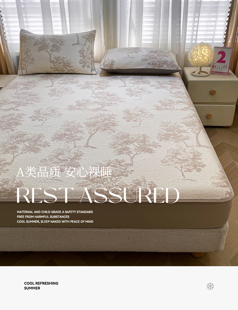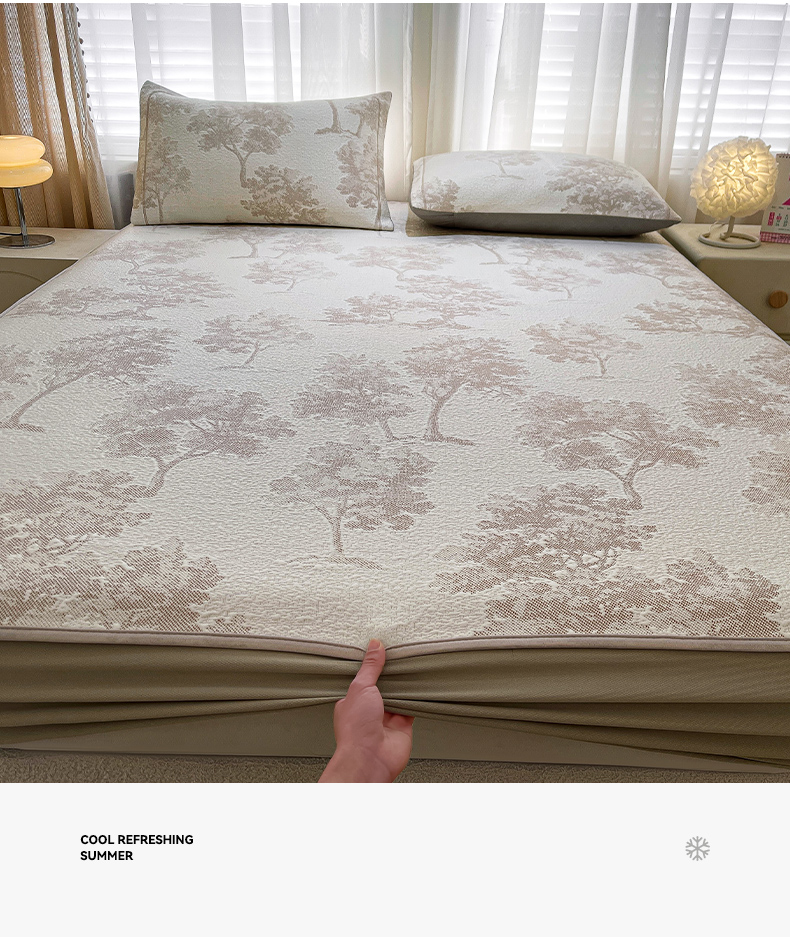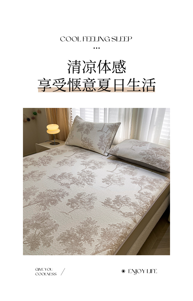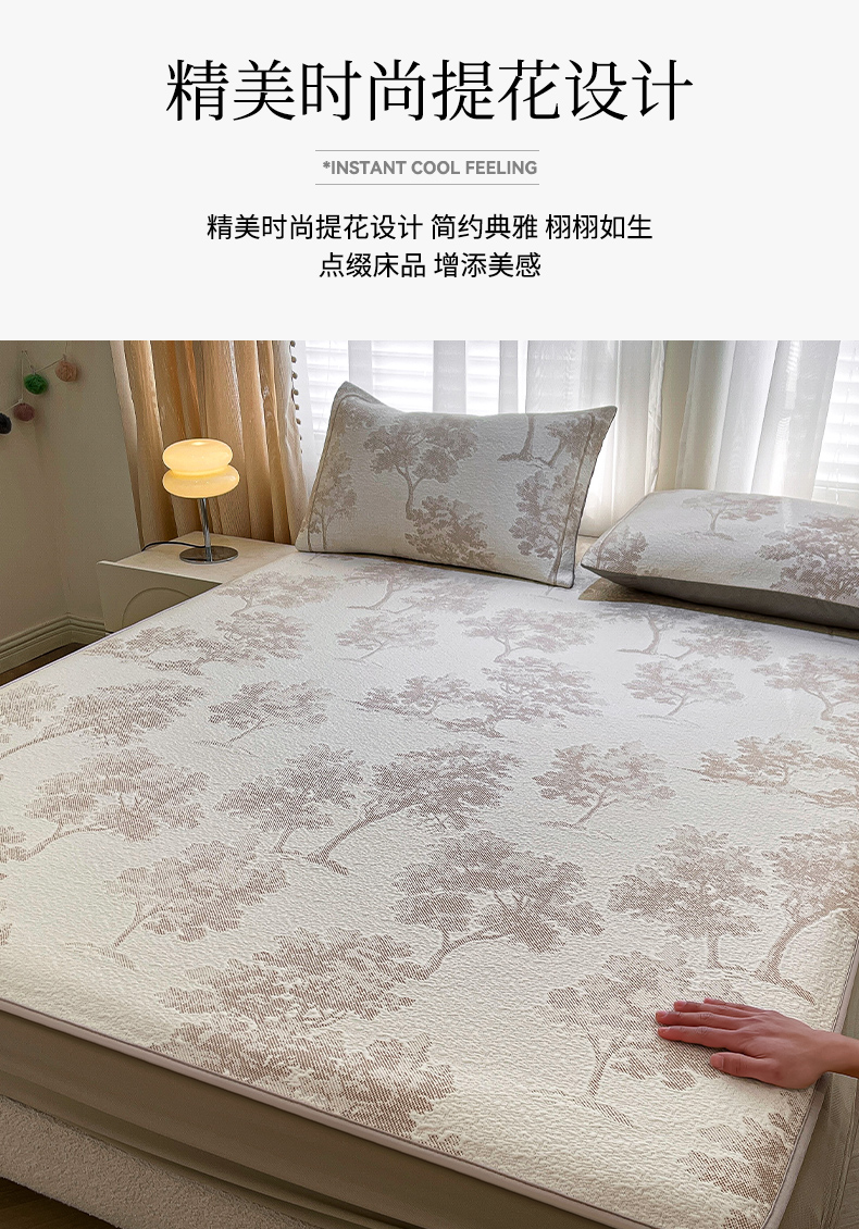 全季家居 2025新款A类乙纶PE花卉轻奢提花系列凉豆豆席 床笠款-迷雾森林-浅咖
