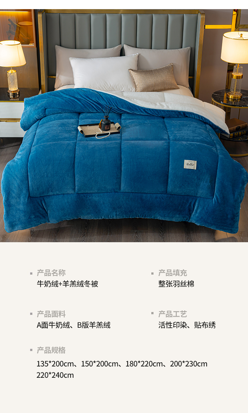好多家纺 2025春夏新款跨境电商爆款秋冬新款牛奶绒羊羔绒保暖加厚冬被牛奶绒被子被芯 宾利蓝,宾利蓝