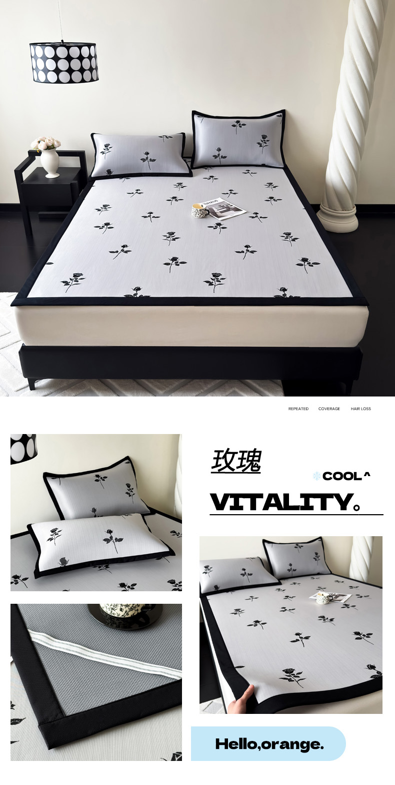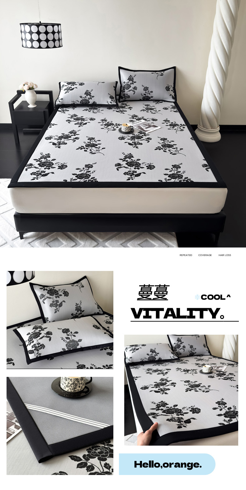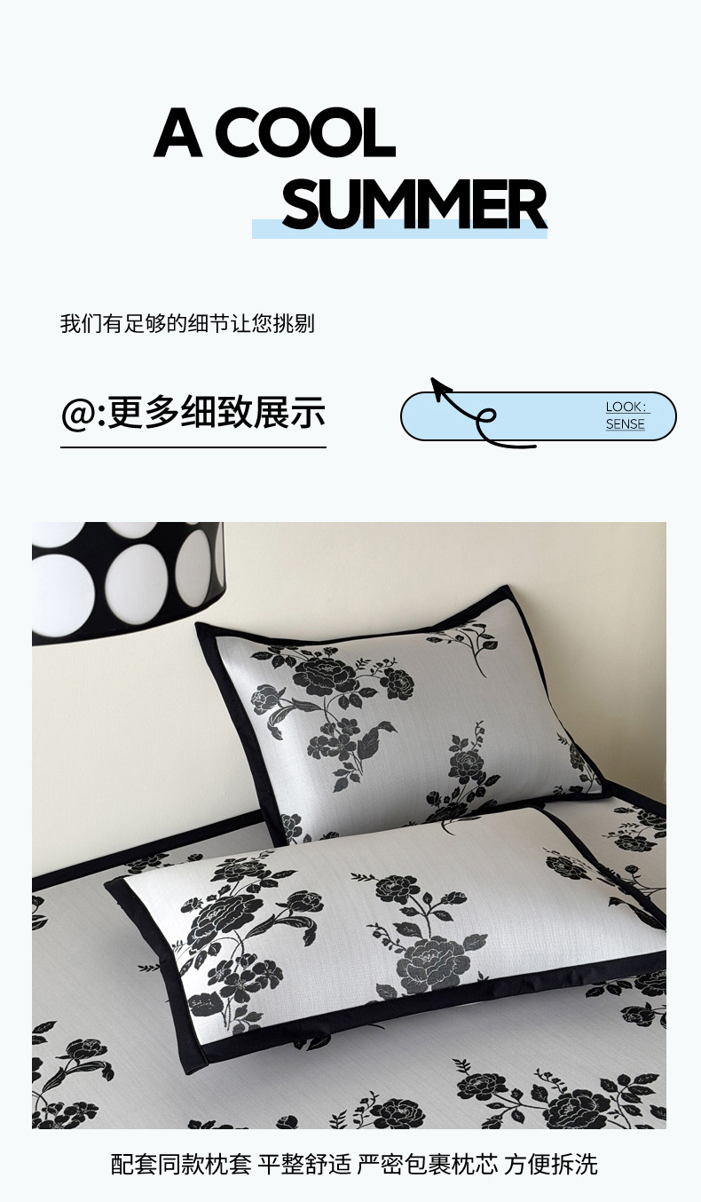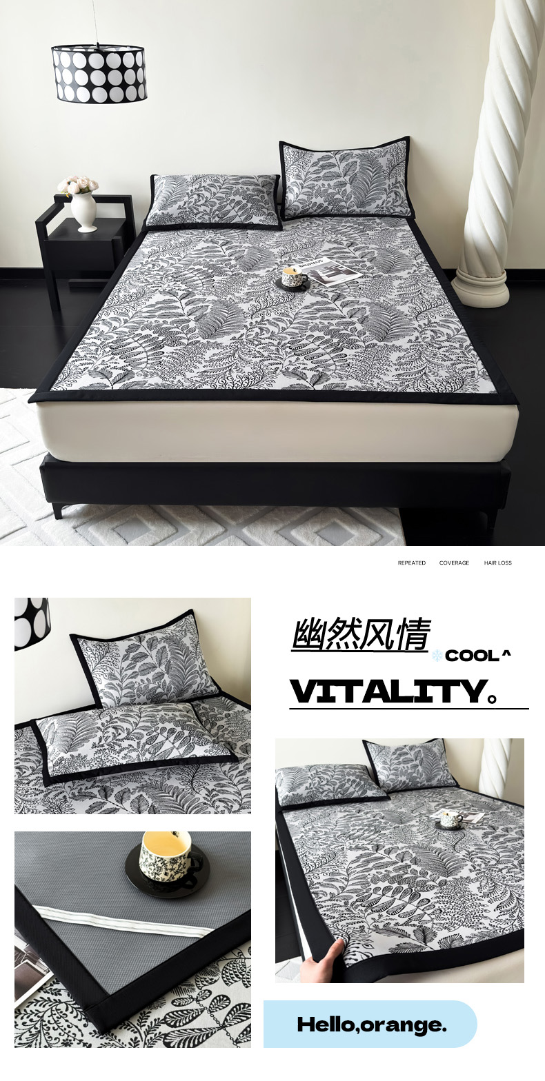 商品名称:九花鹿 2025新款A类赫本风PE凉感提花冰丝凉席-平铺款 焦岚