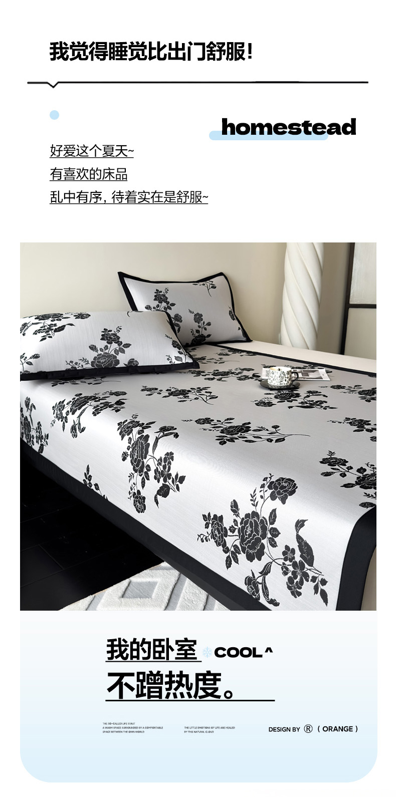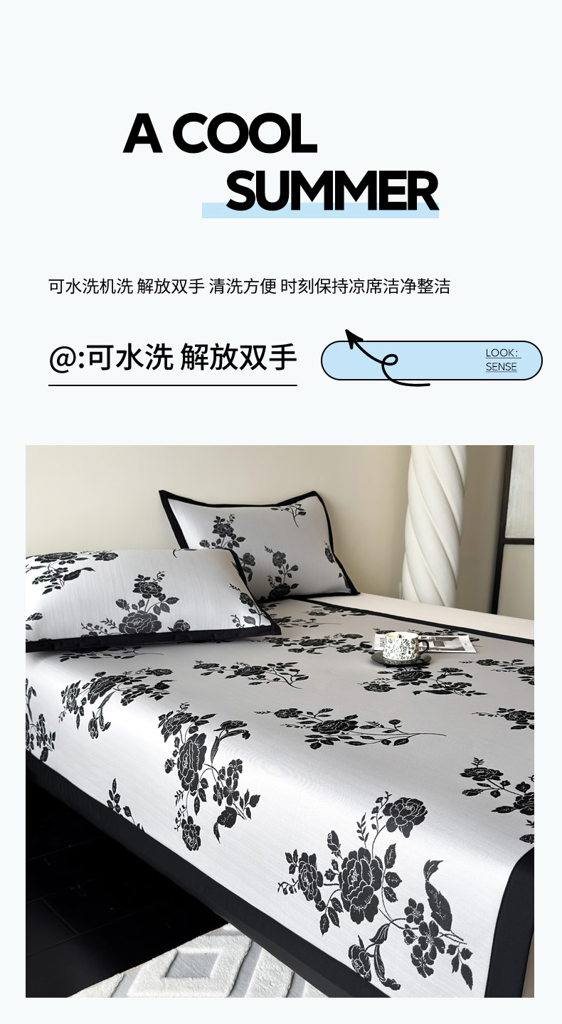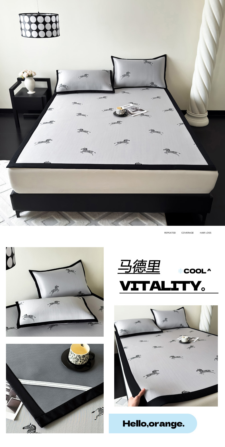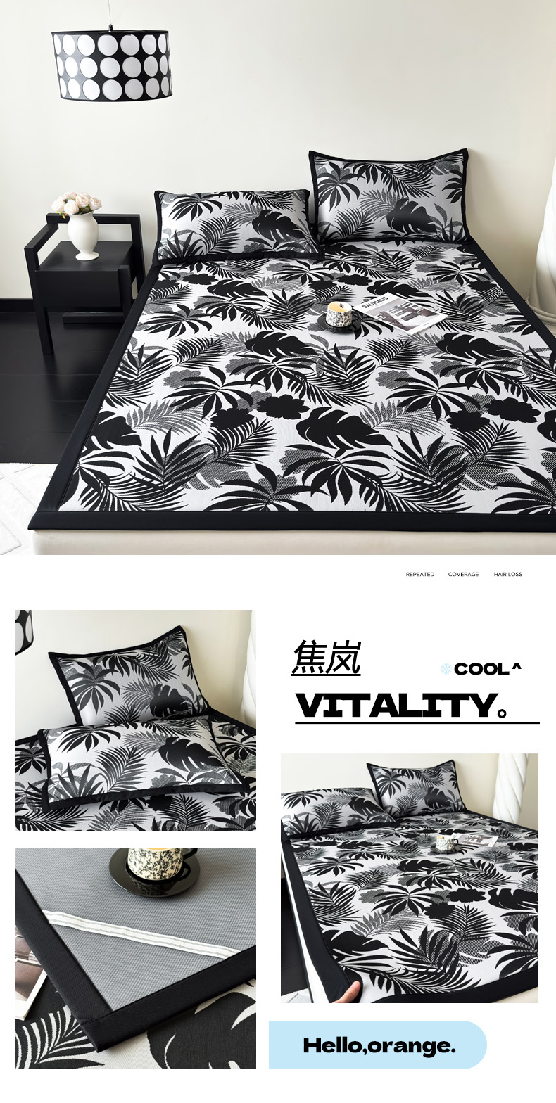 商品名称:九花鹿 2025新款A类赫本风PE凉感提花冰丝凉席-平铺款 焦岚