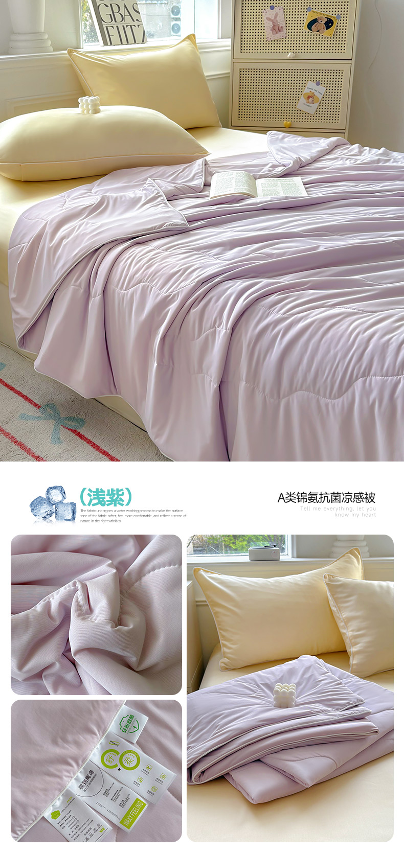 商品名称:百寐 2025新款A类160克88%锦纶+12%氨纶锦氨夏被纯色夏凉被空调被 浅紫