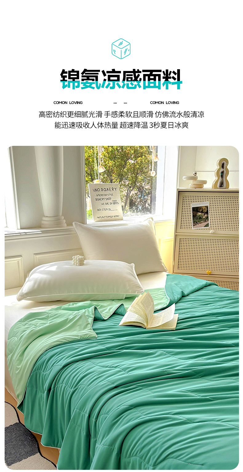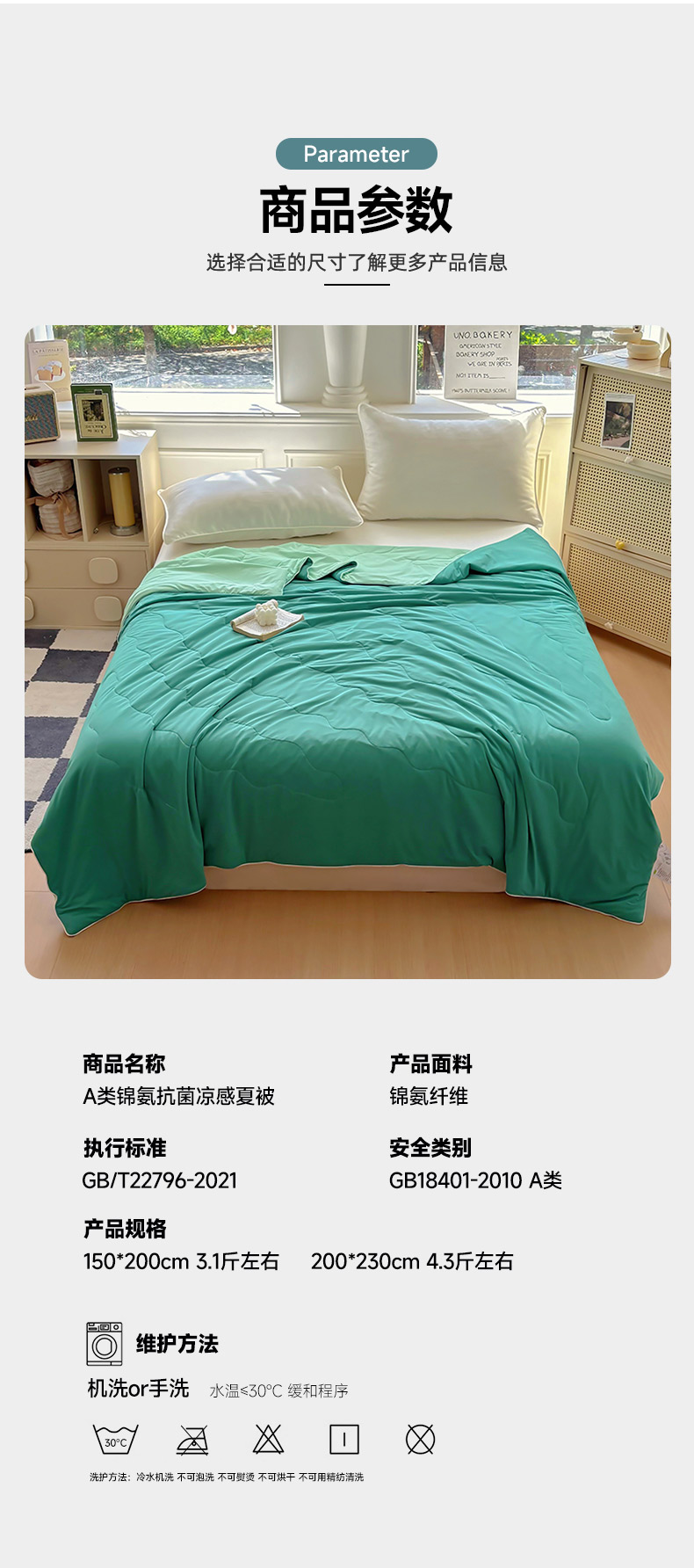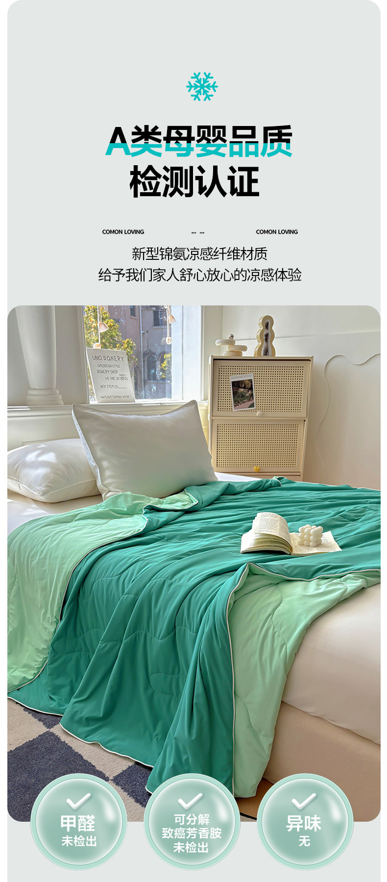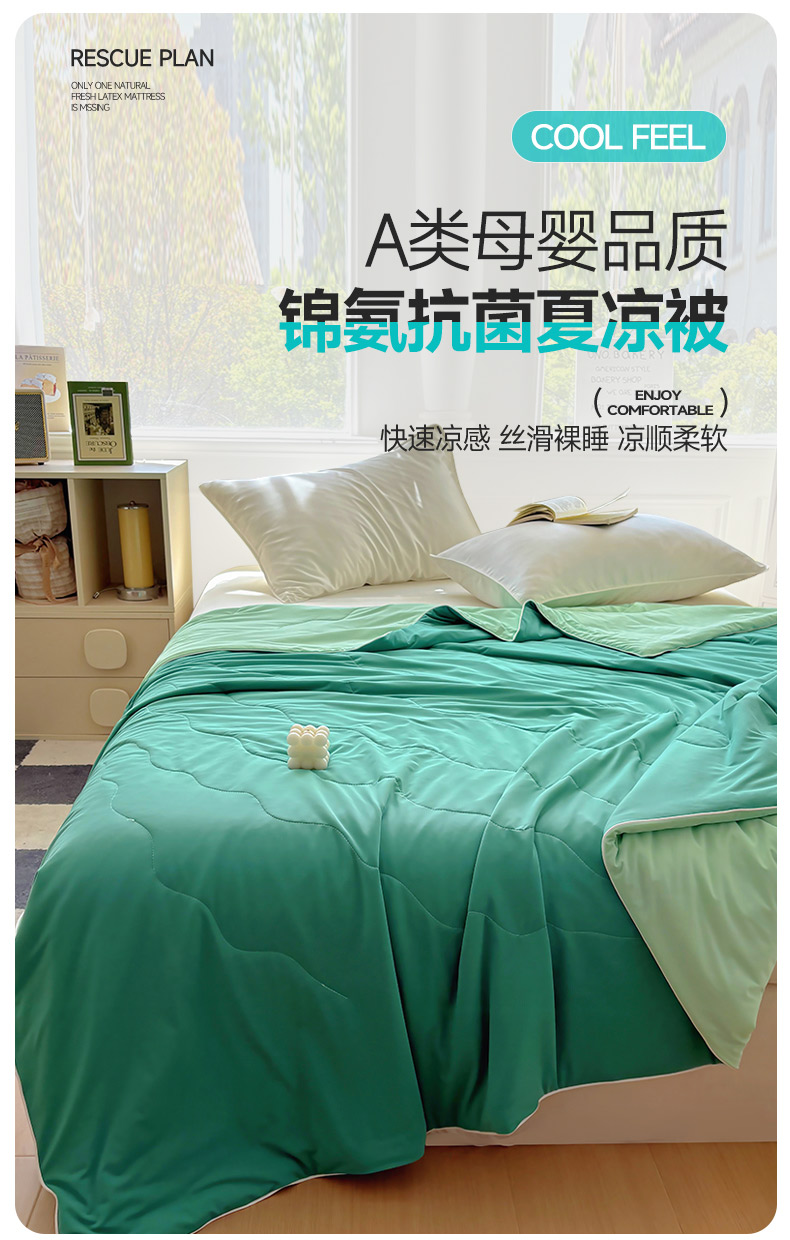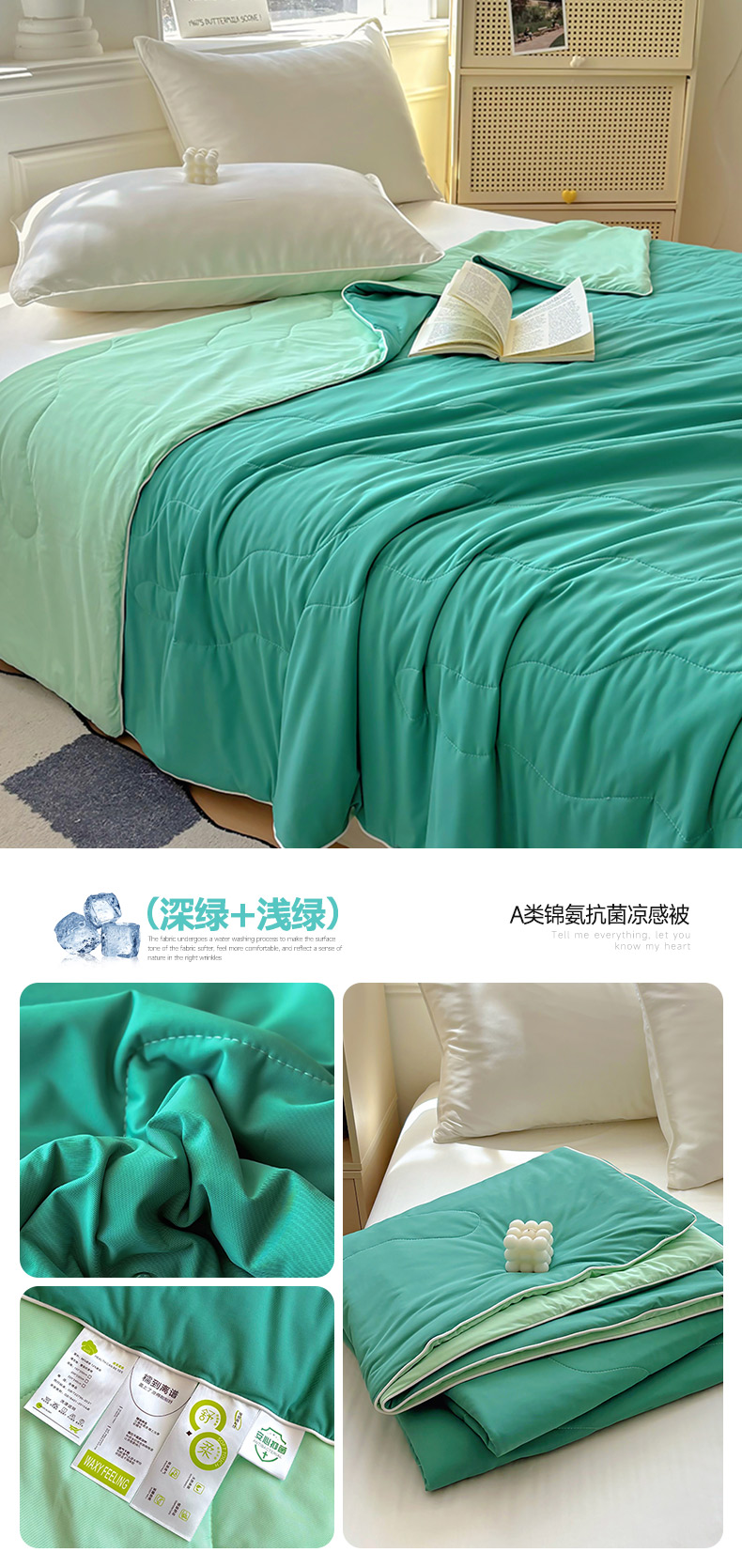 商品名称:百寐 2025新款A类160克88%锦纶+12%氨纶锦氨夏被纯色夏凉被空调被 深绿+浅绿