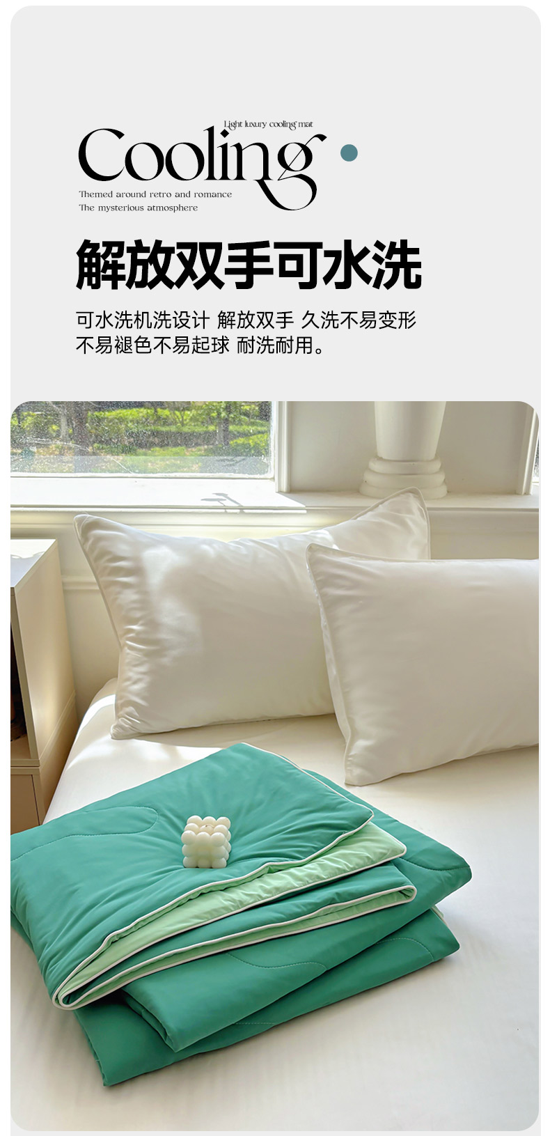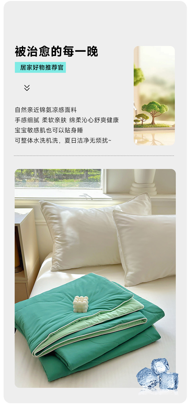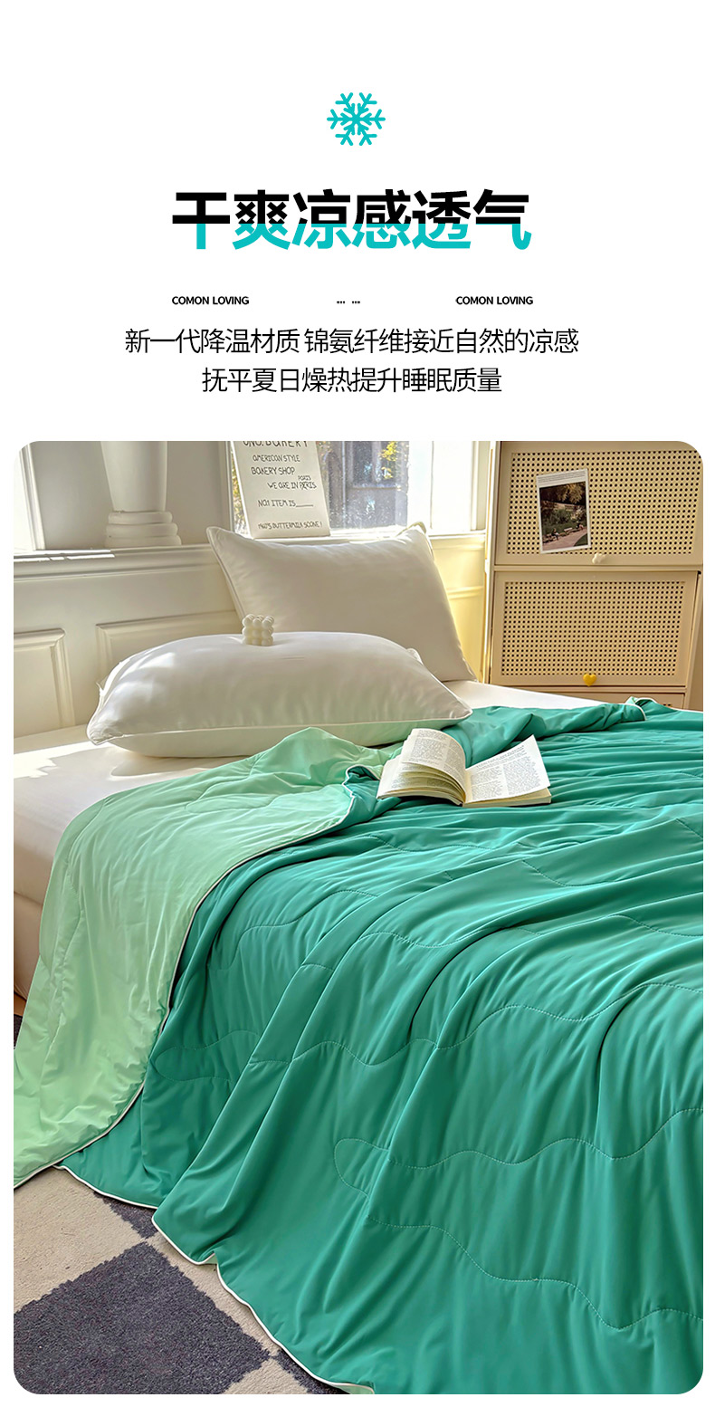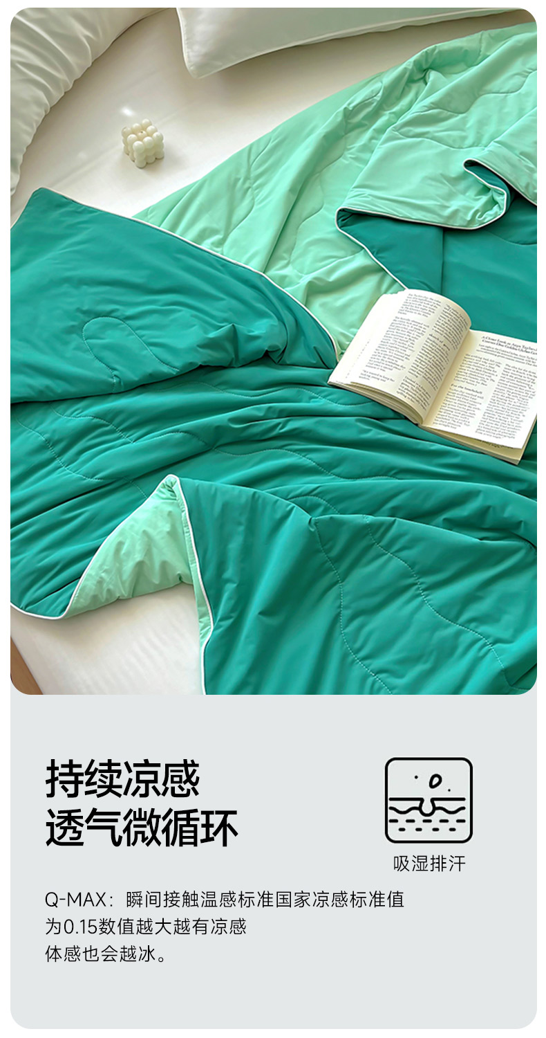 商品名称:百寐 2025新款A类160克88%锦纶+12%氨纶锦氨夏被纯色夏凉被空调被 深绿+浅绿