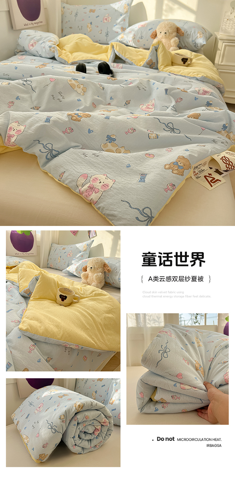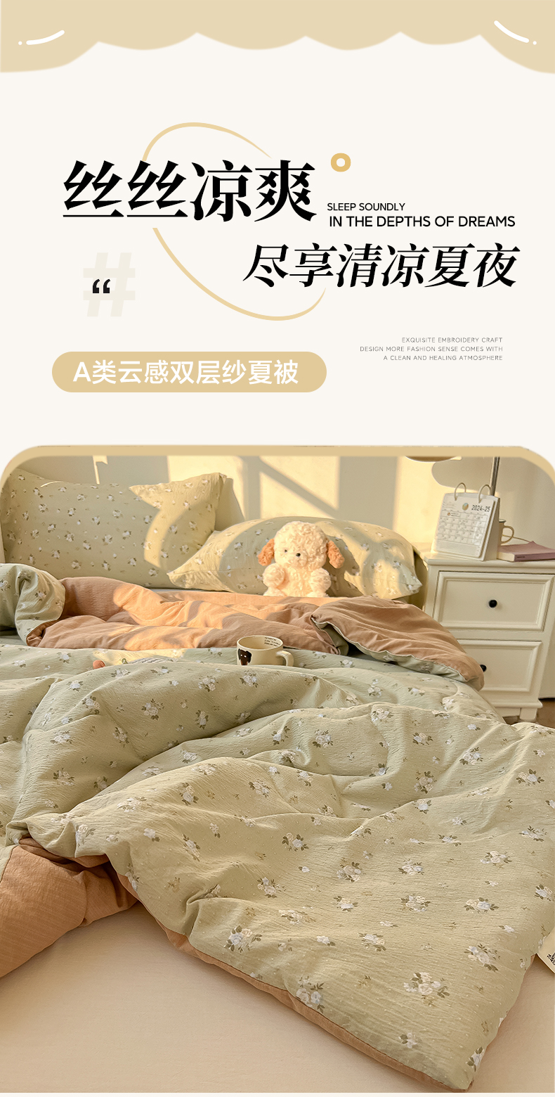 韩巢家纺 2025新款A类云感双层纱夏被夏凉被空调被薄被子空调被 茶野