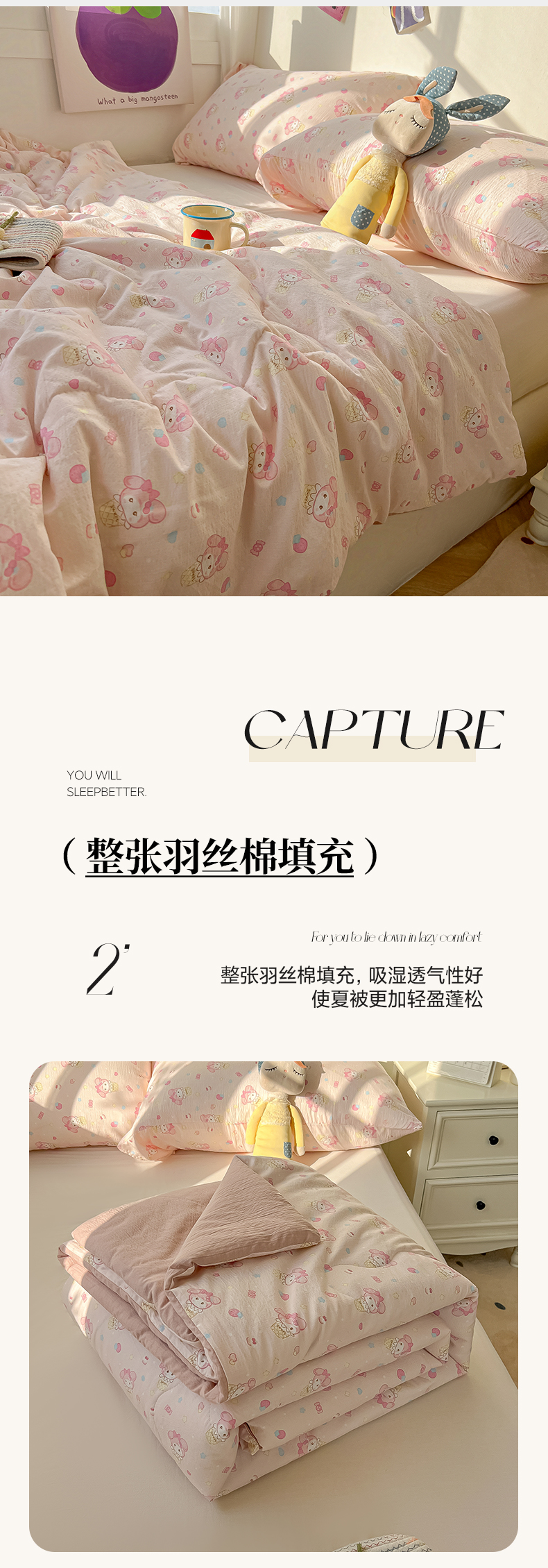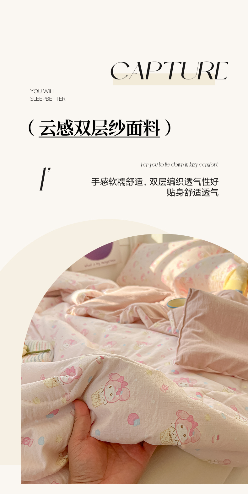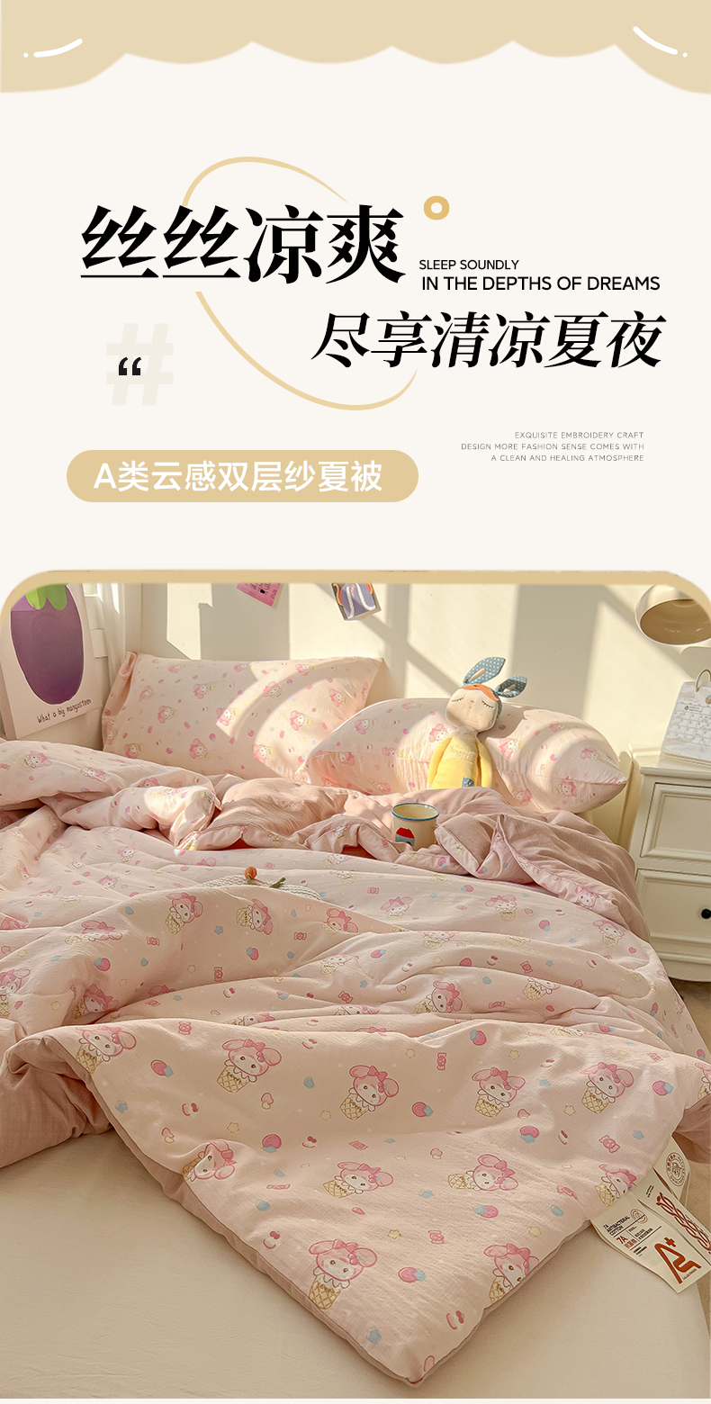 商品名称:韩巢家纺 2025新款A类云感双层纱夏被夏凉被空调被薄被子空调被 甜心兔
