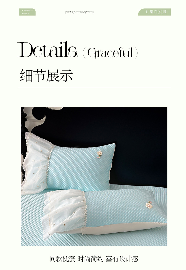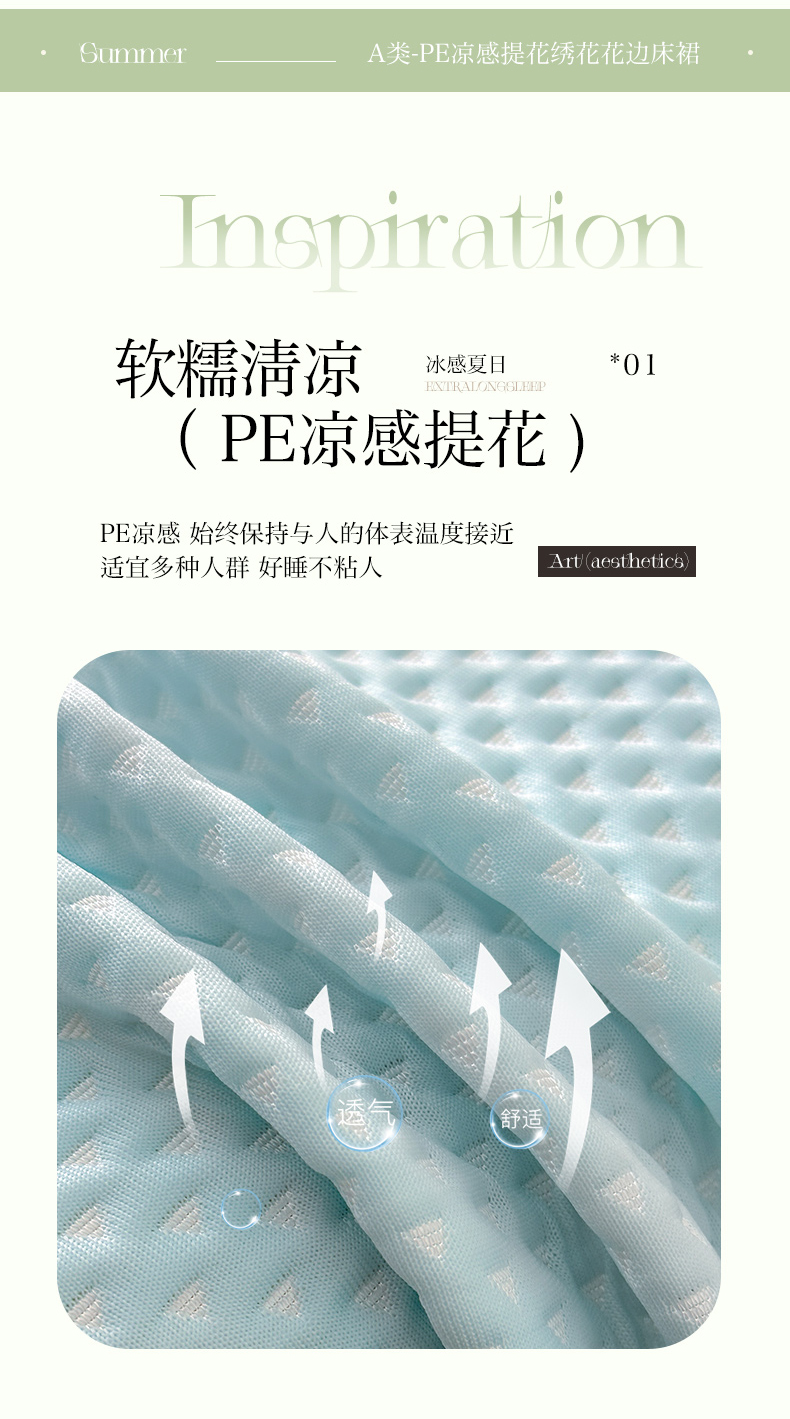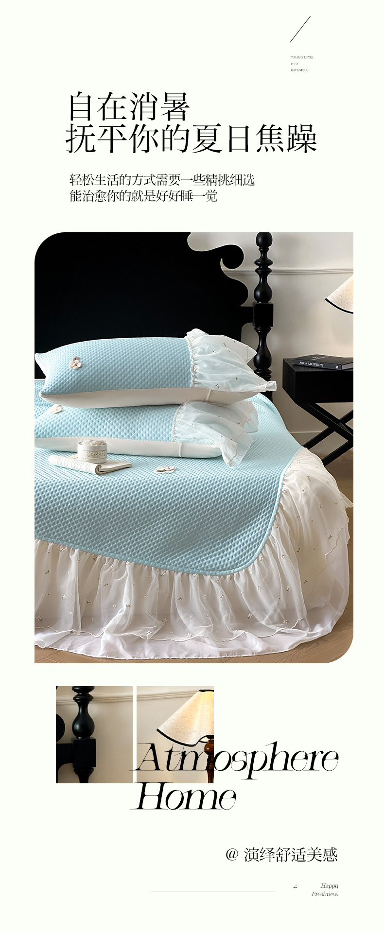 蓝邻家纺 2025春夏新款PE提花雪纺+绣花花边凉席席子-场景二 夏花-蓝