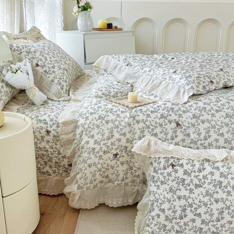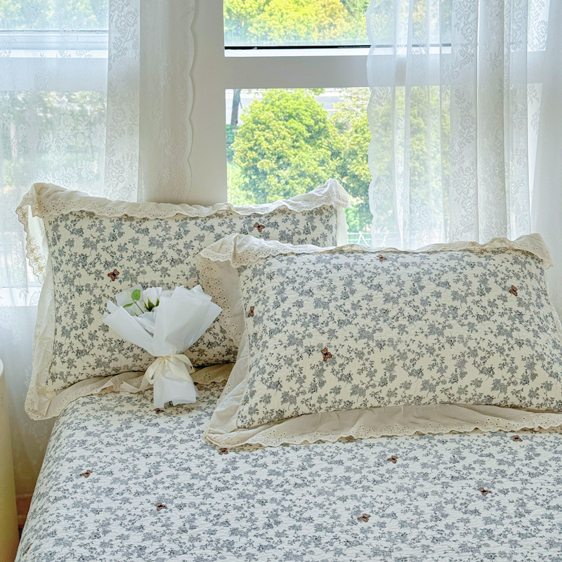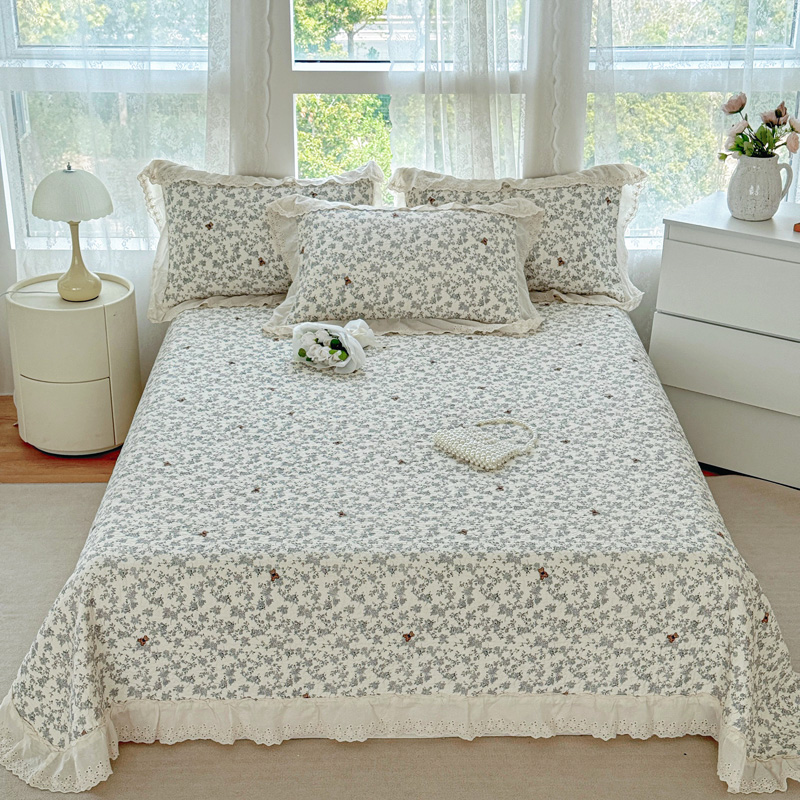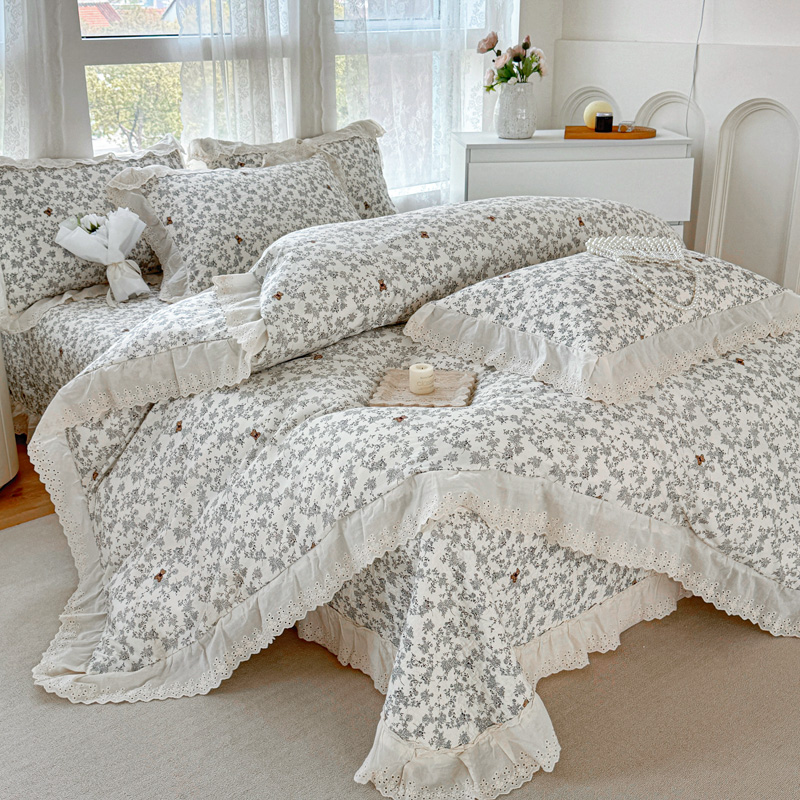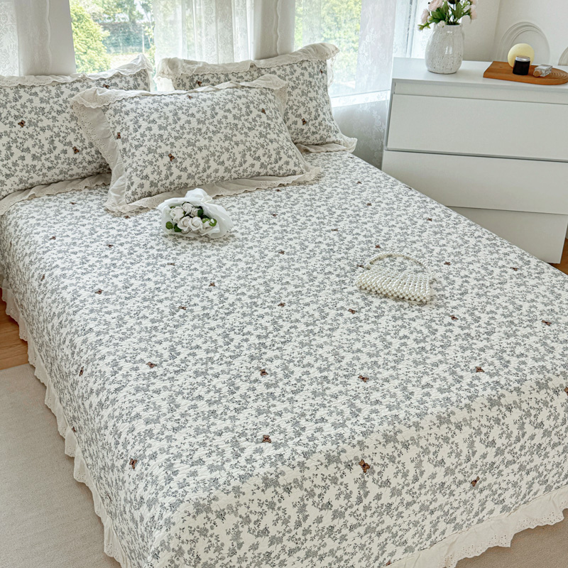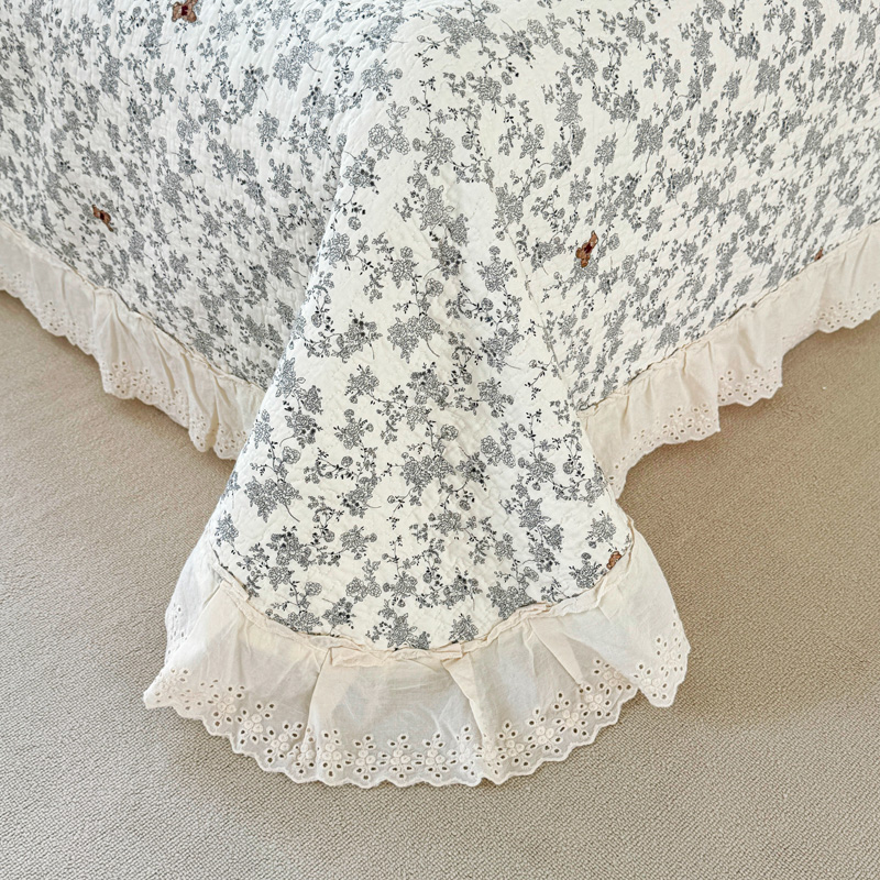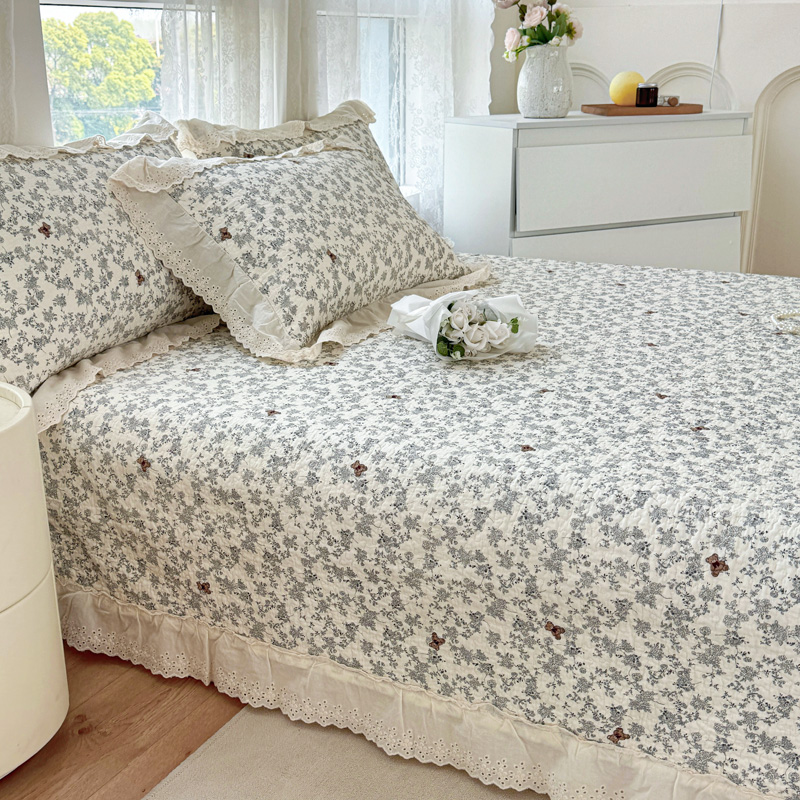 添越 2024小清新韩版蕾丝款花边纯棉夹棉床盖三件套全棉爱意时光蕾丝款,爱意时光蕾丝款
