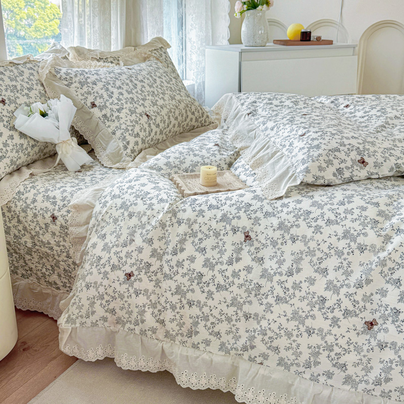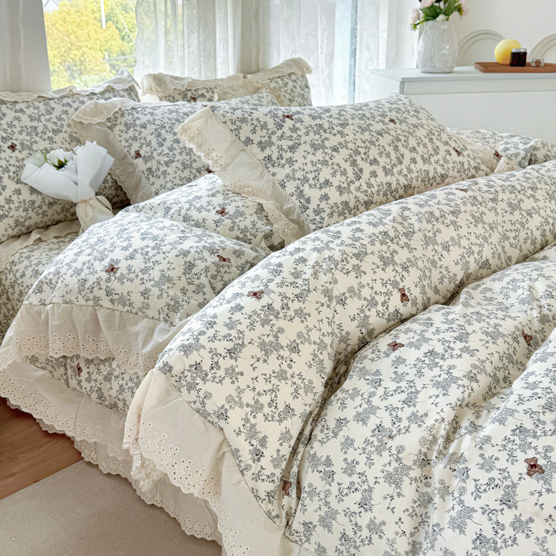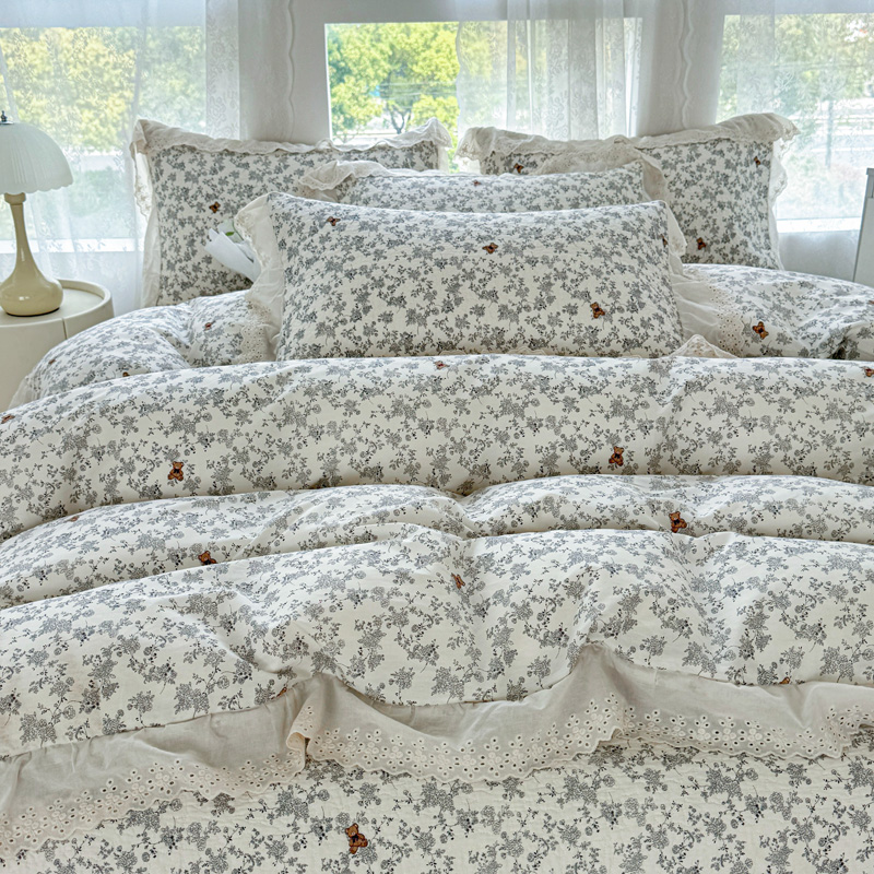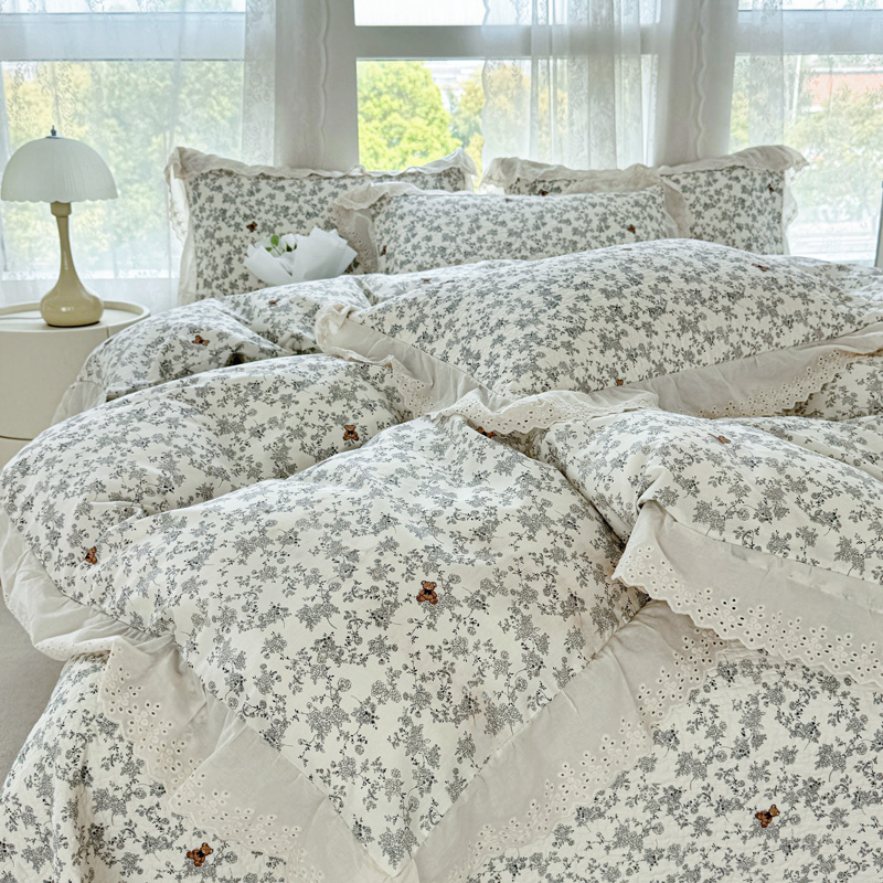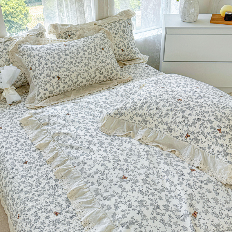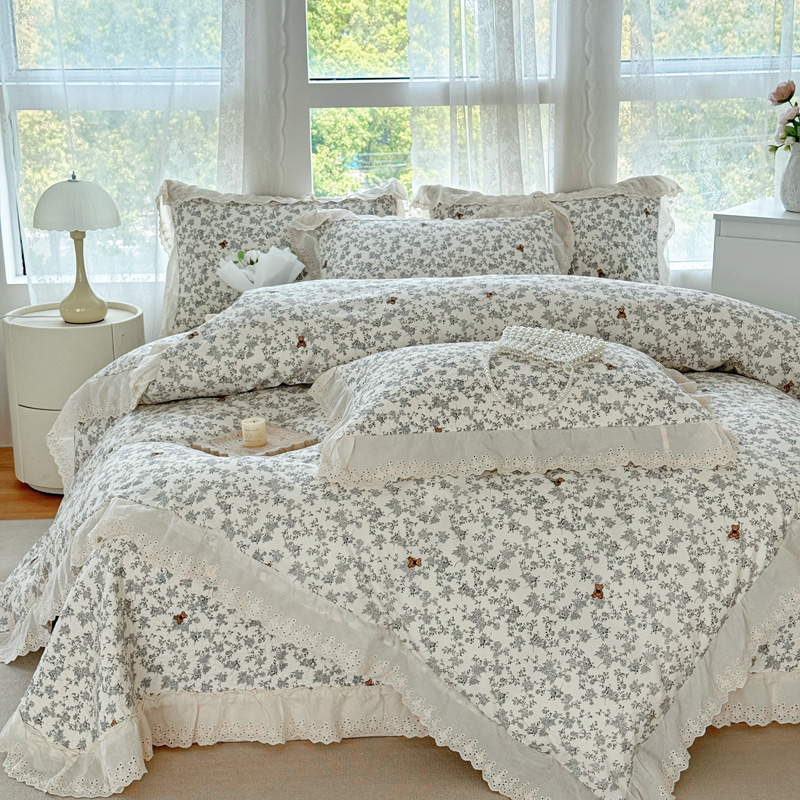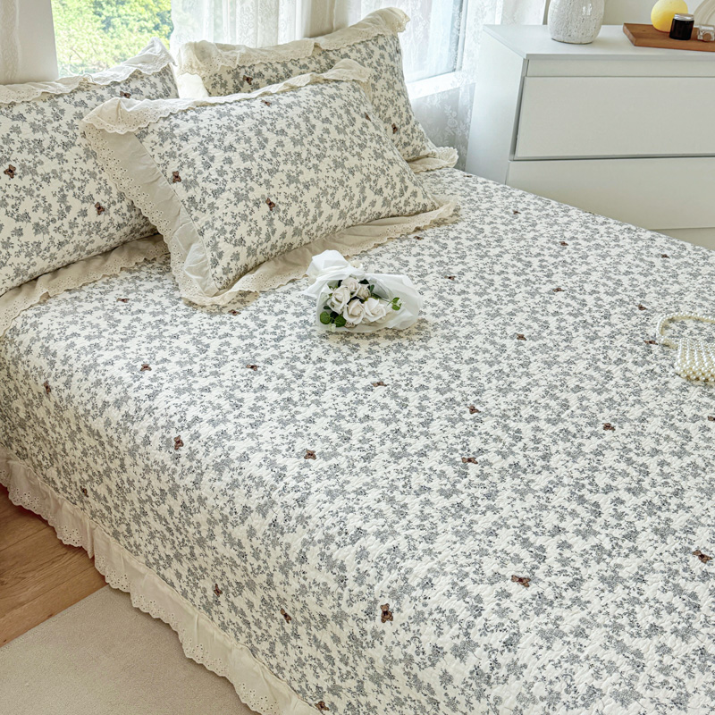 添越 2024小清新韩版蕾丝款花边纯棉夹棉床盖三件套全棉爱心熊-蕾丝款,爱心熊-蕾丝款