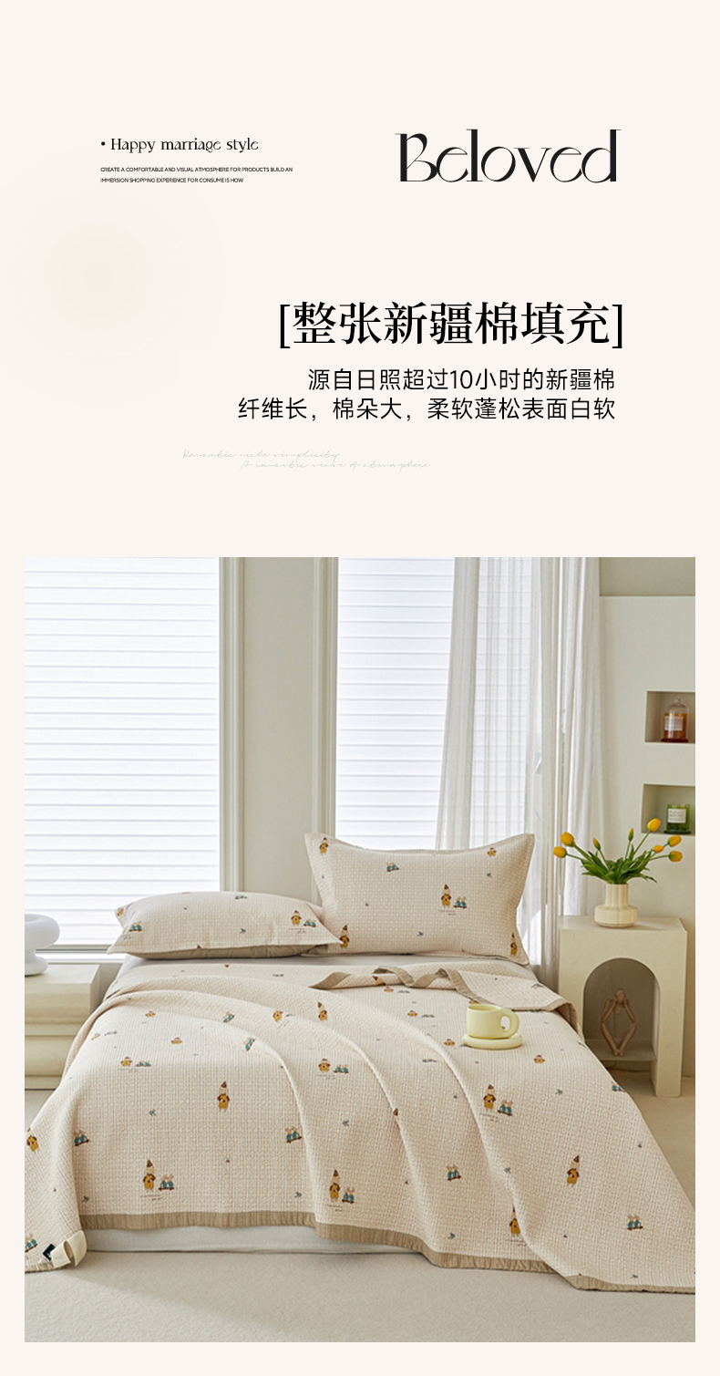 • 91家纺网 家纺一手货源 找家纺 洽想家 2025新款里外夹棉新疆棉花水洗床盖A1系列 兔梦园 床盖