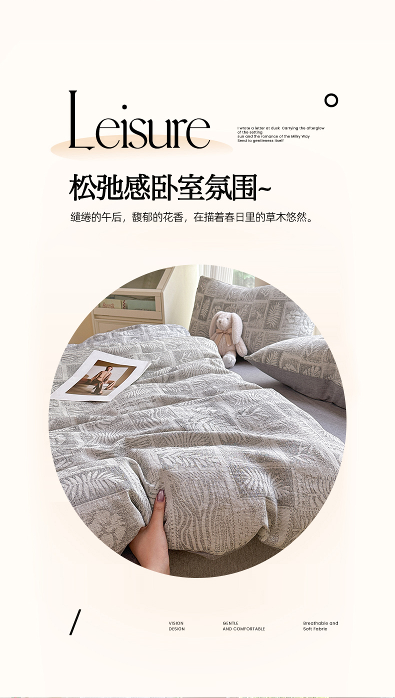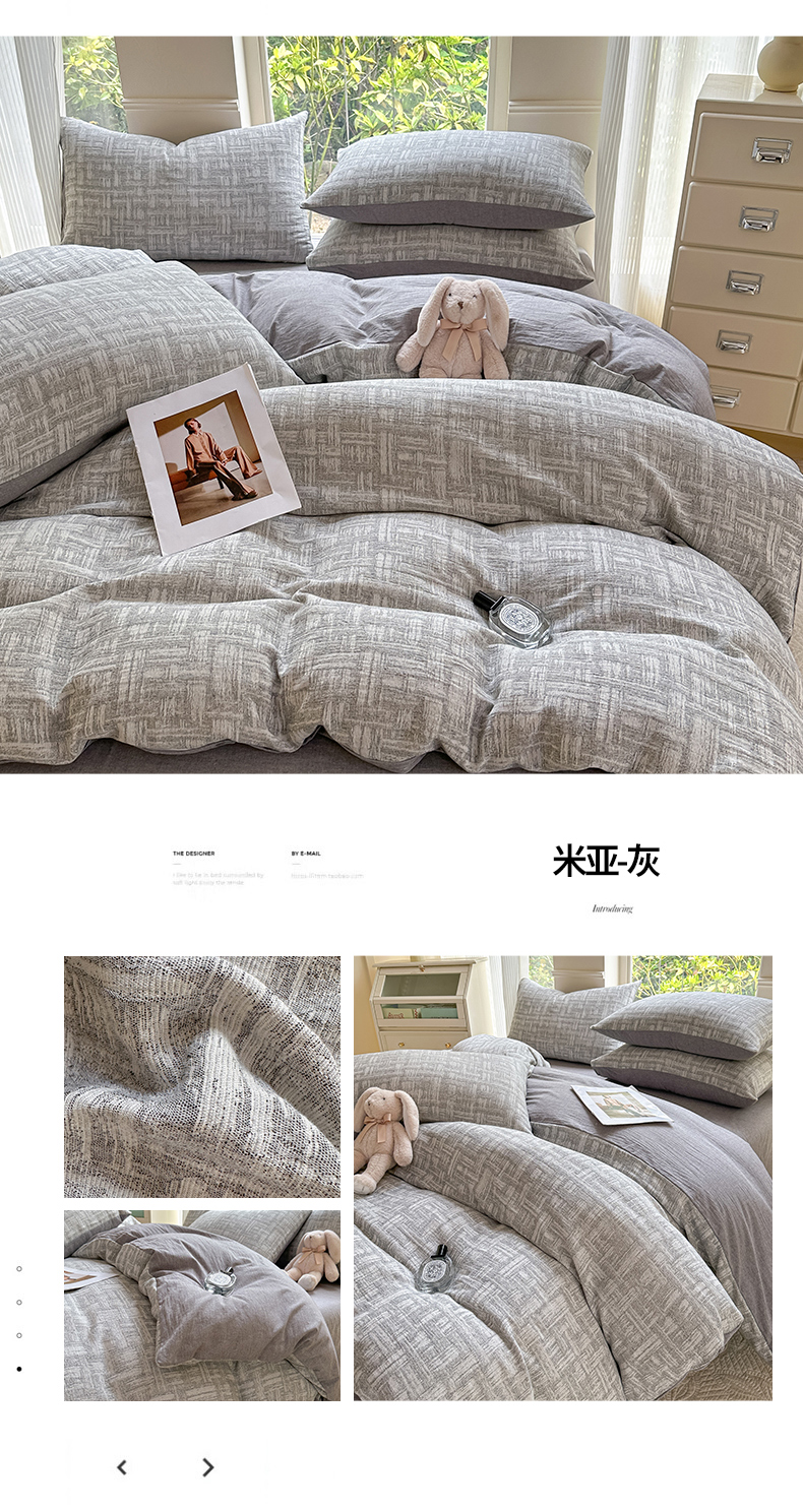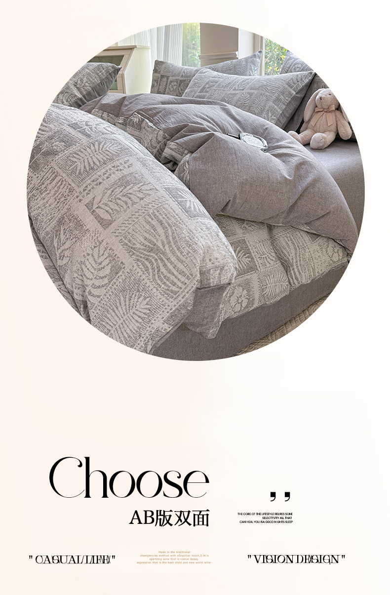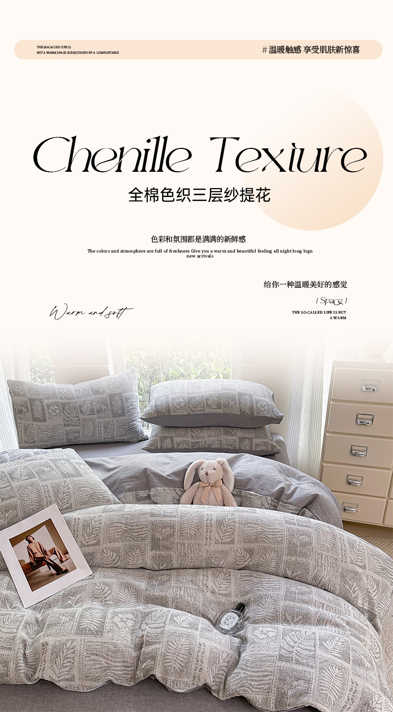 当前位置: 91家纺网 > 商品网购 > 床品套件 > 四件套 > 色织四件套 > 菡宝 2025新款a类母婴级纯棉全棉纯棉色织三层纱提花系列四件套 叶之美-灰