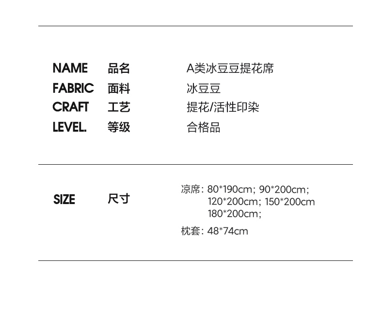 80*190单凉席(单层) | ¥34.00 |