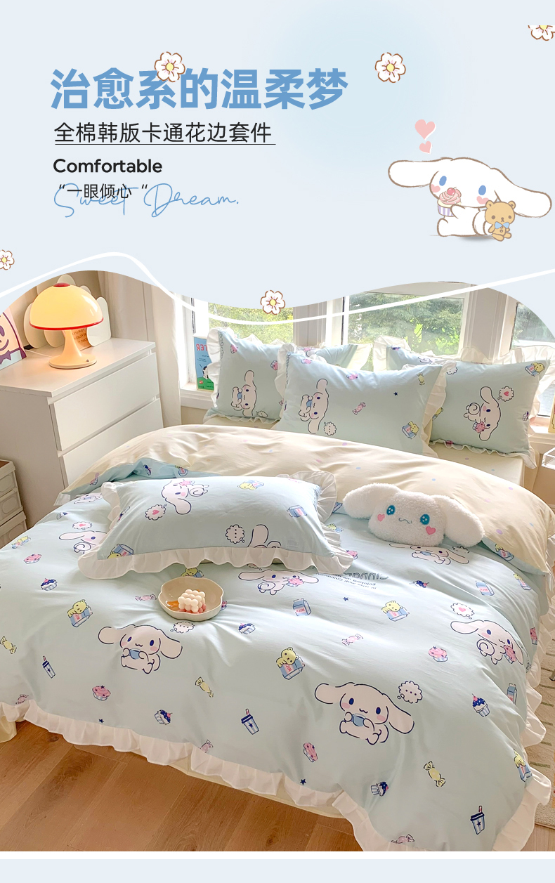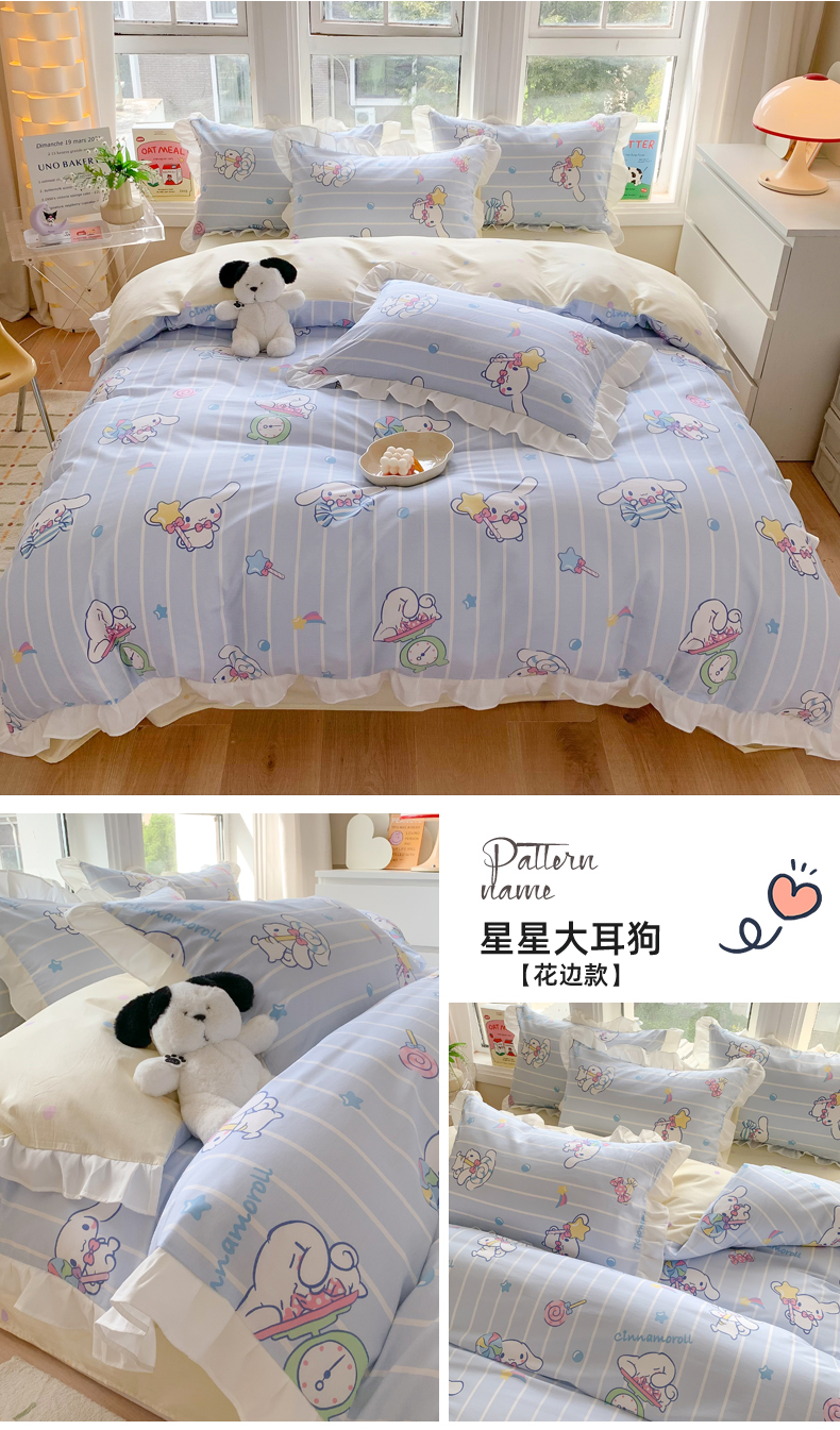 当前位置: 91家纺网 > 商品网购 > 床品套件 > 四件套 > 全棉普通四件套 > 玉元坊 2025年新款三丽鸥系列白花边被套纯棉全棉床裙三件套四件套-大耳狗系列 牛奶大耳狗【花边款】