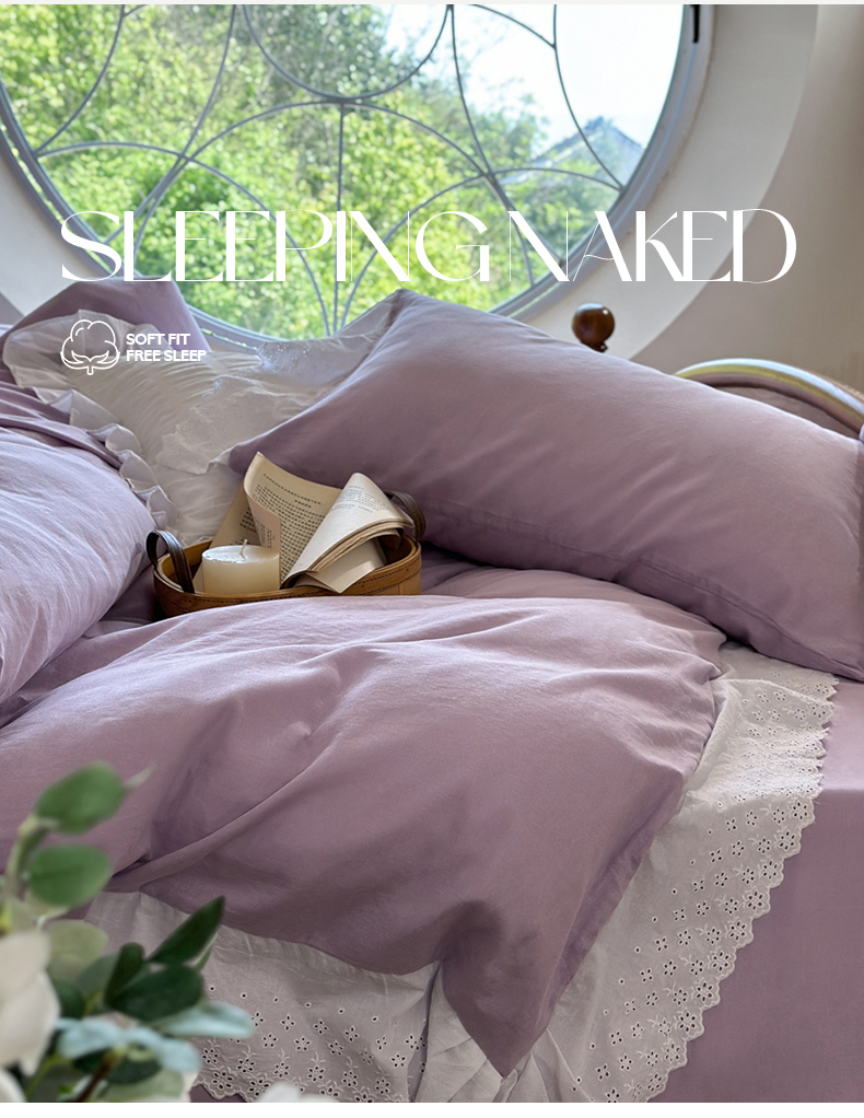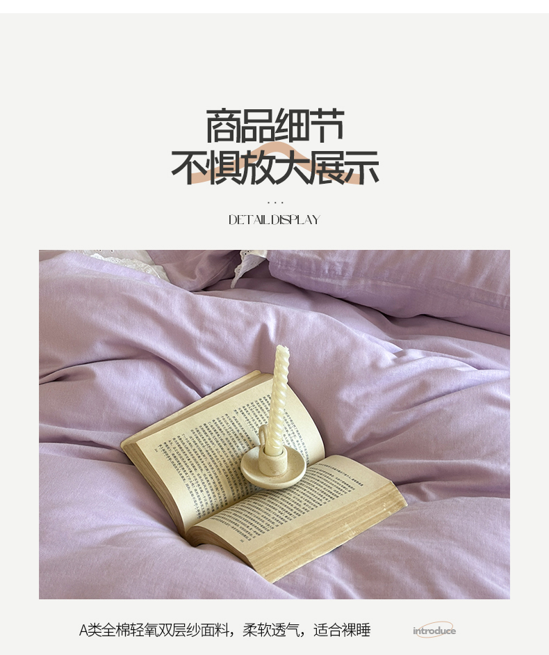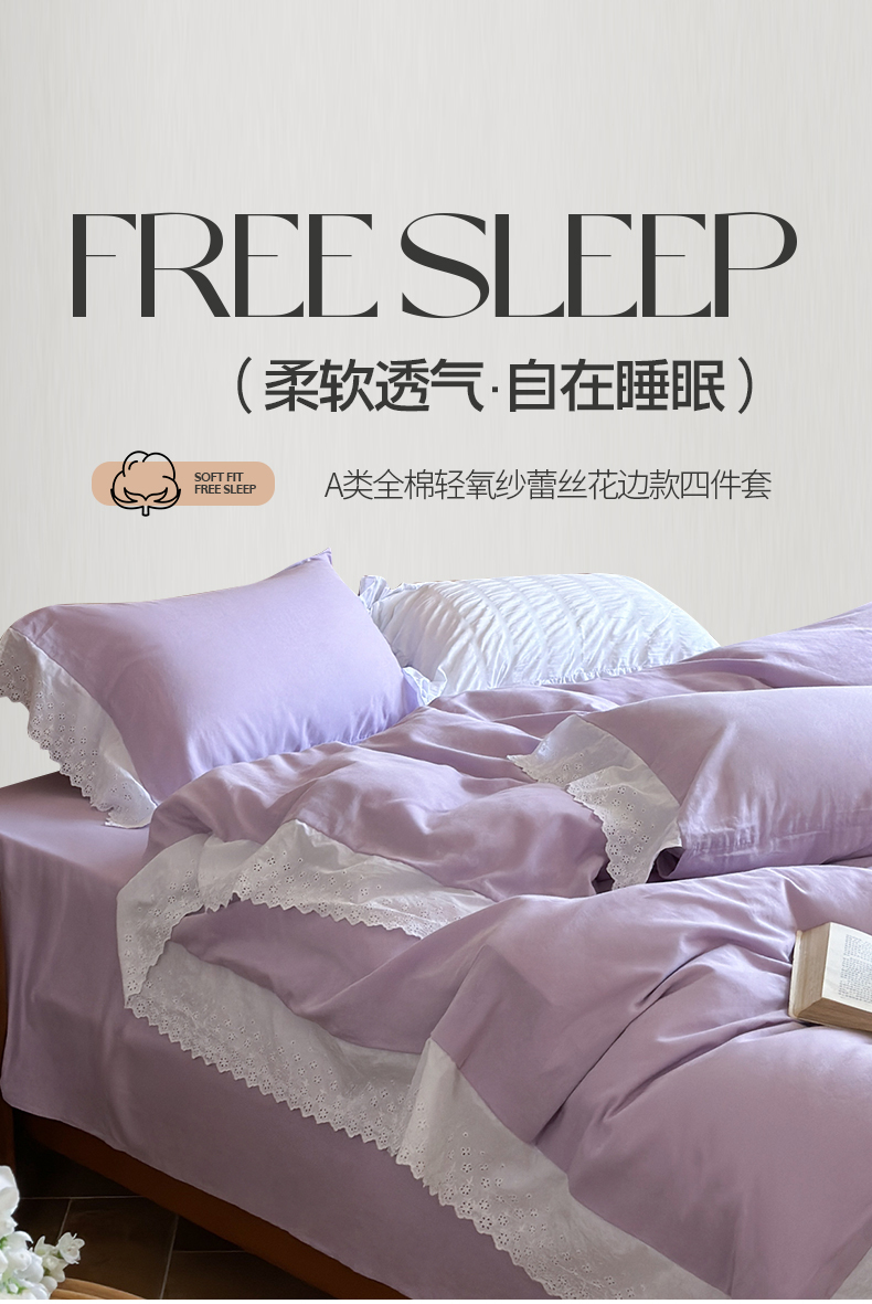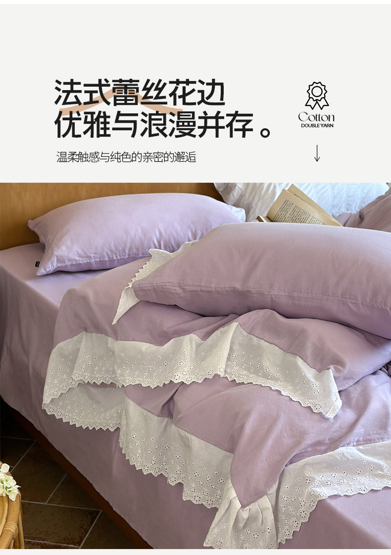 商品名称:窝米 2025新款全棉纯棉轻氧纱蕾丝花边款四件套系列 轻氧纱-星空紫