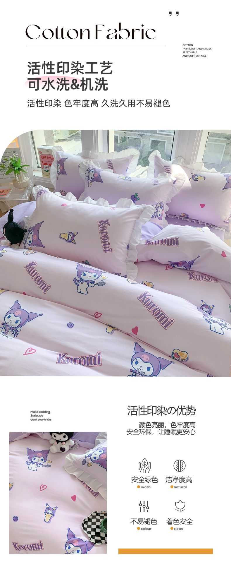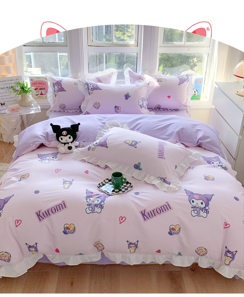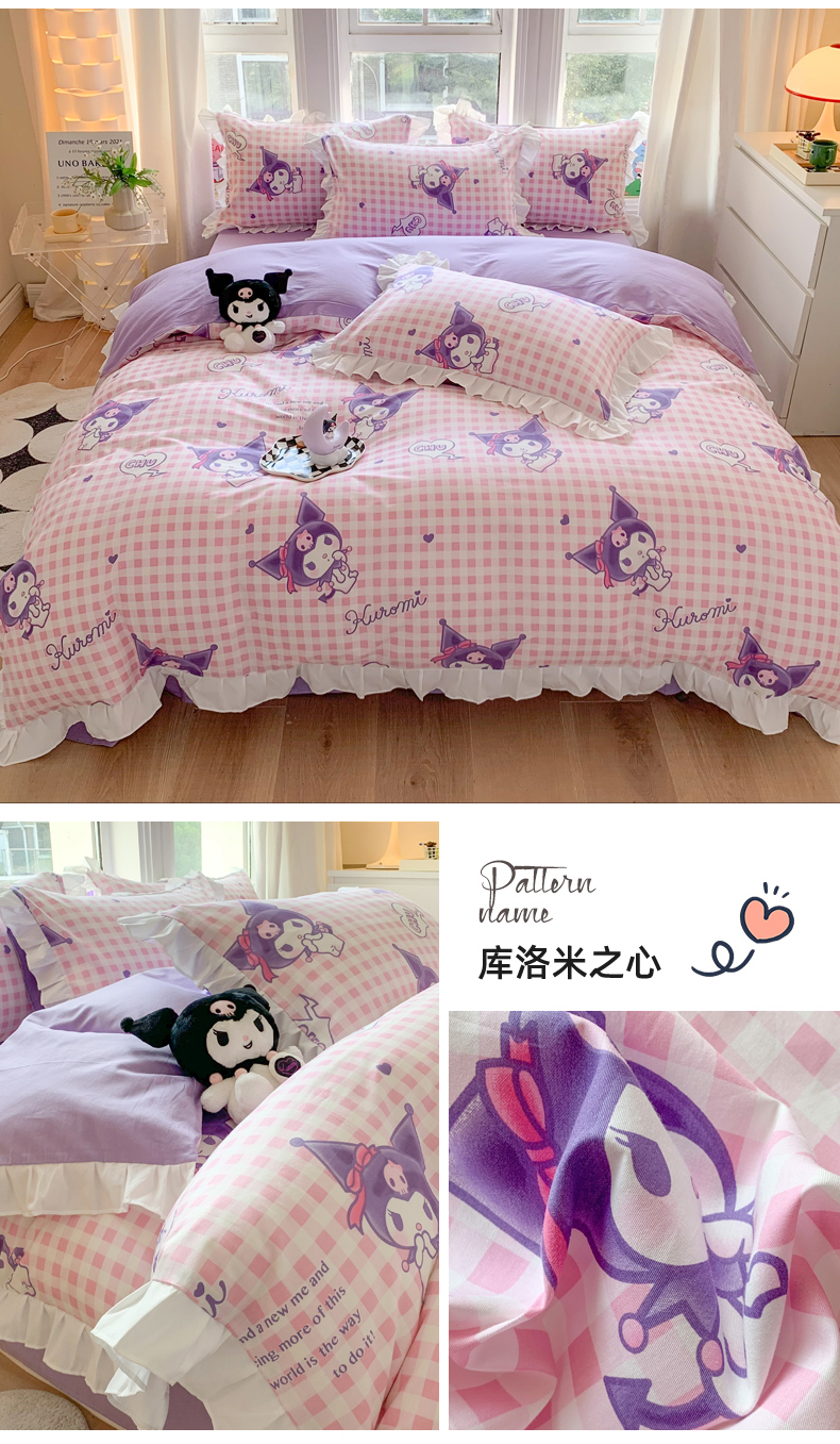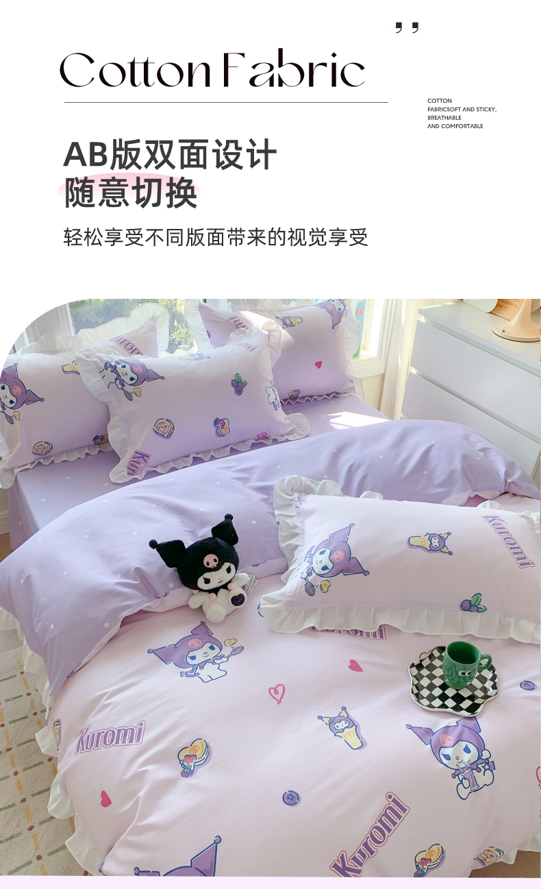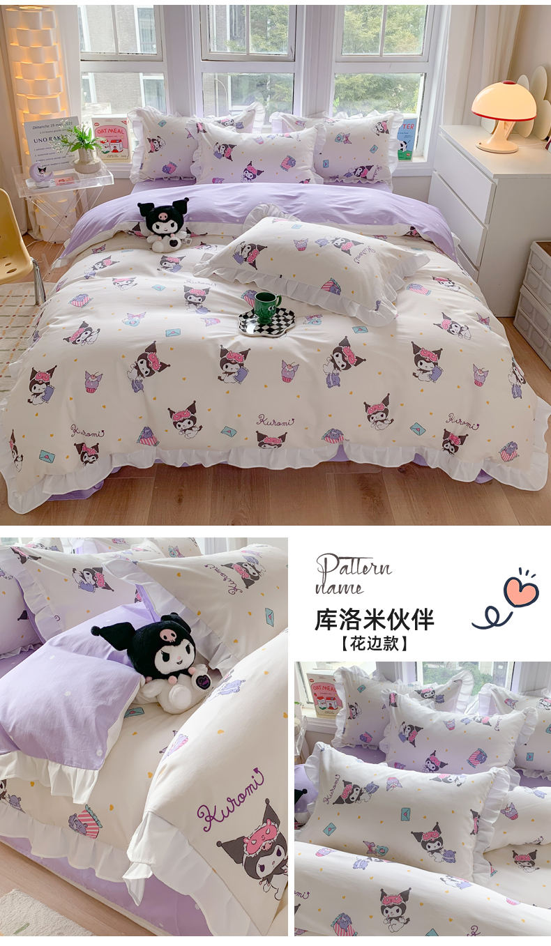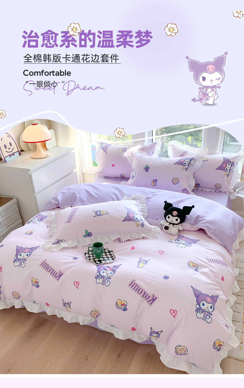 当前位置: 91家纺网 > 商品网购 > 床品套件 > 四件套 > 全棉普通四件套 > 玉元坊 2025年5月新品 三丽鸥花边被套全棉床单纯棉床裙床笠三四件套-库洛米系列 甜甜库洛米【花边款】