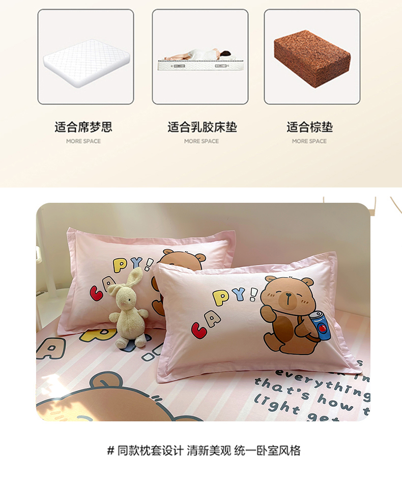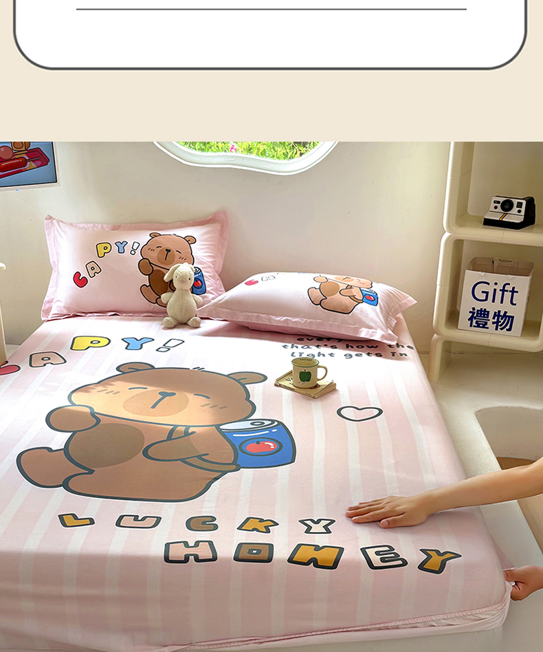 浩诚 2025新款卡皮巴拉原创IP全棉纯棉大版单床笠单枕套床笠枕套单件-有作品登记证书 可乐巴拉