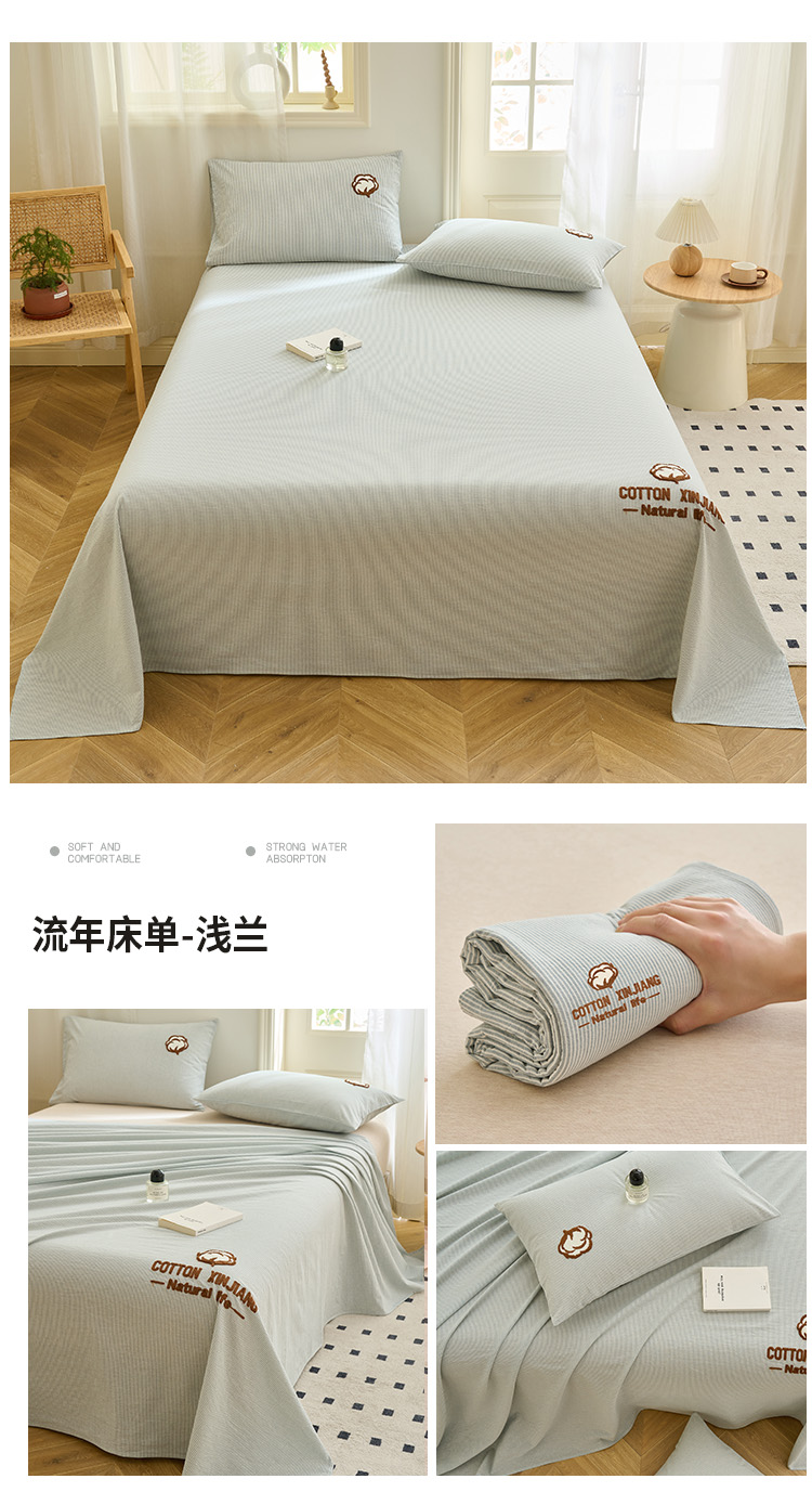 当前位置: 91家纺网 > 商品网购 > 床上用品 > 床单 > 早晨家纺 2025新款色织纯棉水洗棉毛巾绣床单 流年床单-浅兰