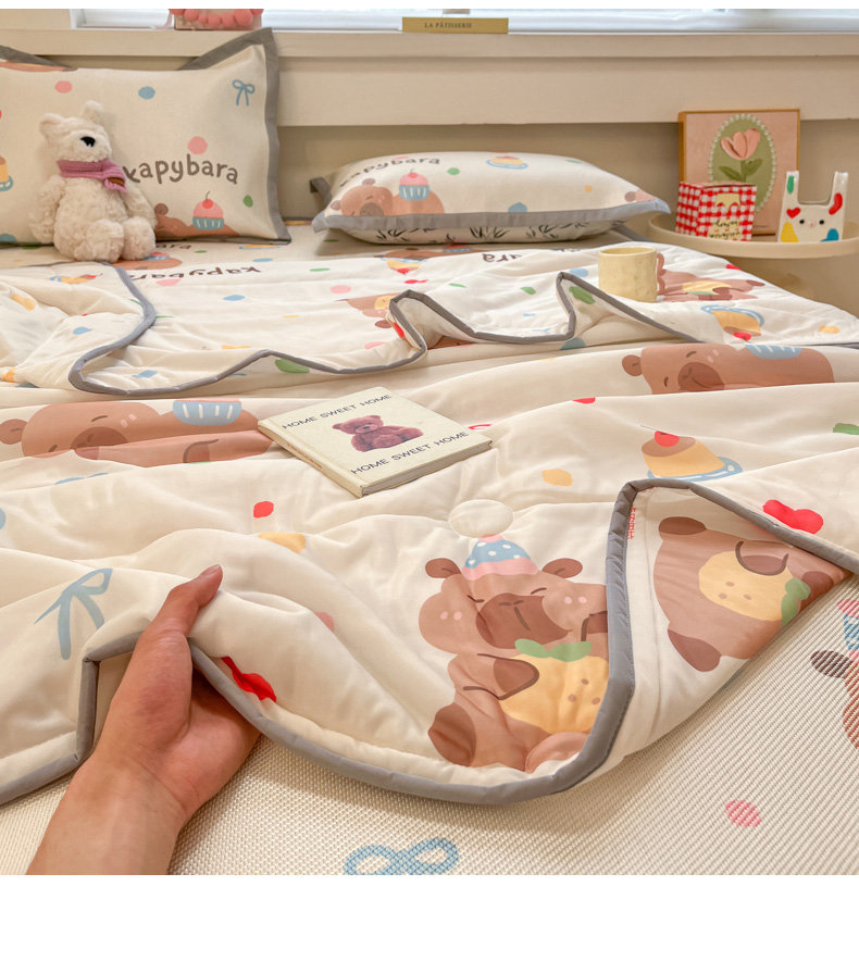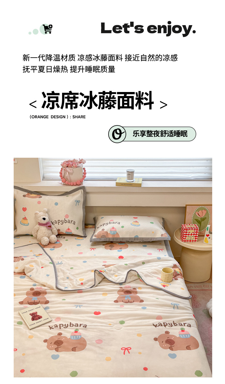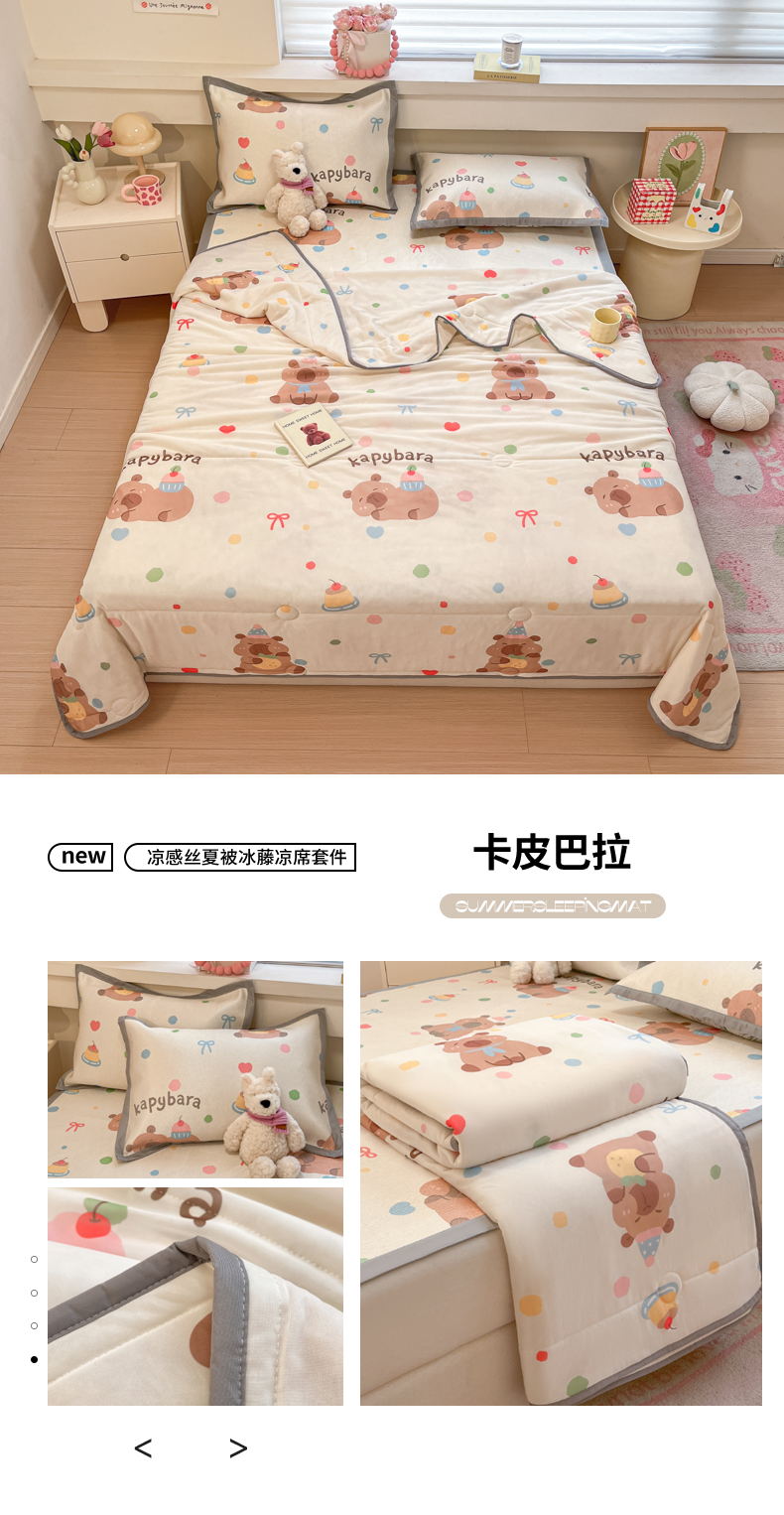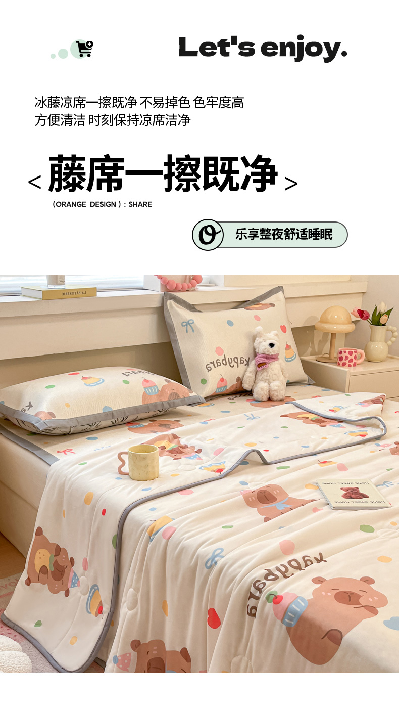 慕澄家纺 2025新款真冰藤席子凉席夏被夏凉被空调被四件套 卡皮巴拉
