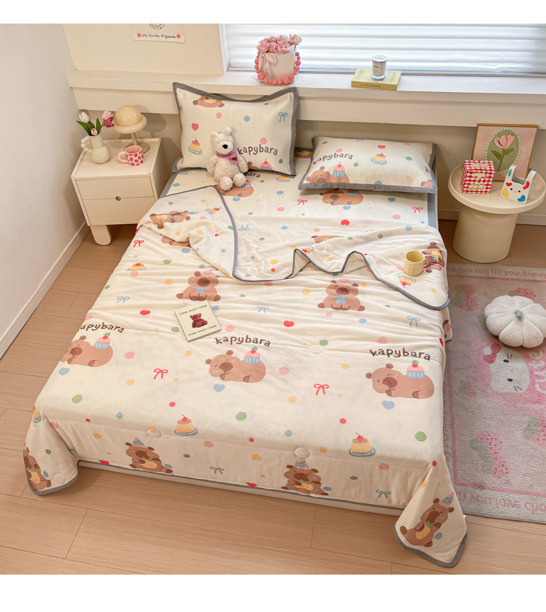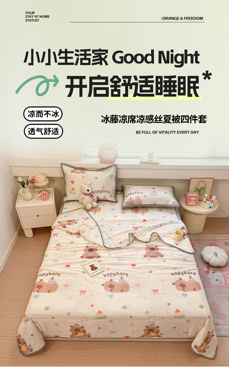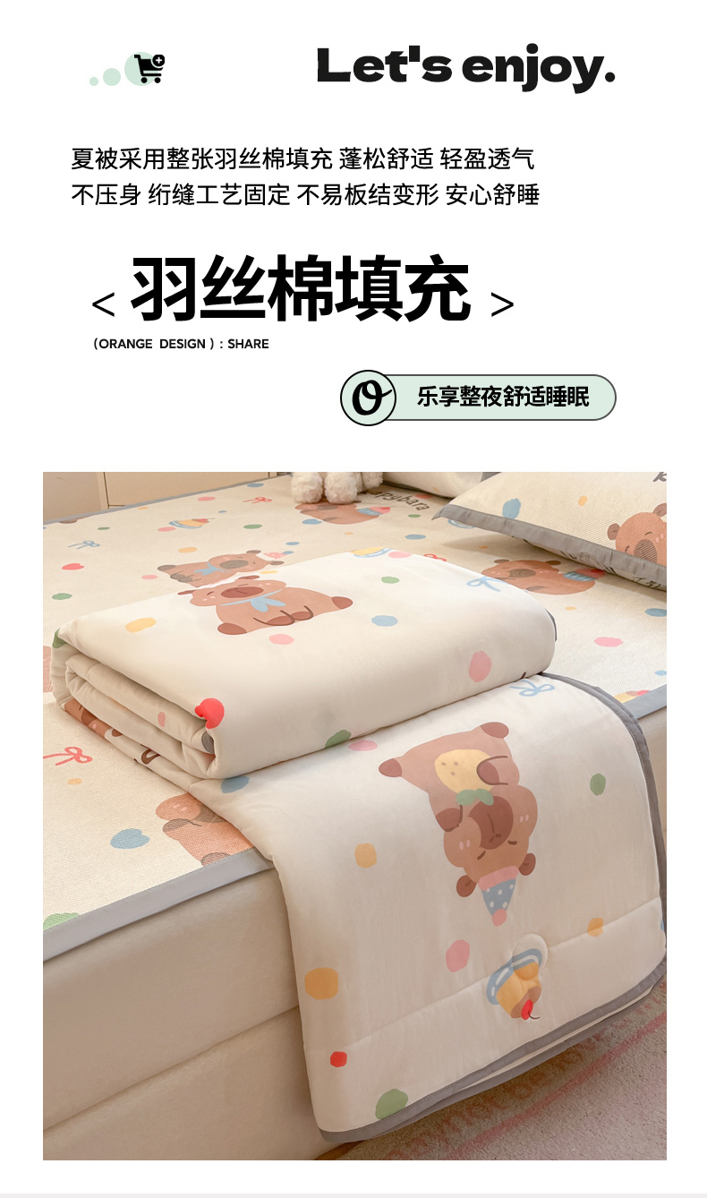 • 91家纺网 家纺一手货源 找家纺 慕澄家纺 2025新款真冰藤席子凉席夏被夏凉被空调被四件套 卡皮巴拉