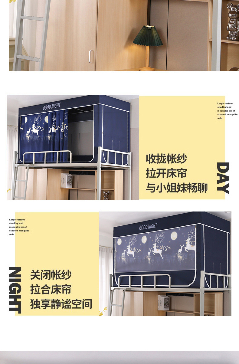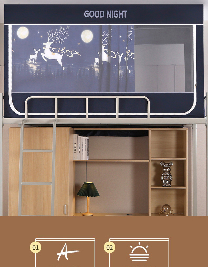 (总)锦逸家居 2025新款防遮光防蚊学生床帘式蚊帐,奔月鹿,鲸鱼灰色,太空人,未来可期