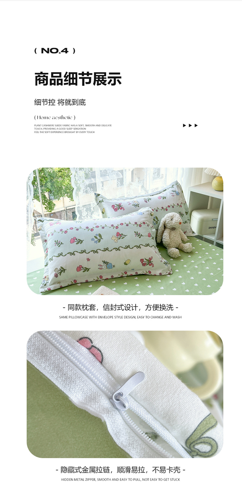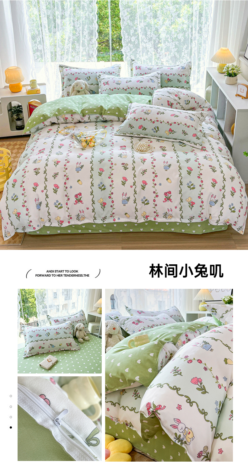 当前位置: 91家纺网 > 商品网购 > 床品套件 > 四件套 > 化纤普通四件套 > 简冠家纺 2025直播爆款北欧风亲肤植物羊绒磨毛四件套 林间小兔叽
