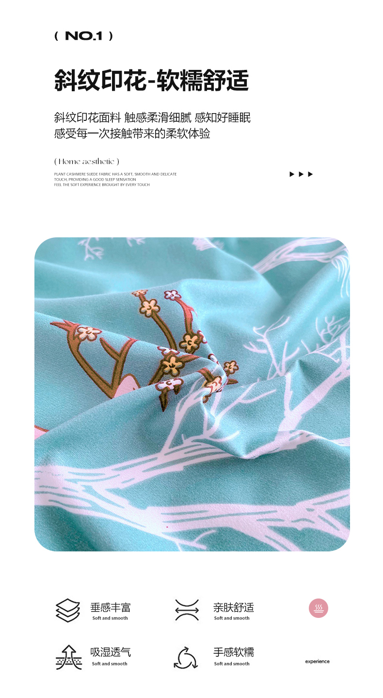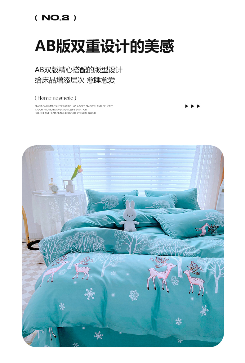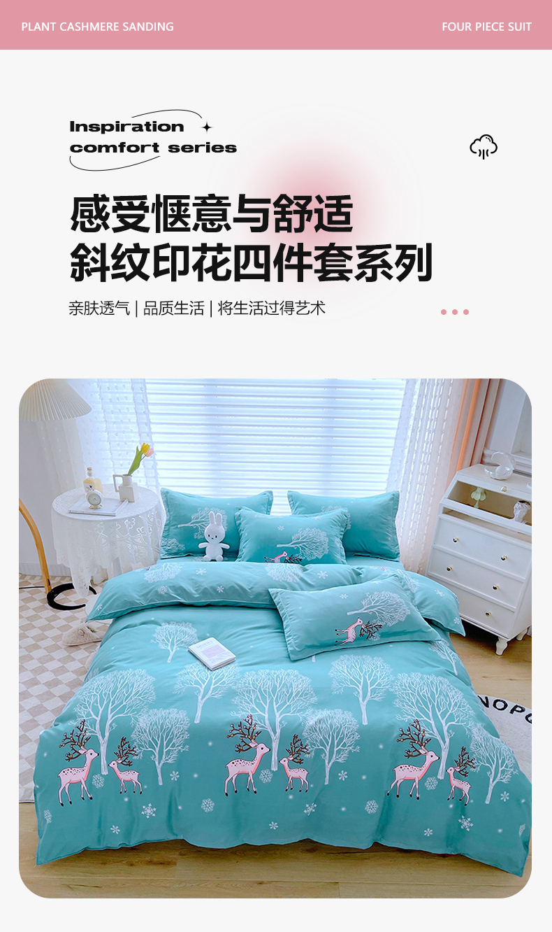 当前位置: 91家纺网 > 商品网购 > 床品套件 > 四件套 > 普通磨毛四件套 > 简冠家纺 2025新款植物羊绒磨毛四件套 鹿林