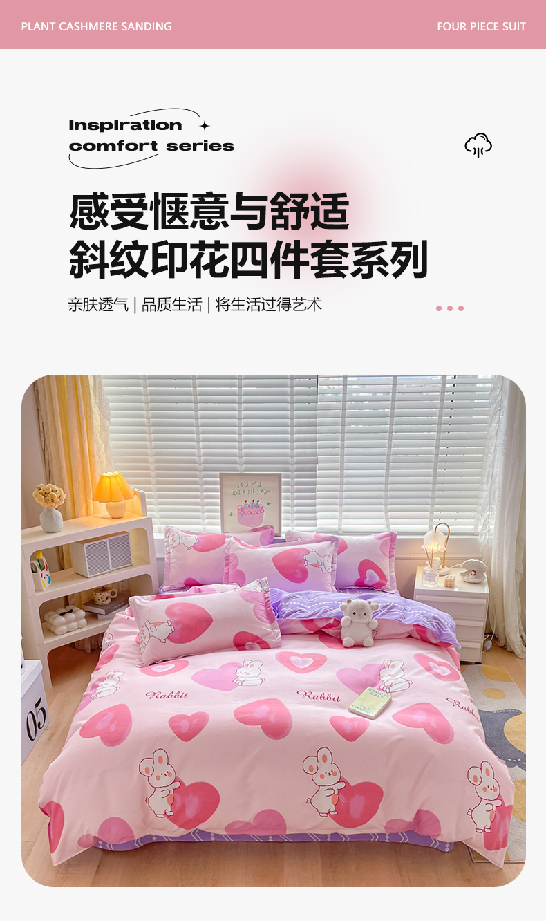当前位置: 91家纺网 > 商品网购 > 床品套件 > 四件套 > 普通磨毛四件套 > 简冠家纺 2025新款植物羊绒磨毛四件套 奶油兔-粉