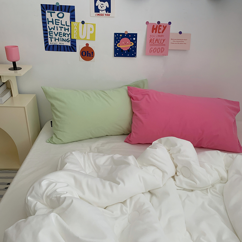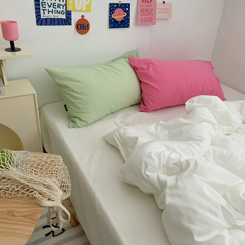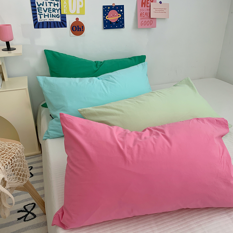 柚可家居 2024新款水洗棉40支全棉色织单枕套纯色系列四 淡绿