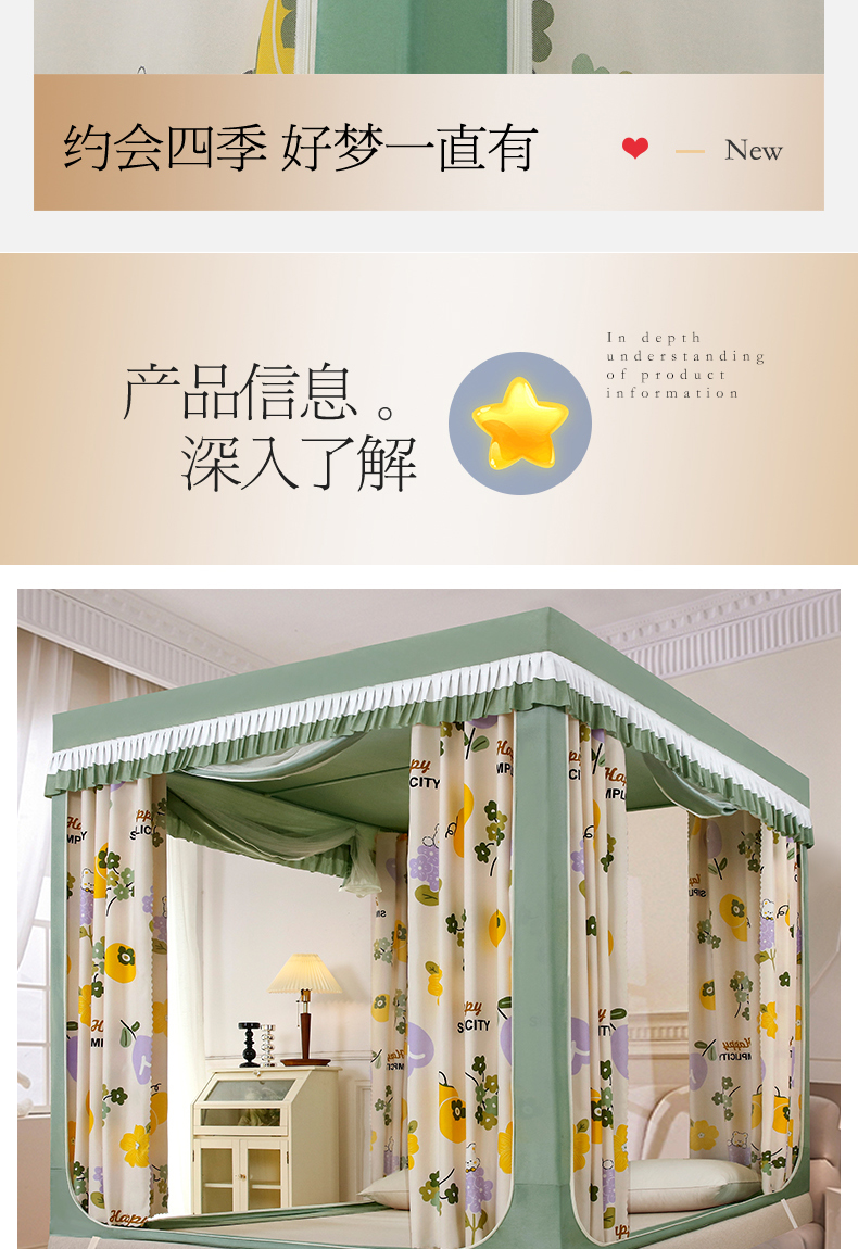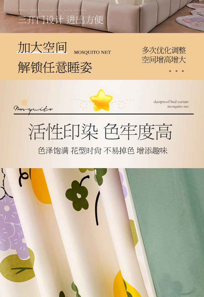 当前位置: 91家纺网 > 商品网购 > 床上用品 > 蚊帐 > 坐床式蚊帐 > 显高蚊帐 2025春夏新款U门花边款坐床遮光防尘床帘式蚊帐 心想柿橙-花边款