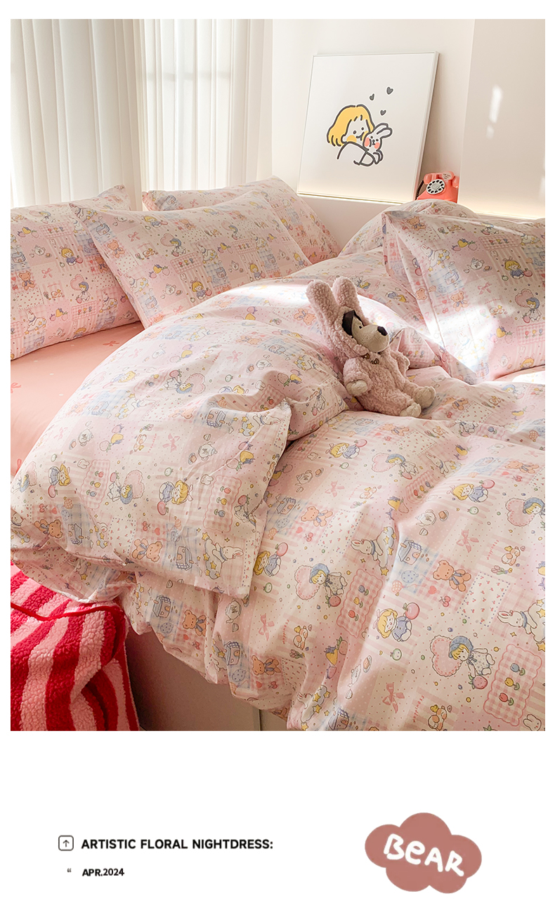 商品名称:爱丽丝2025新款全棉卡通印花四件套 粉粉日记