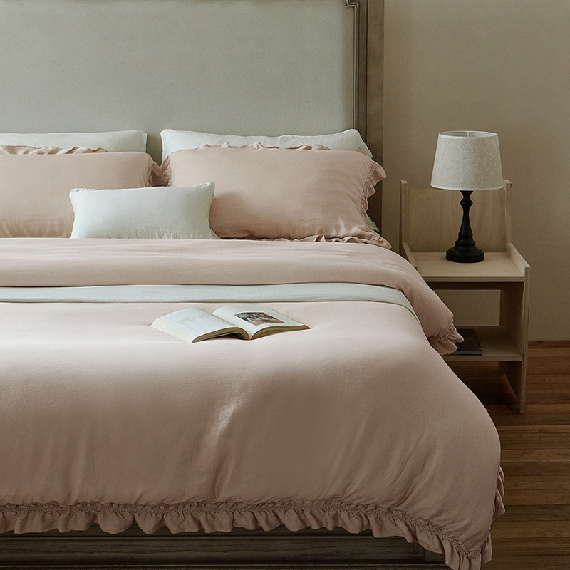 (总)子和家居 2025新款全棉麻感棉花朵款四件套-场景2,麻感棉花朵款四件套