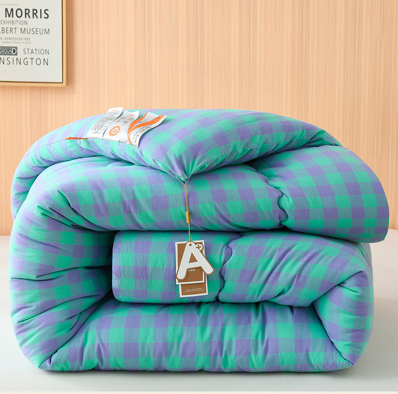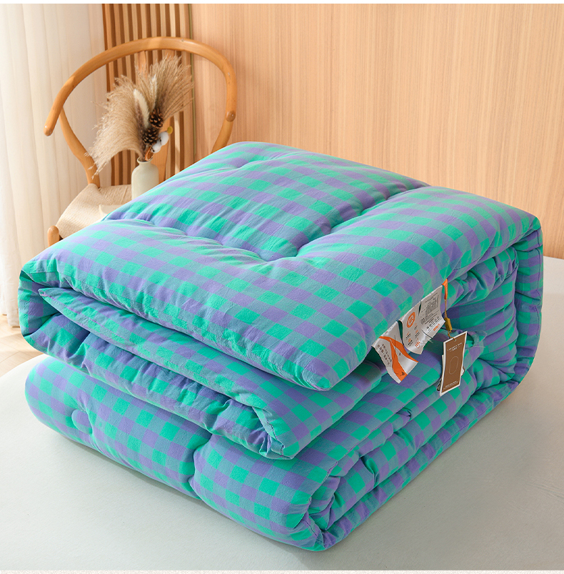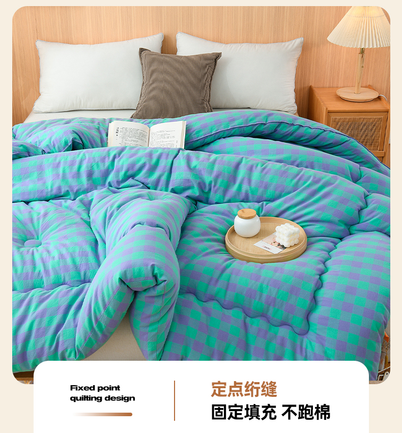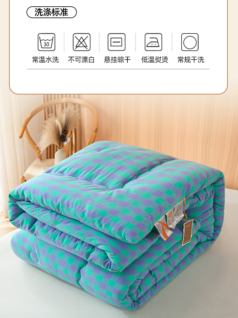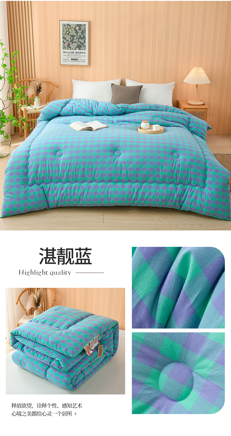 • 91家纺网 家纺一手货源 找家纺 易展2025新款无印水洗棉格子大豆冬被 湛靓蓝