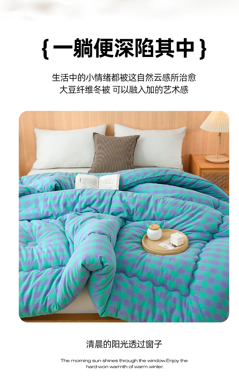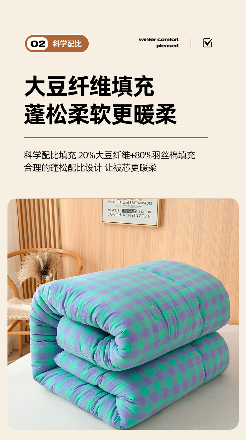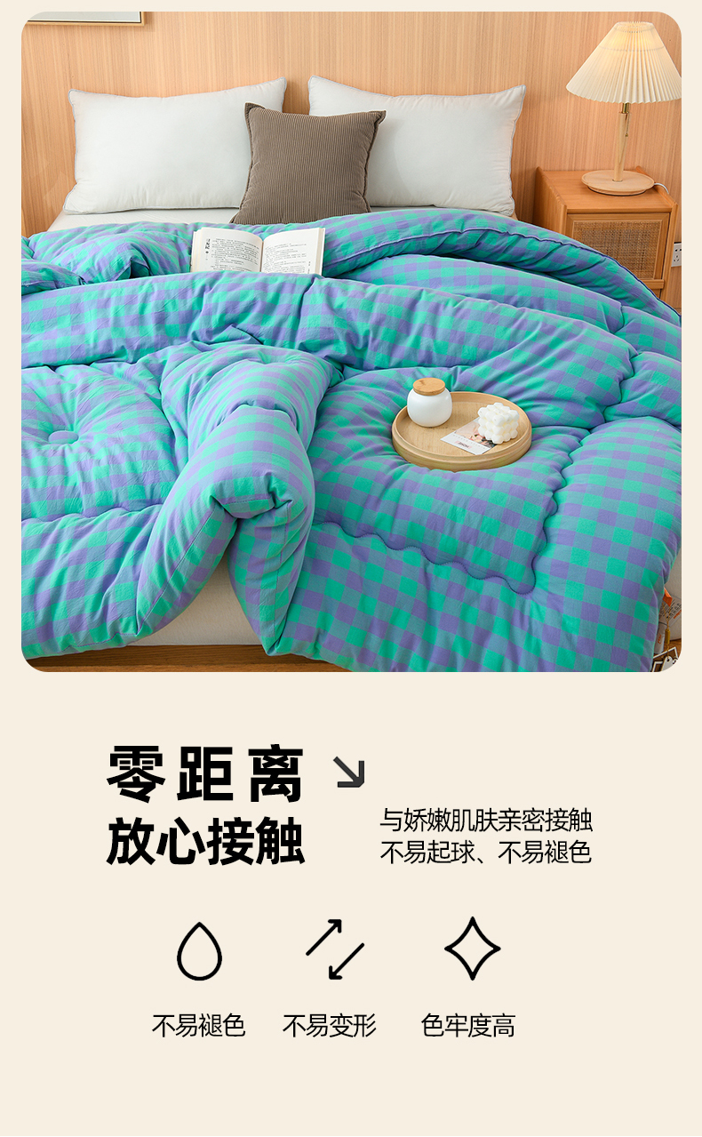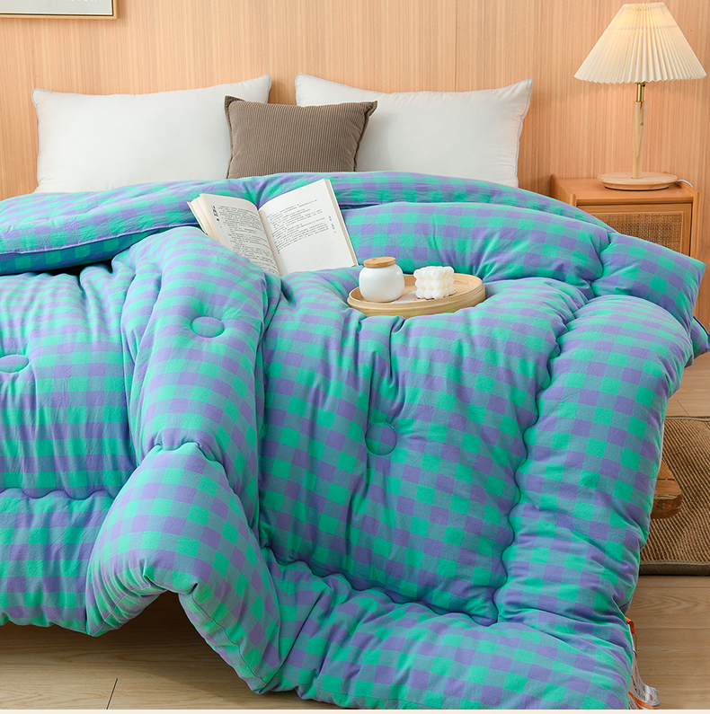 • 91家纺网 家纺一手货源 找家纺 易展2025新款无印水洗棉格子大豆冬被 湛靓蓝