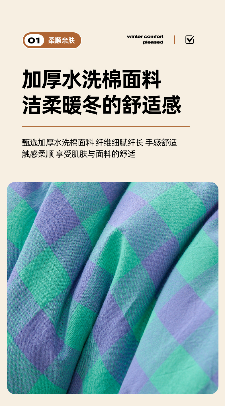 (总)易展2025新款无印水洗棉格子大豆冬被,格粉蓝,格浅绿,浅格橙,浅轻粉,轻夏绿,深橙格,湛靓蓝,缀纹黄