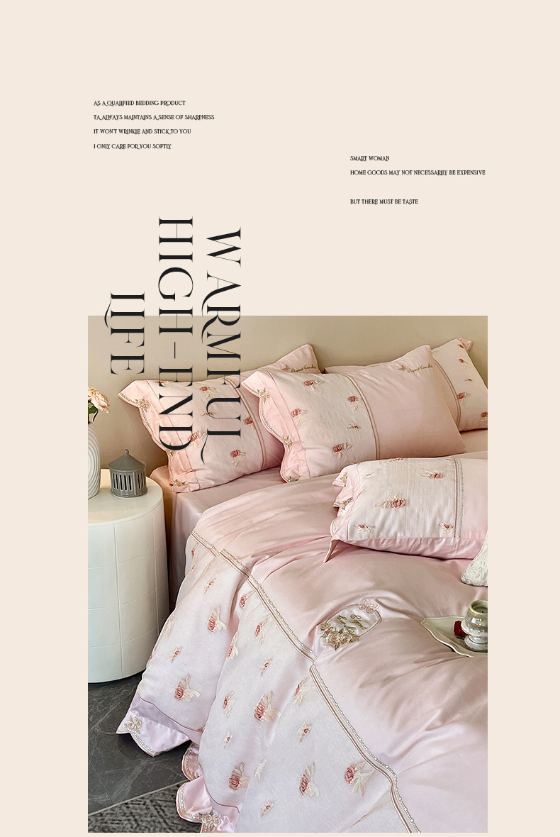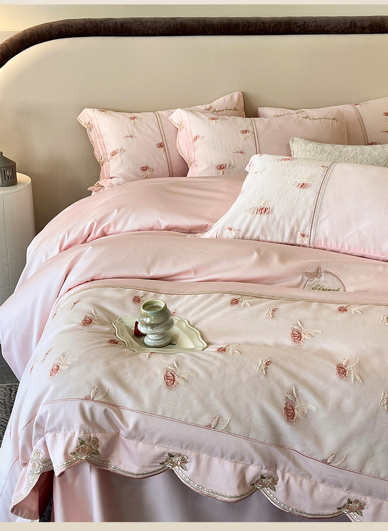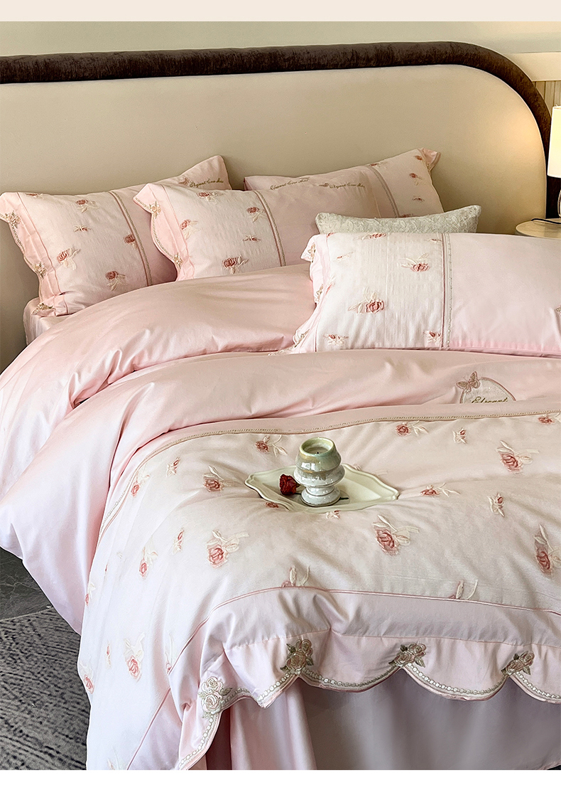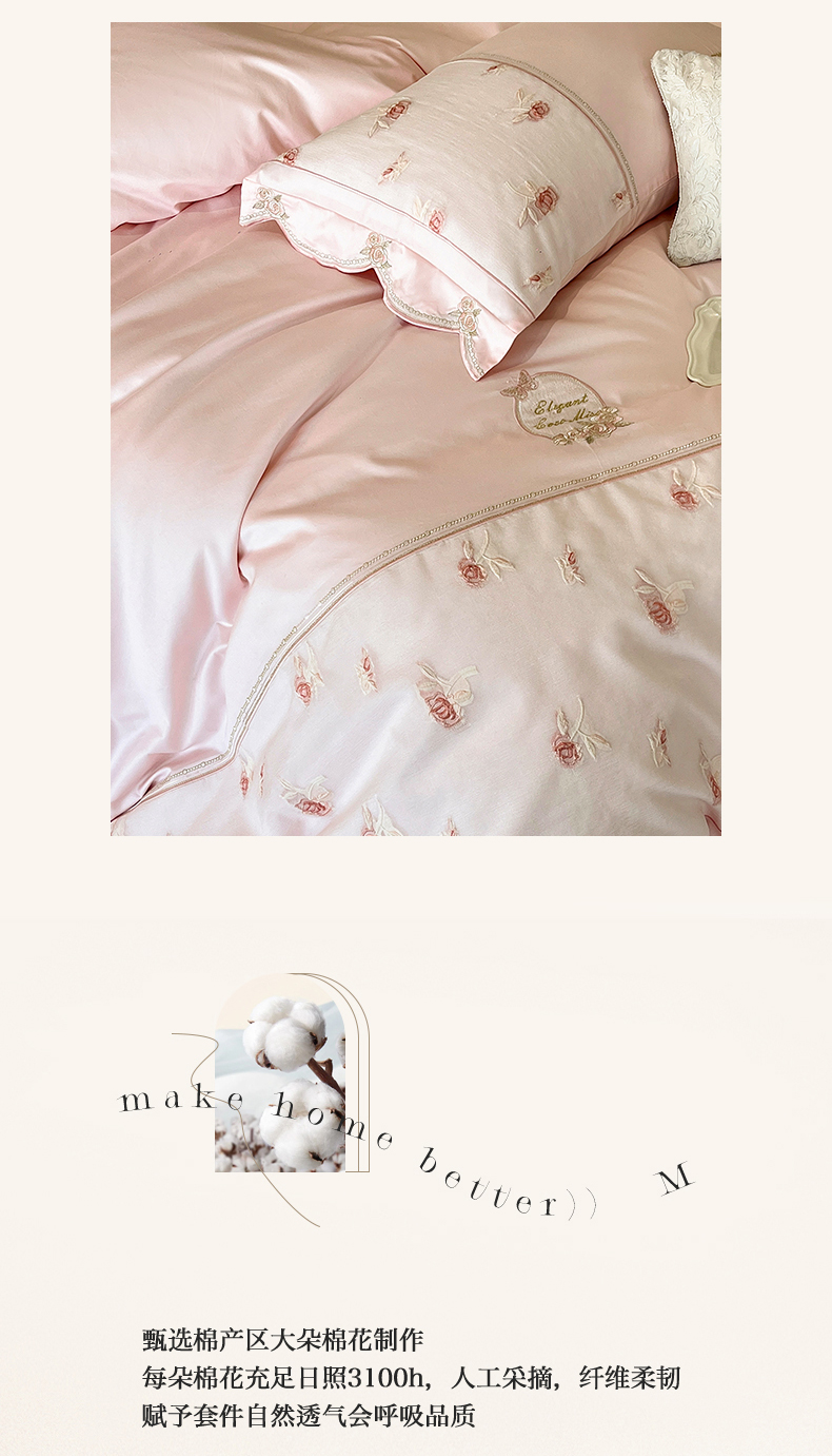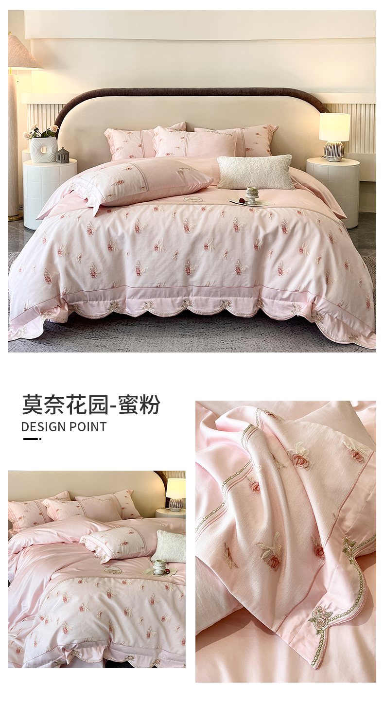 商品名称:鼎飞家纺 2025新款拼接绣花莫奈花园系列四件套 莫奈花园-蜜粉