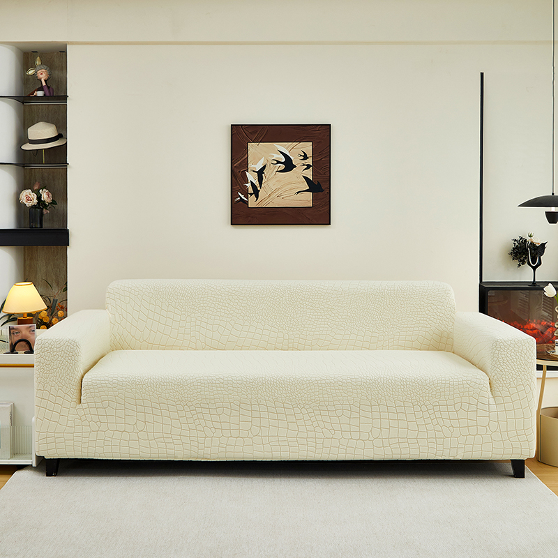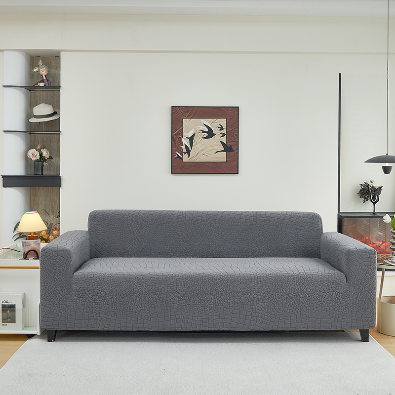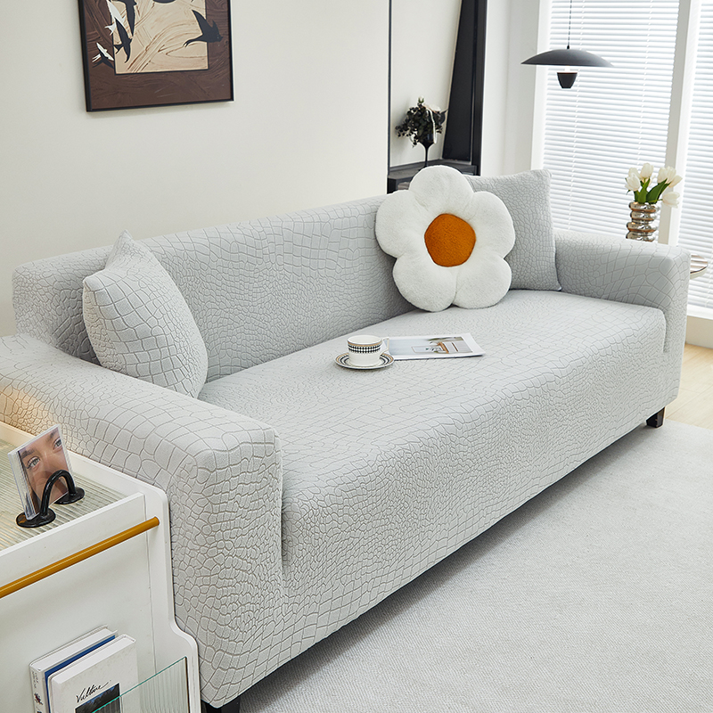 丝绮鹿 2025新款雕花绒水立方沙发套松紧款(三人图) 浅灰