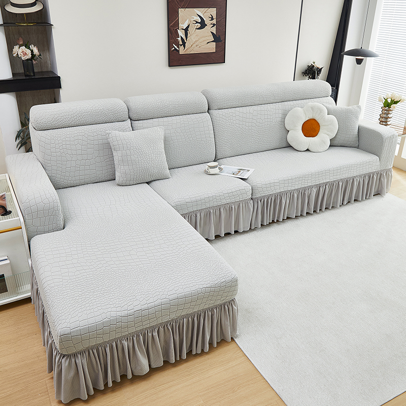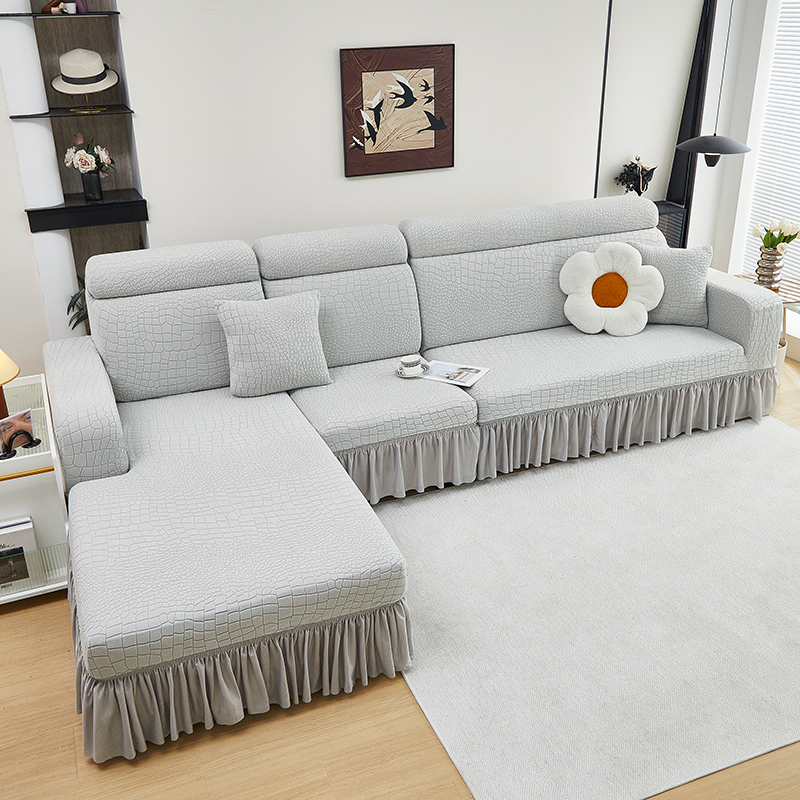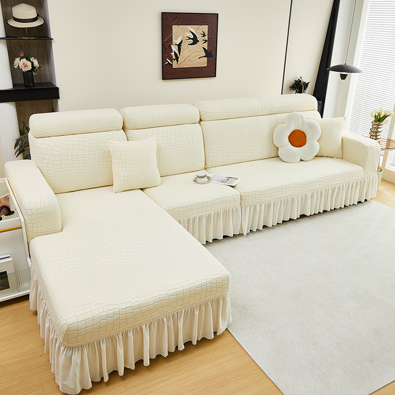 当前位置: 91家纺网 > 商品网购 > 居家布艺 > 坐垫/椅垫/沙发垫 > 沙发垫 > 丝绮鹿 2025新款雕花绒水立方沙发套裙边款(贵妃图) 米白
